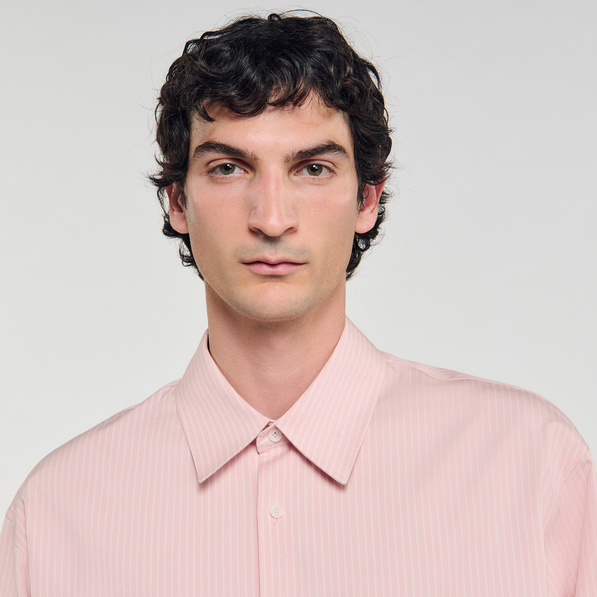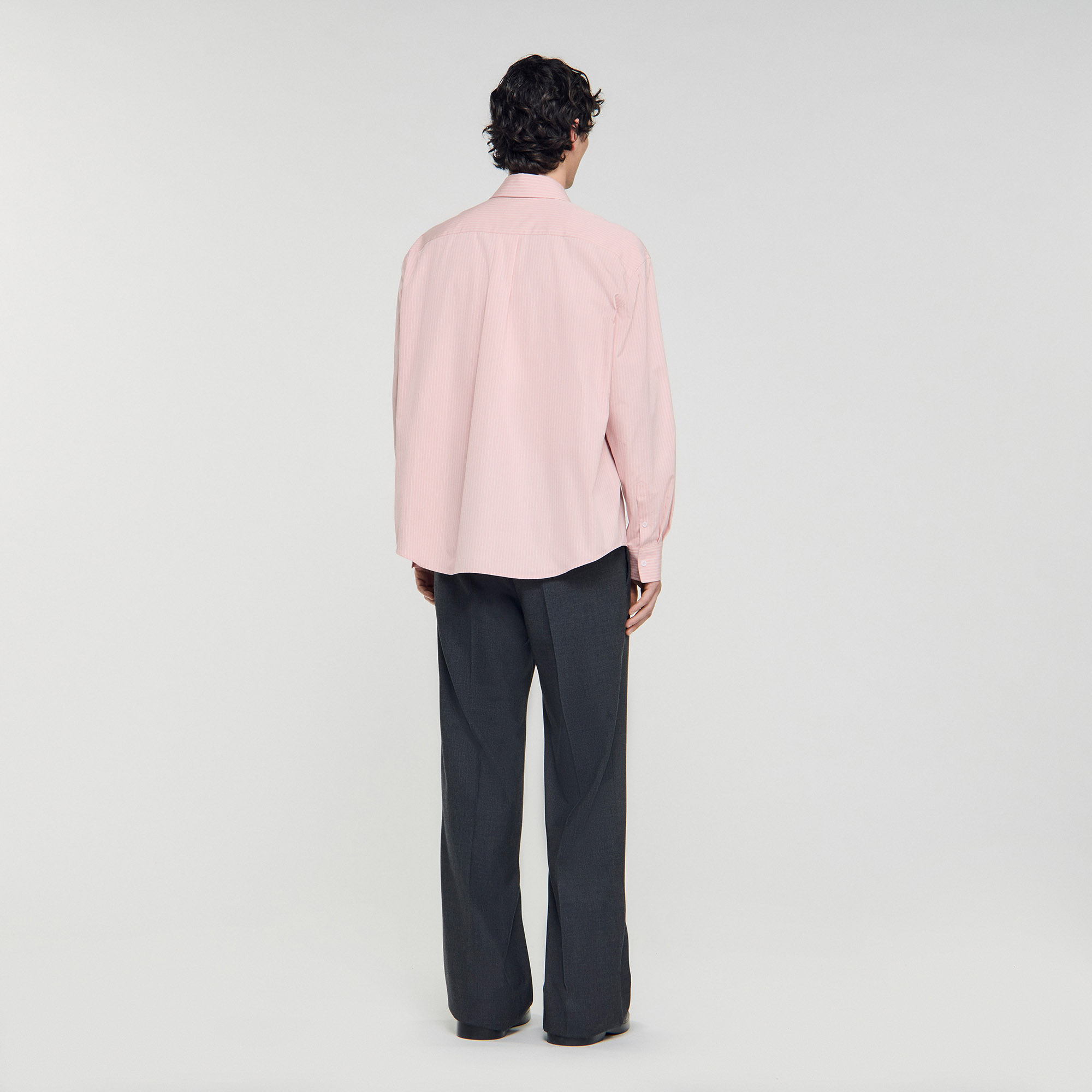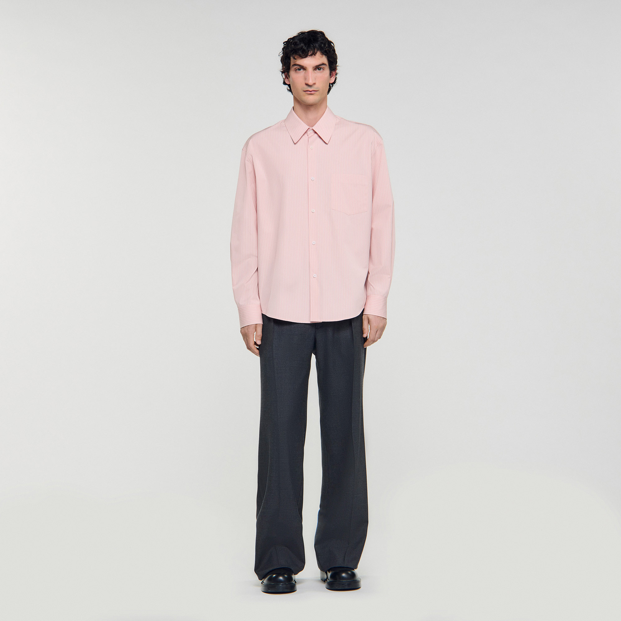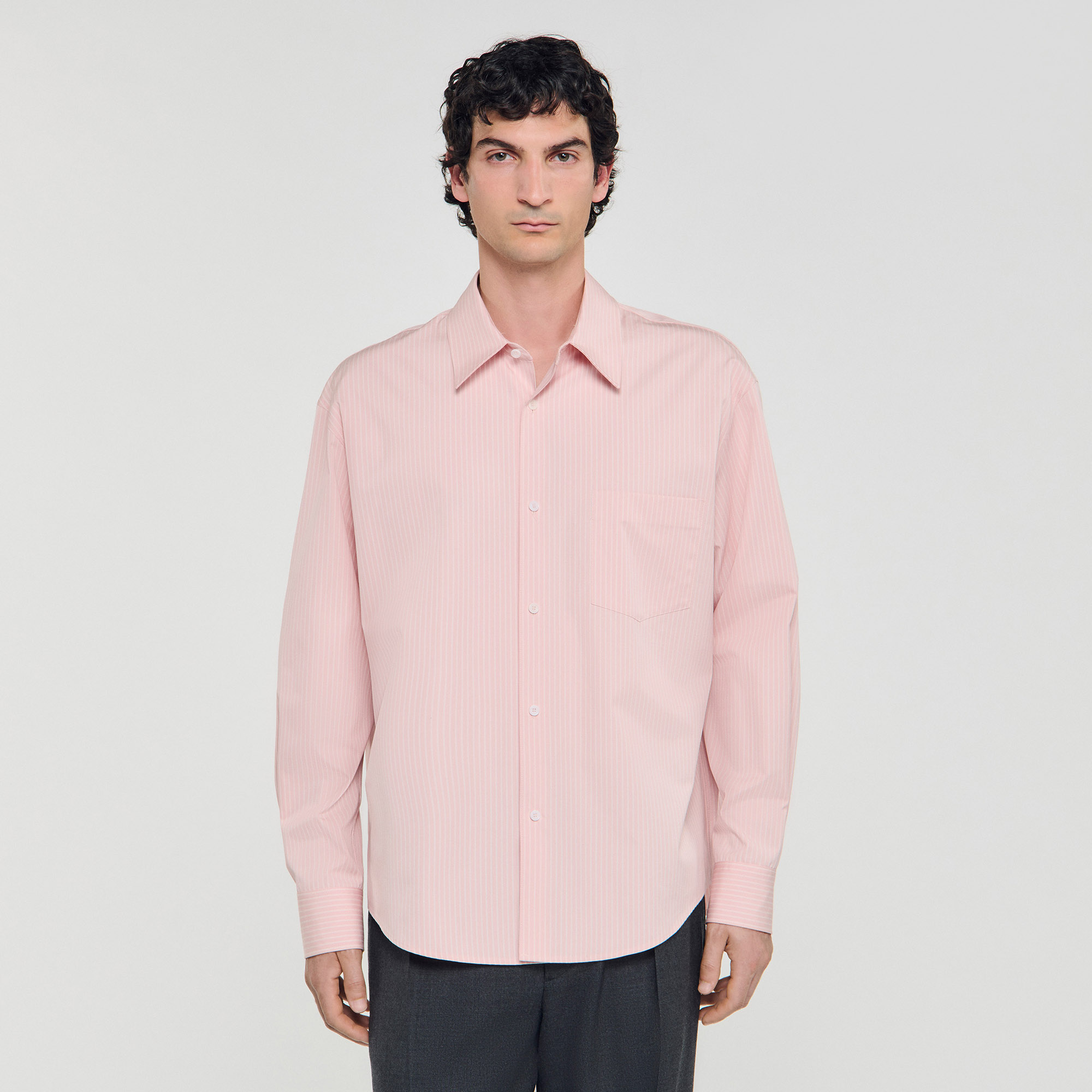 Sandro Men's oversized striped shirt Classic collar Button fastening Long sleeves Chest pocket Back pleat Designed for an oversized fit.