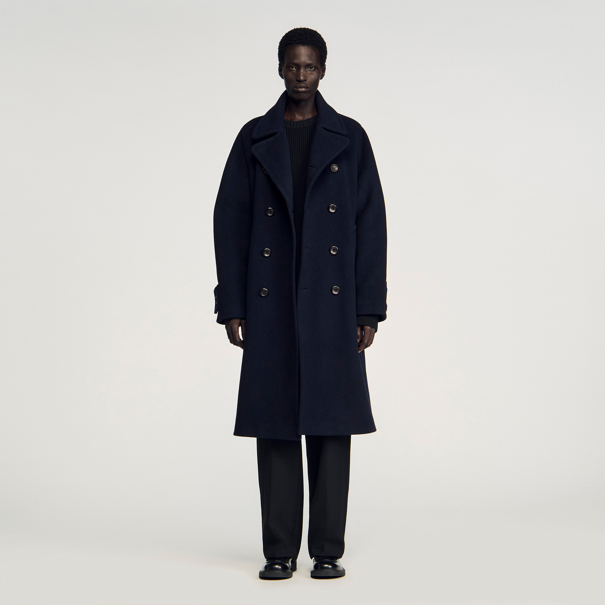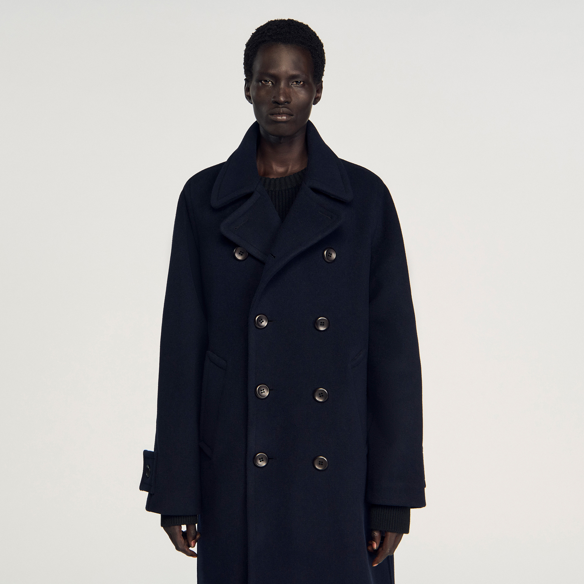 Sandro Men's double-breasted coat Lapel collar 8-button fastening Front pockets with wide piping Cuff tabs Lined interior with pockets Designed for an oversized fit.