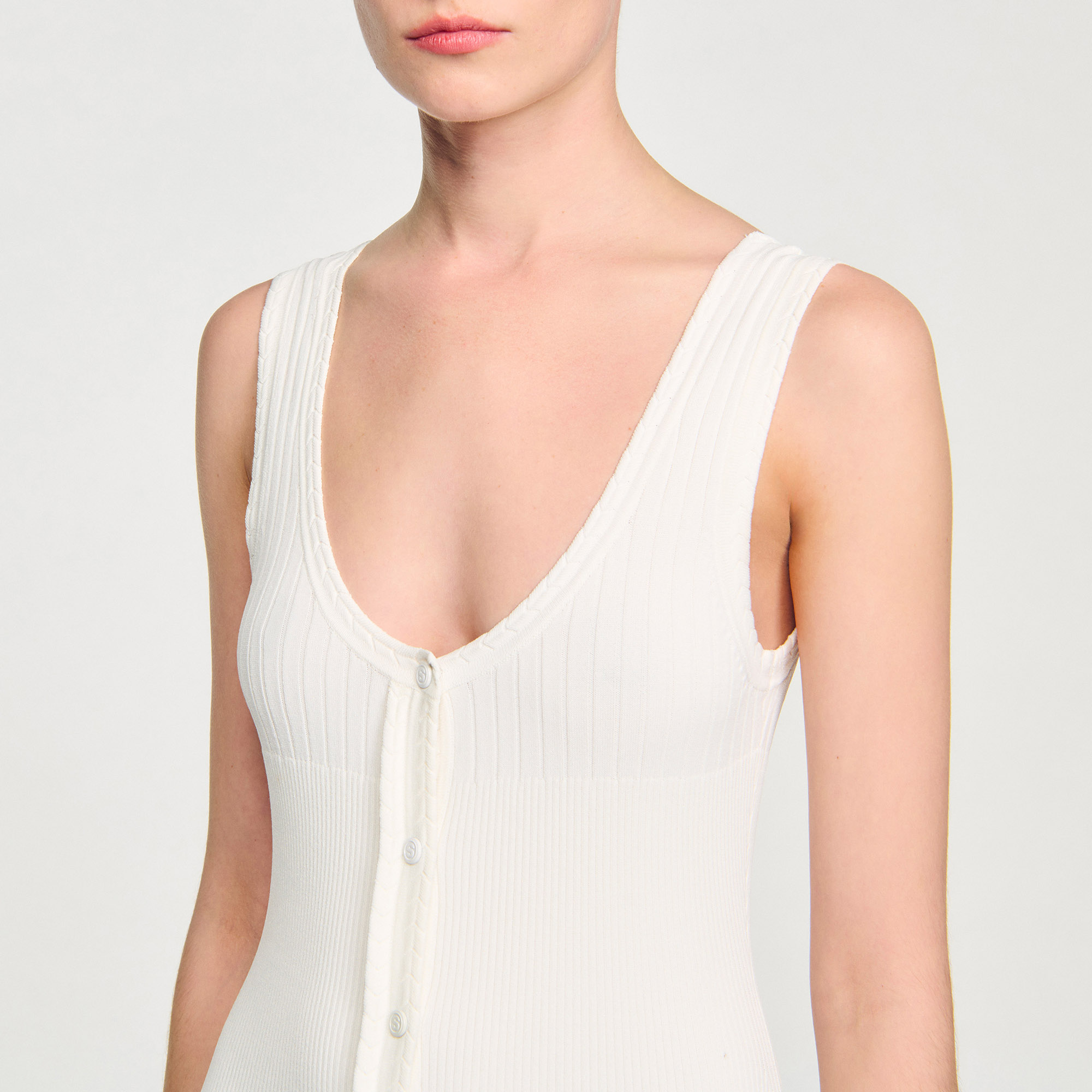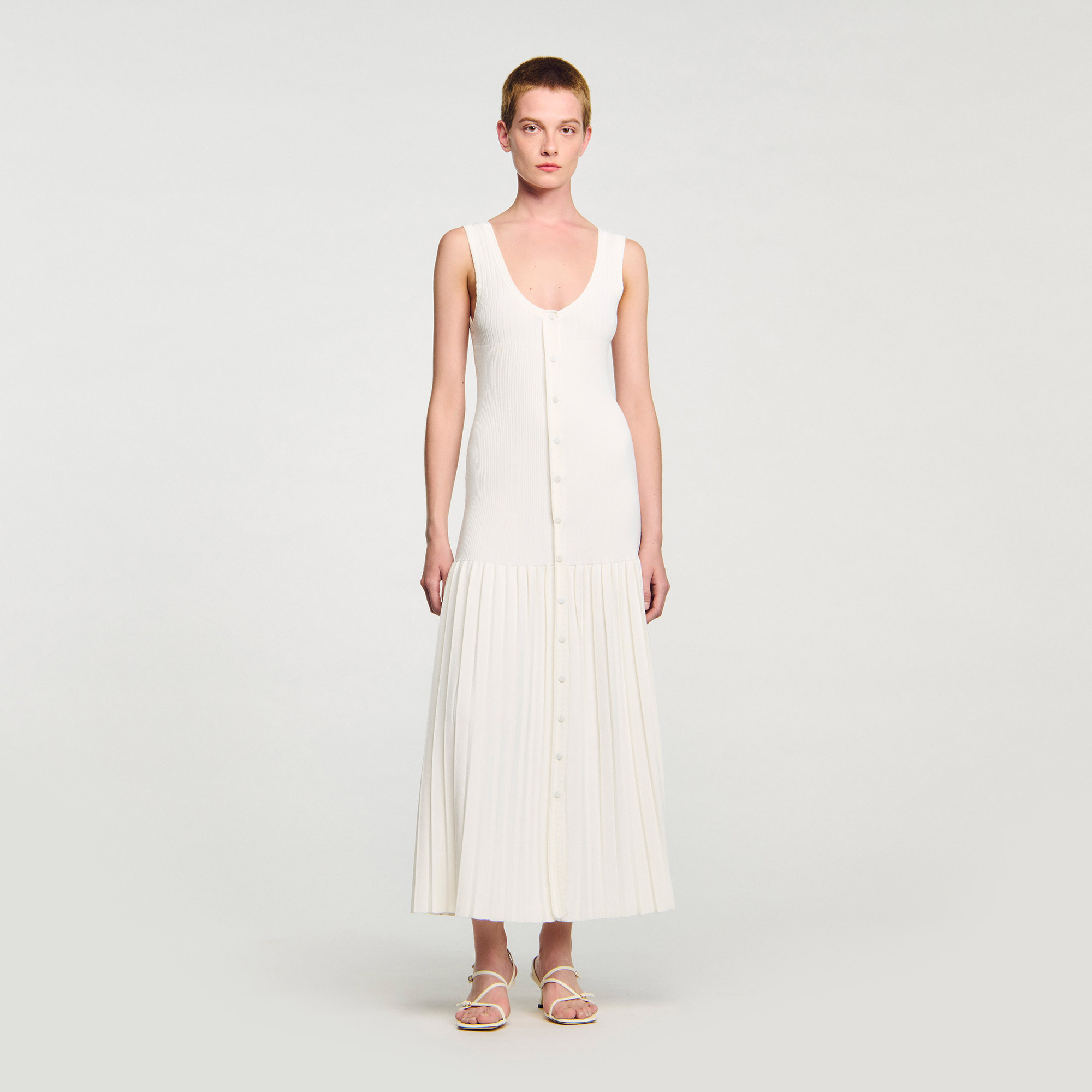 Sandro Women's maxi knit dress Thin straps Flared pleated-effect skirt Front button fastening Designed for a flared fit.