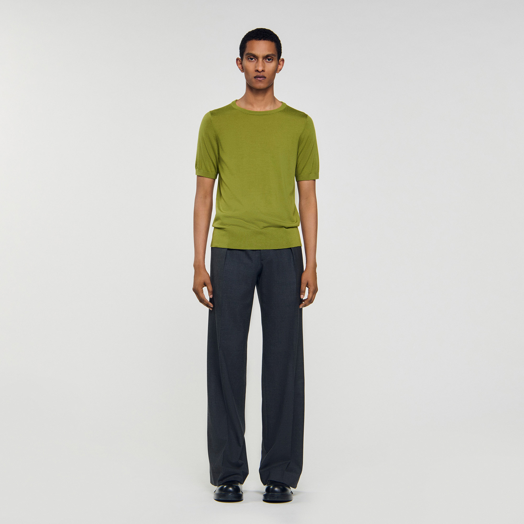 Sandro wool Fine knit T-shirt with round neck and short sleeves.