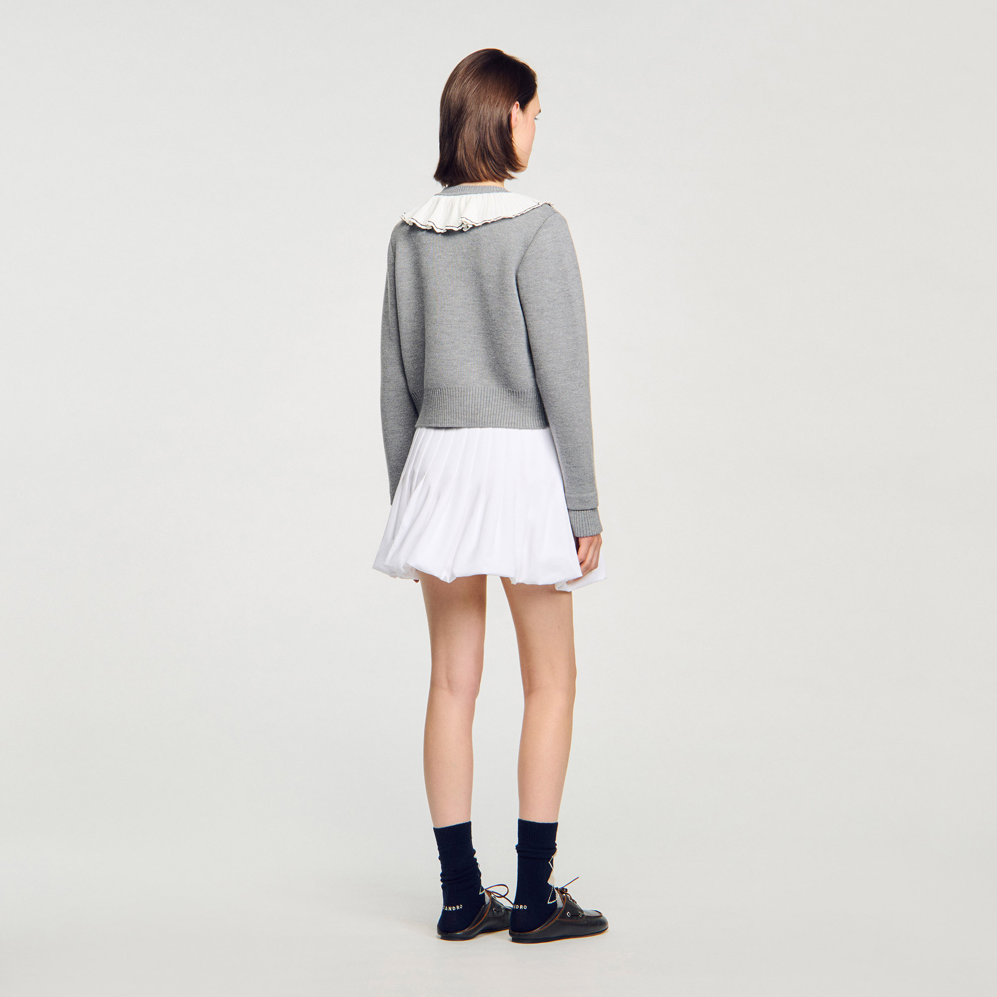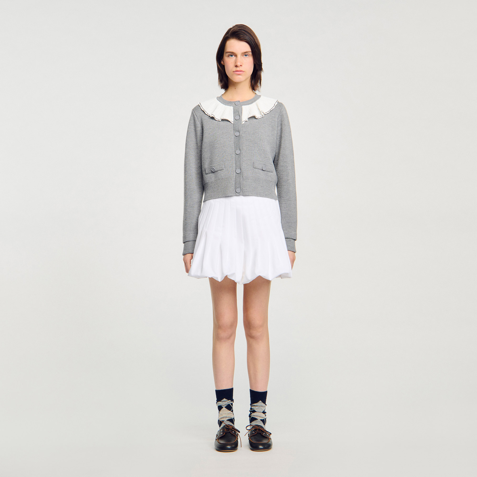 Sandro acrylic Wool cardigan with a contrasting ruffled collar, button fastening, long sleeves and decorative piped pockets.