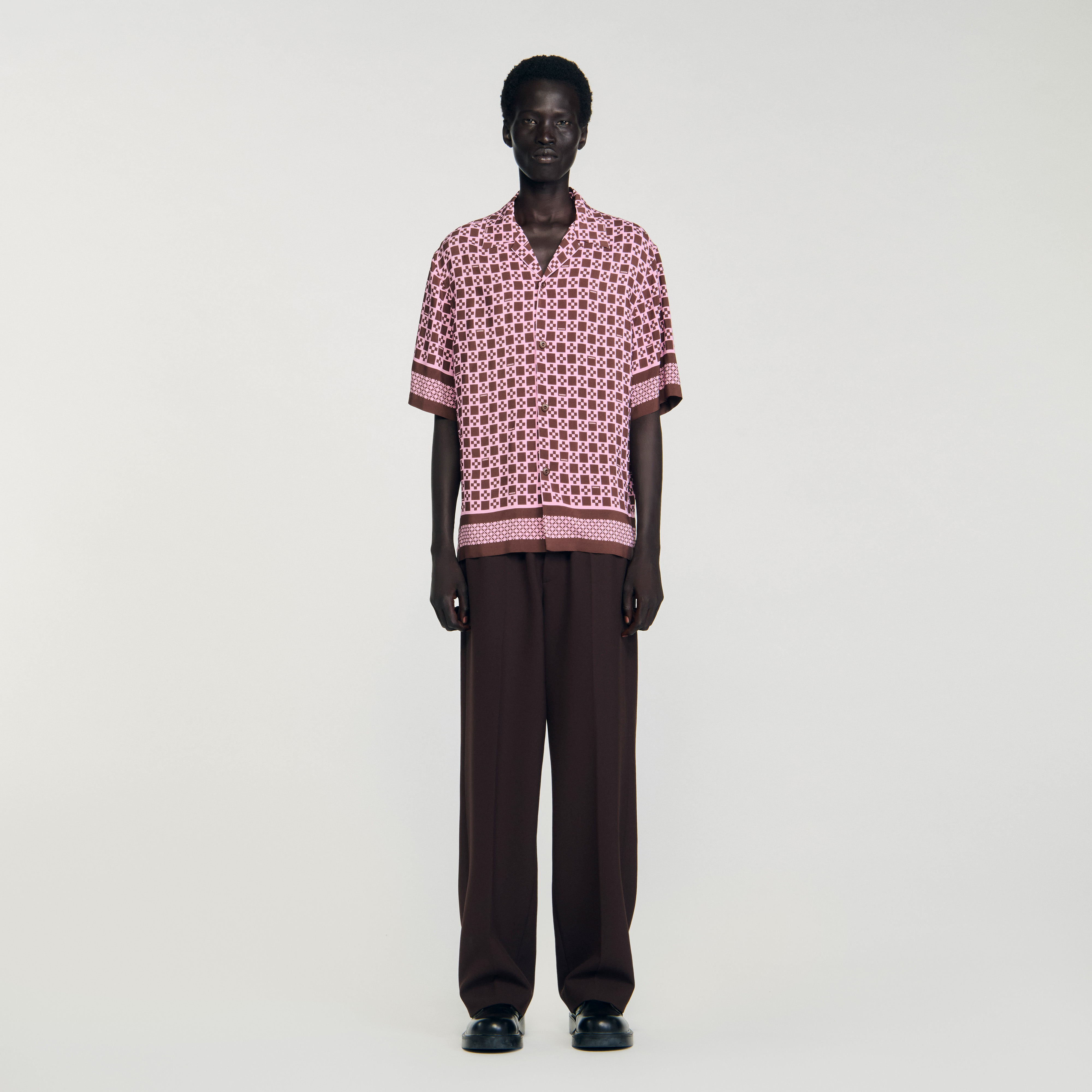 Sandro Men's loose-fit shirt Square cross motif Shark collar Button fastening Short sleeves Designed for a loose fit.
