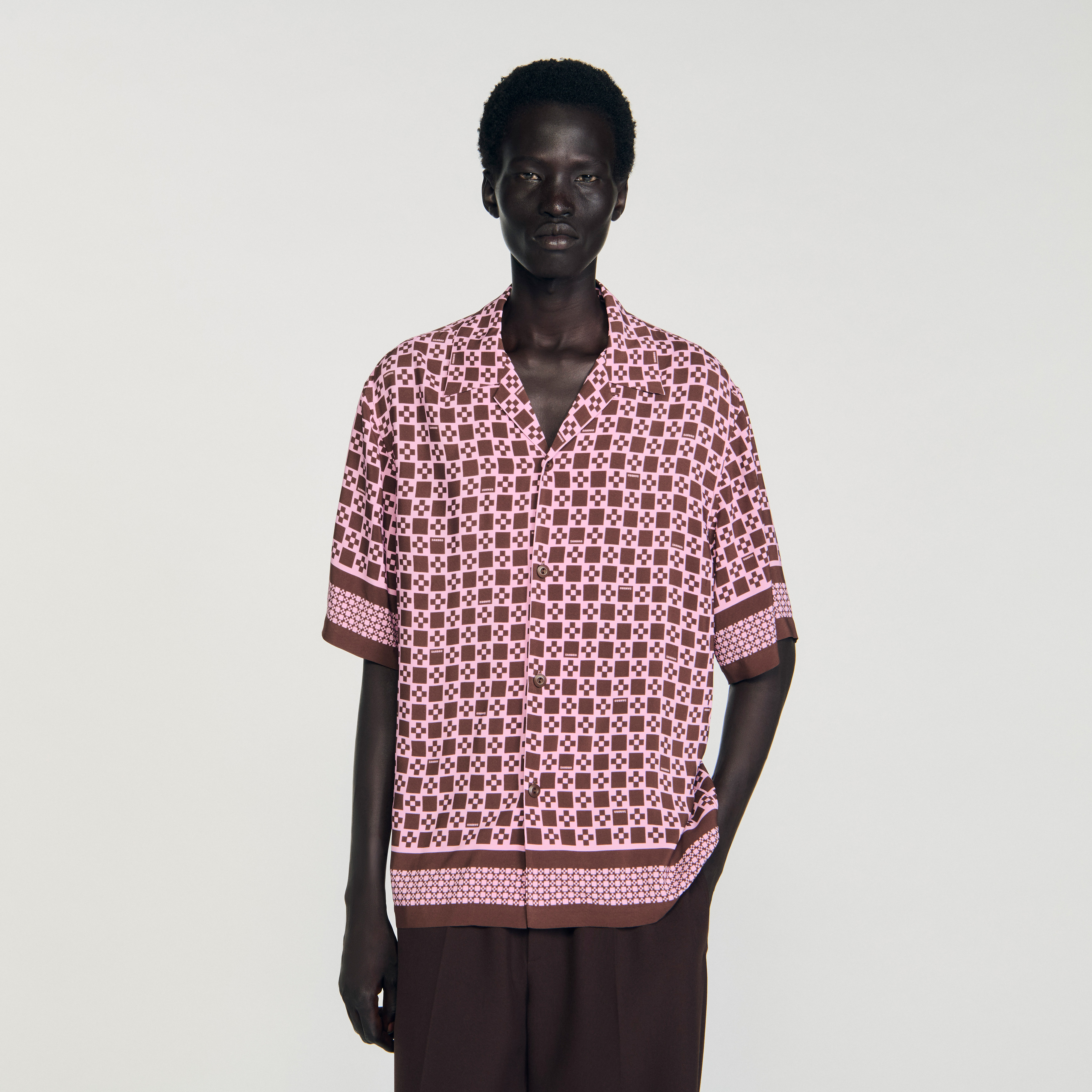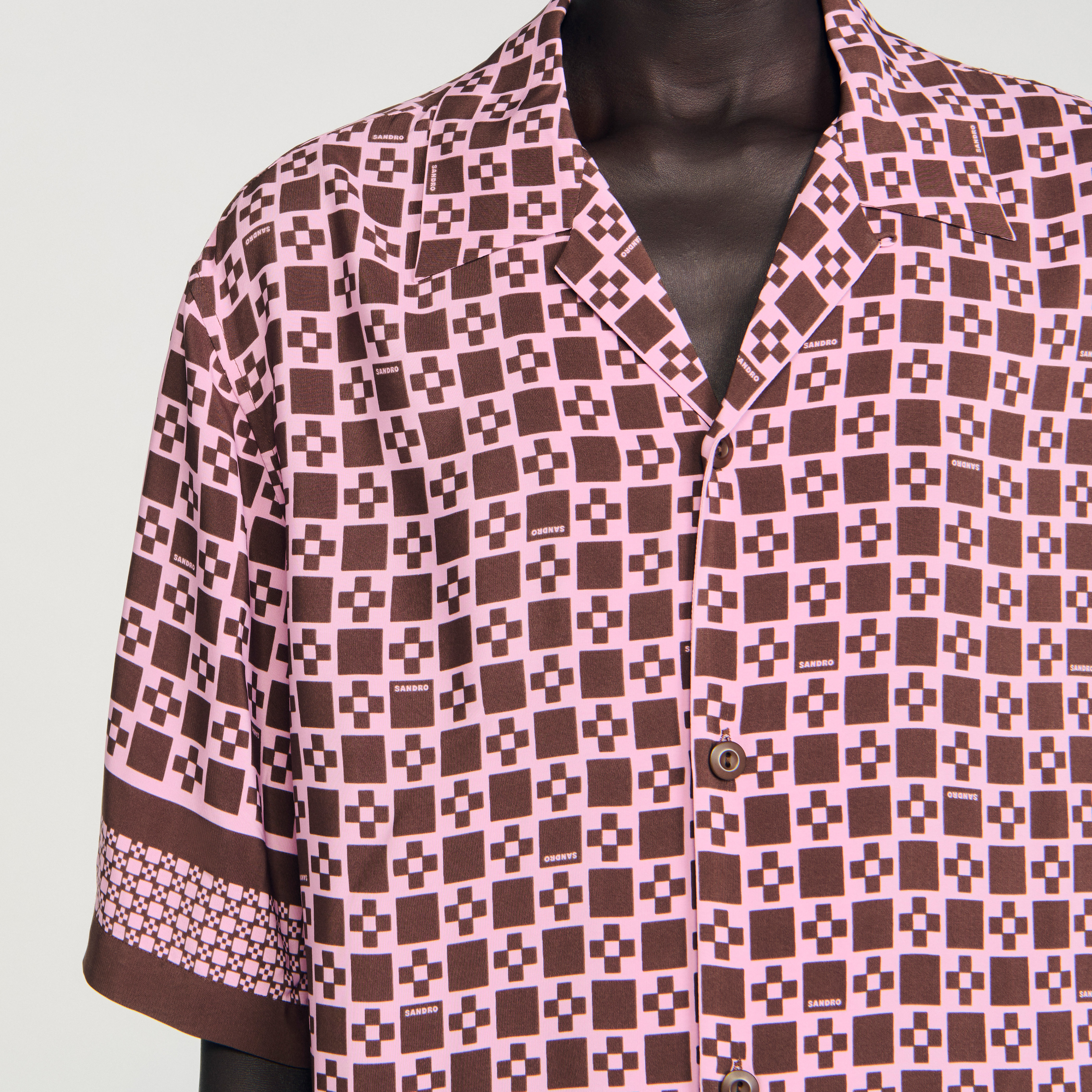 Sandro viscose Flowing shirt with a square cross motif, featuring a shark collar, short sleeves and button fastening.