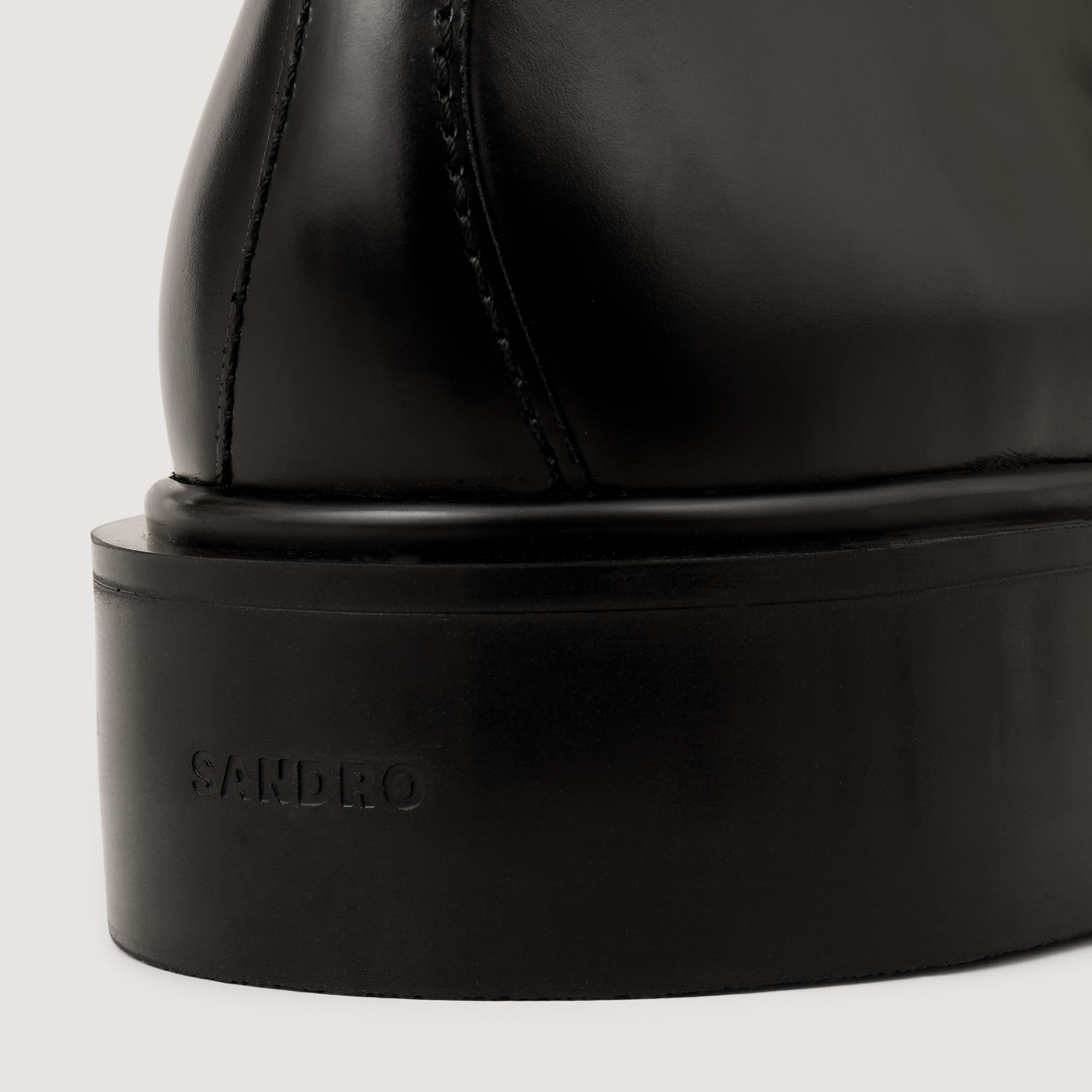 Sandro leather Glazed leather loafers featuring a buckle strap engraved with Sandro and a thick round toe.
