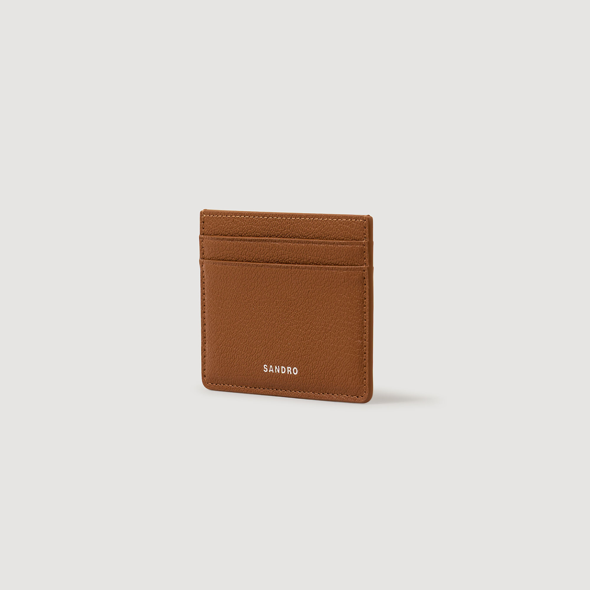 Sandro buffalo Grained leather cardholder with silver Sandro logo, featuring card slots.