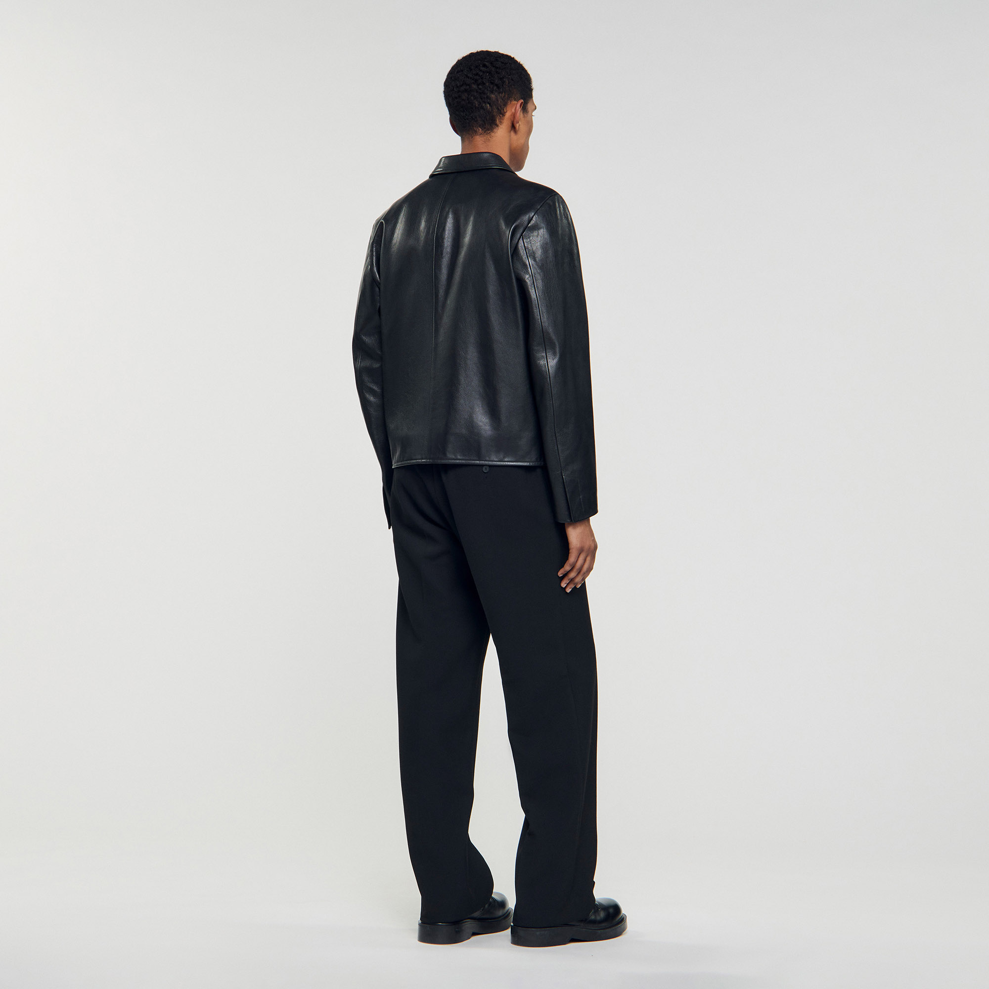 Sandro leather Goatskin leather jacket with wing collar, zip fastening, long sleeves with cuffs and piped pockets.