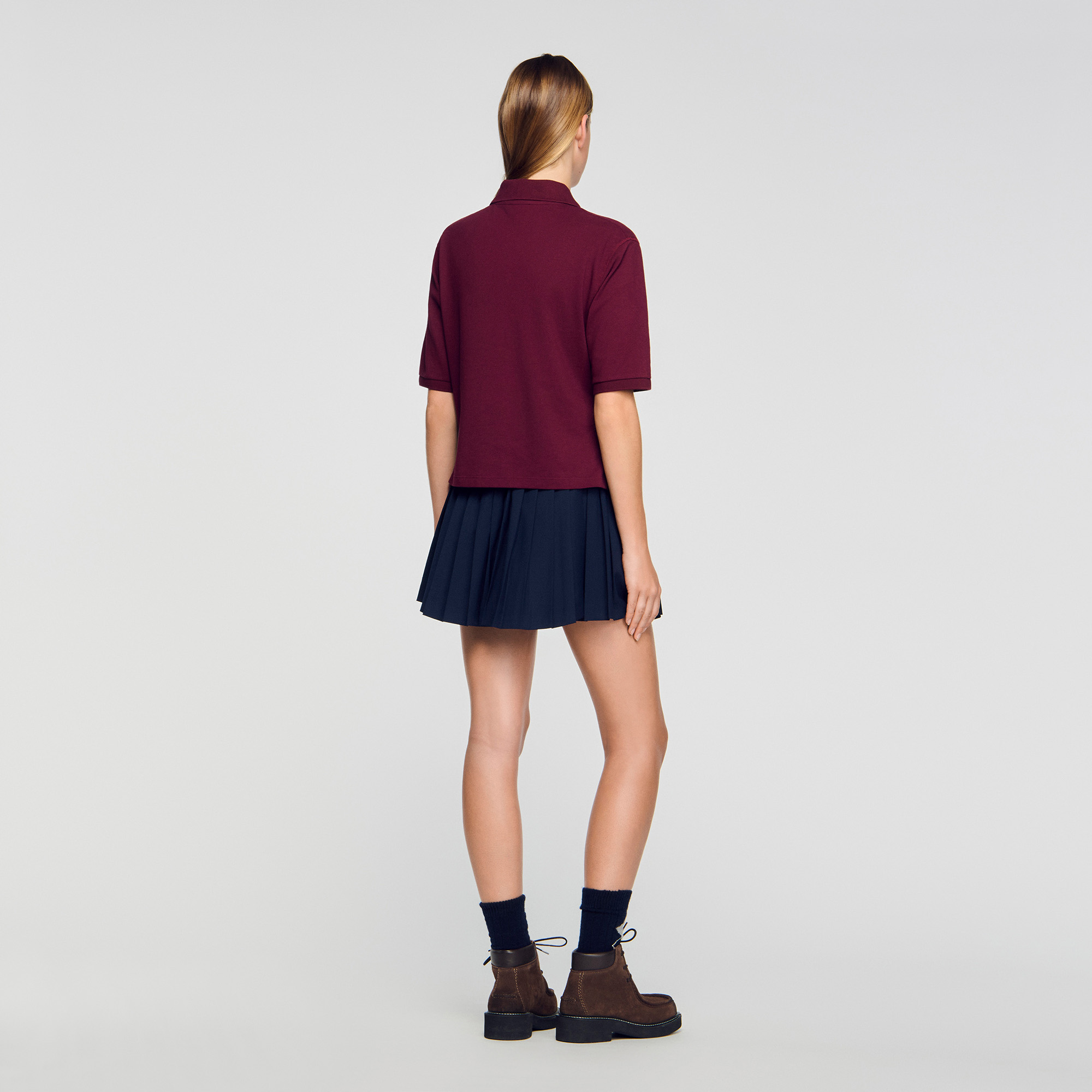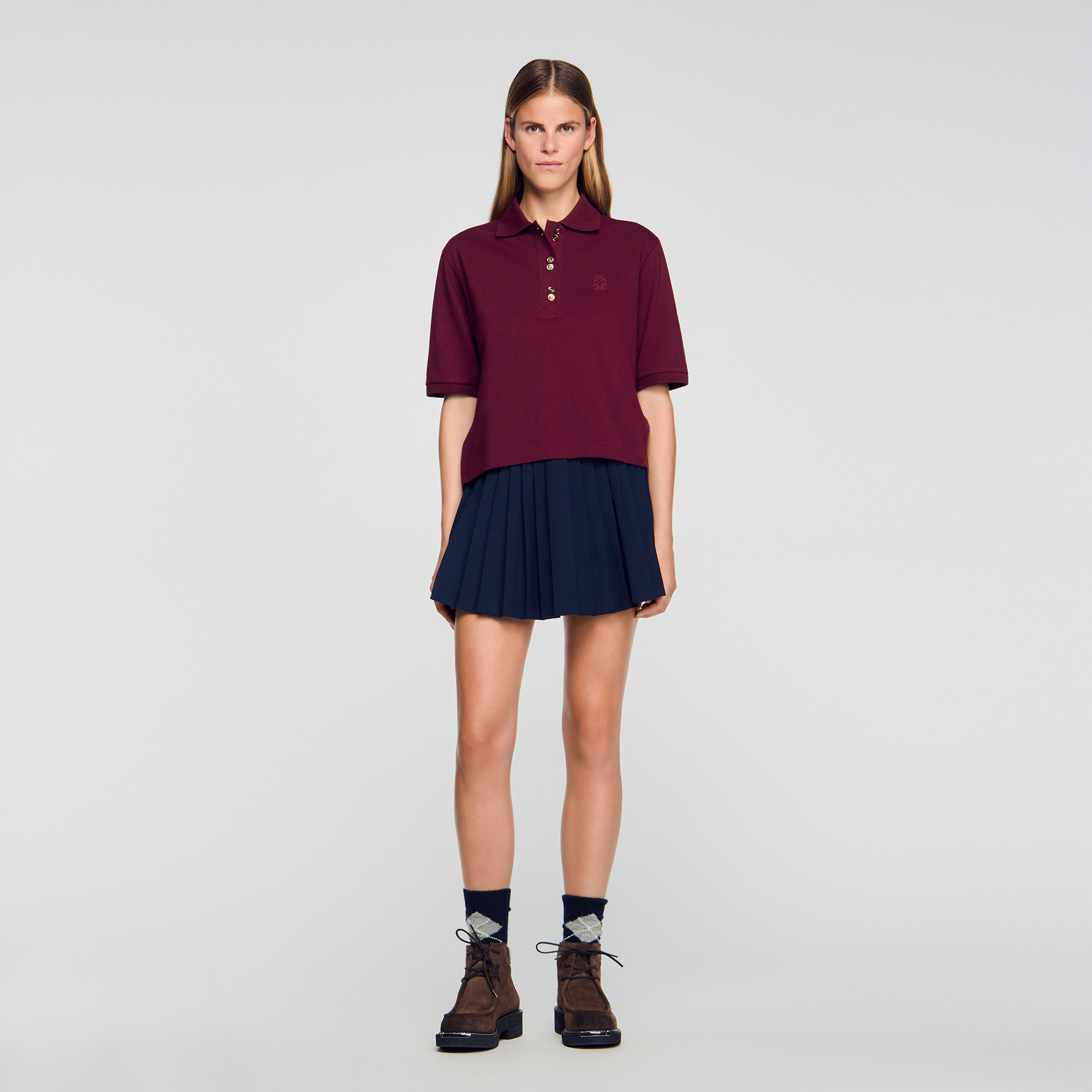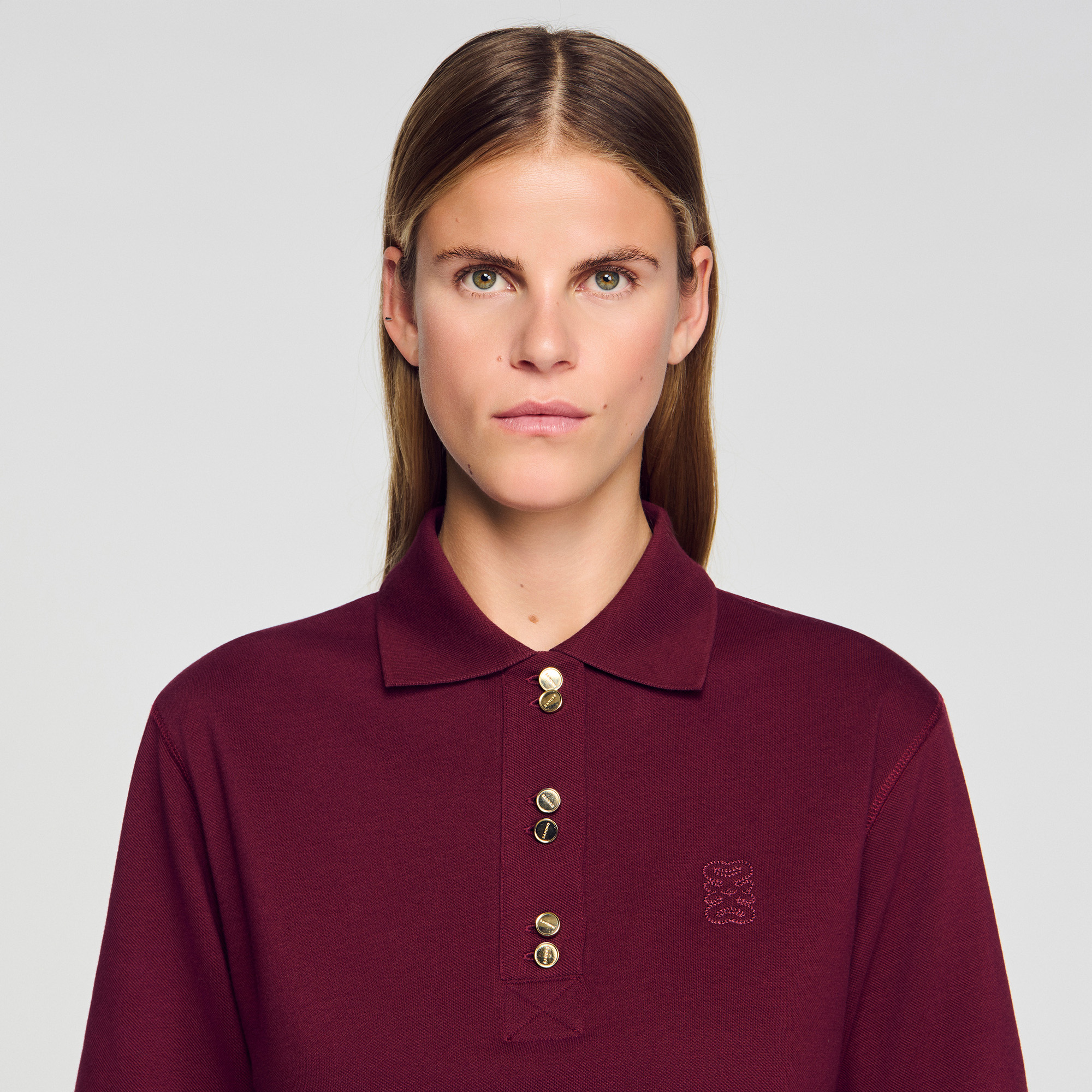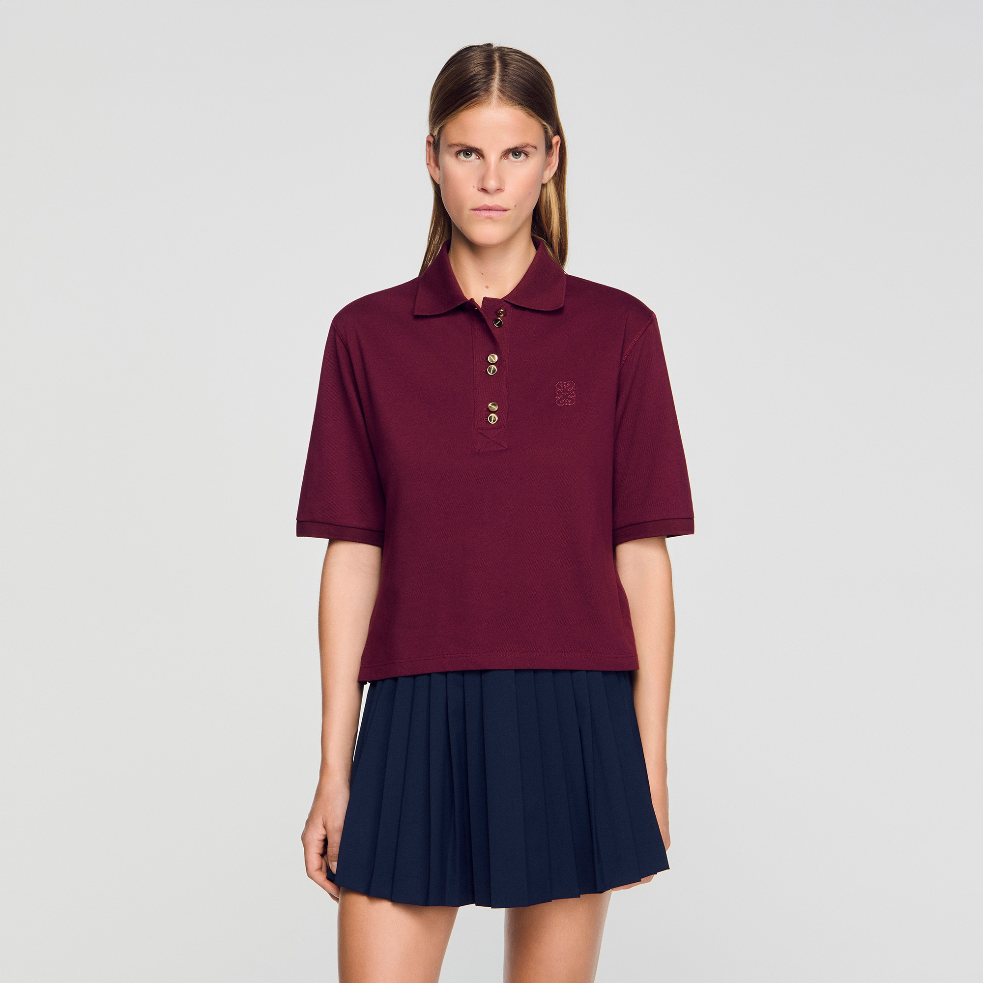 Sandro cotton Short-sleeved polo shirt with decorative buttons on the collar and embroidery on the chest.