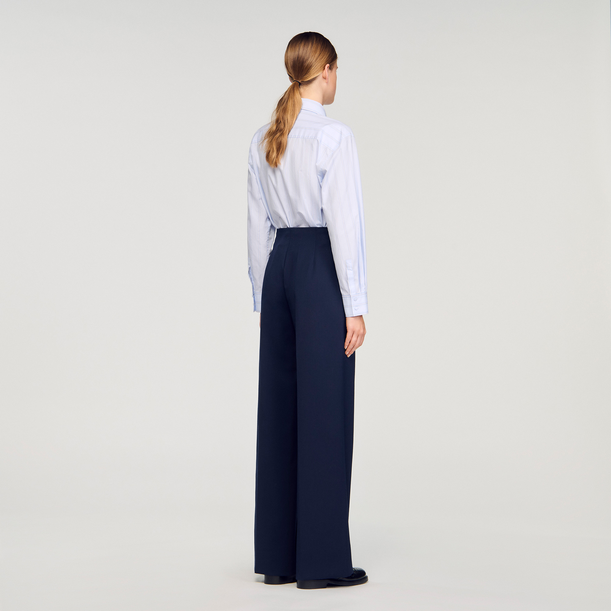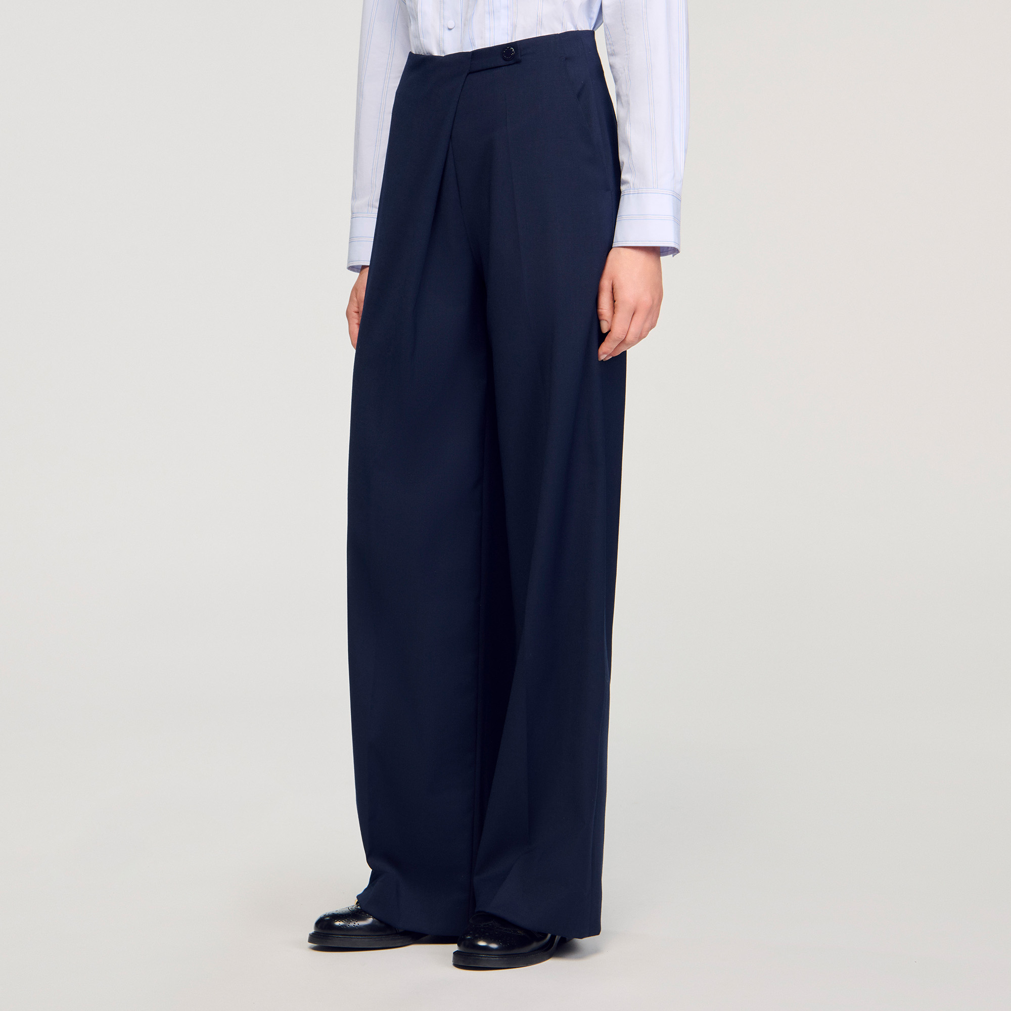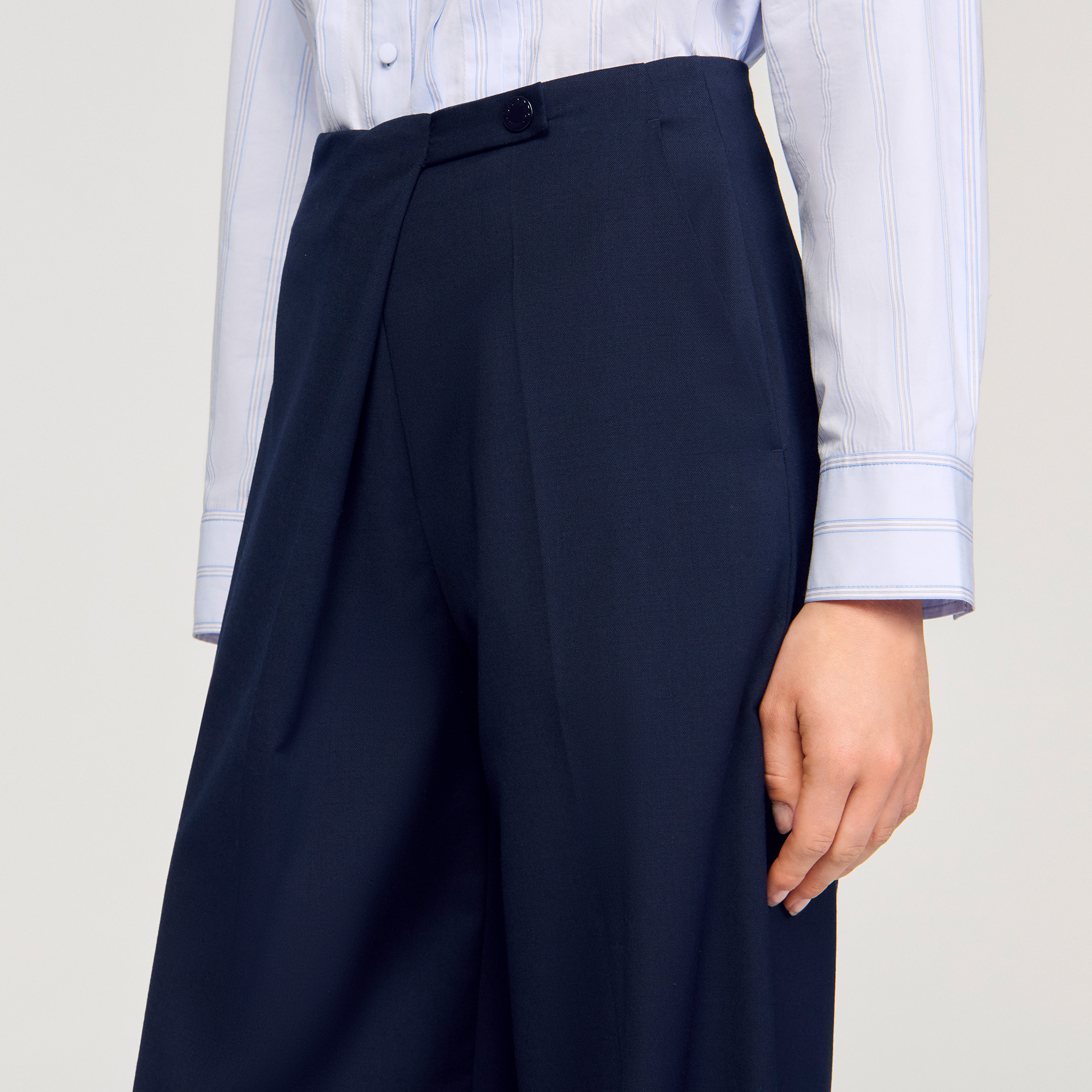 Sandro polyester Wide-leg, straight-fit high-waisted trousers with an asymmetrical front panel and press-stud fastening.