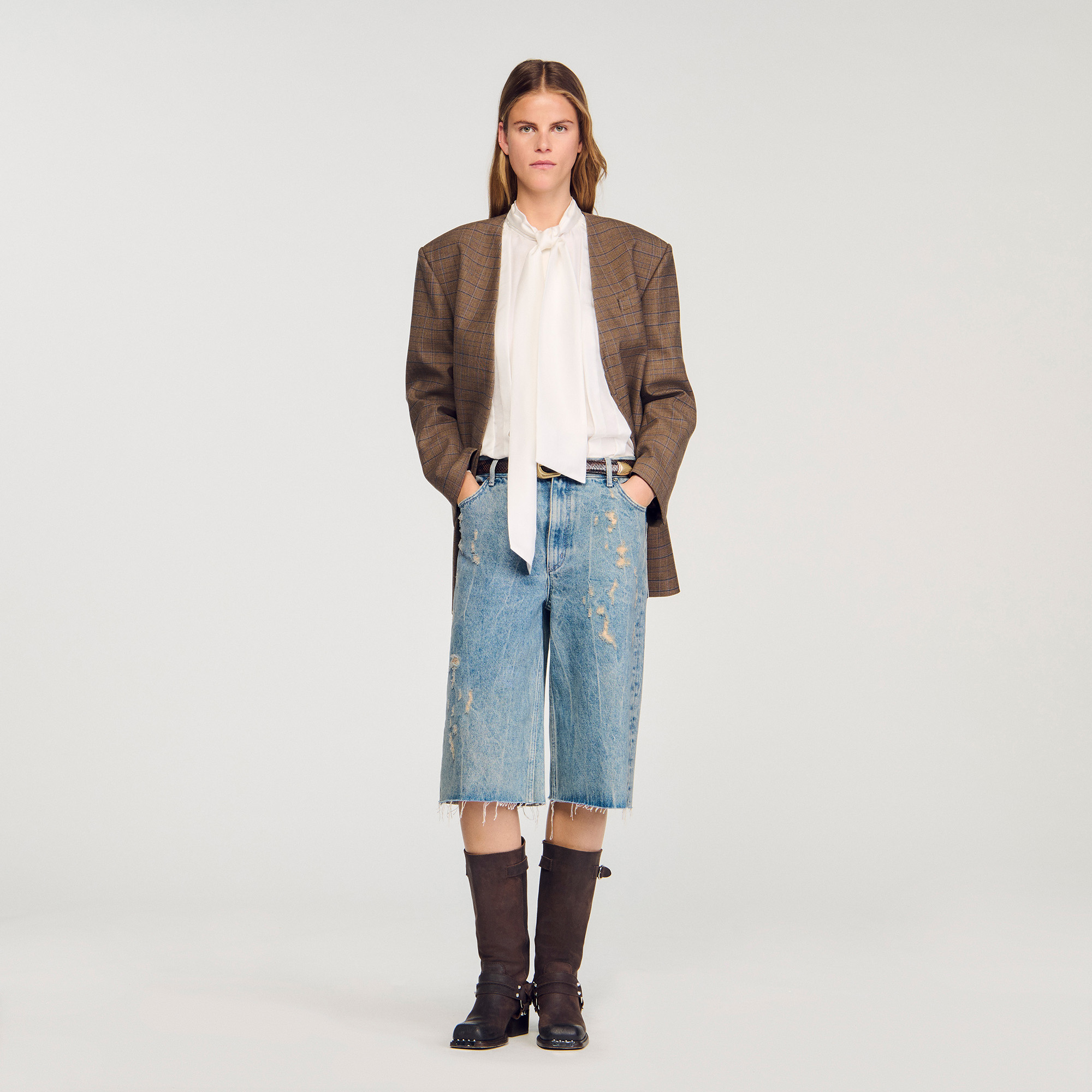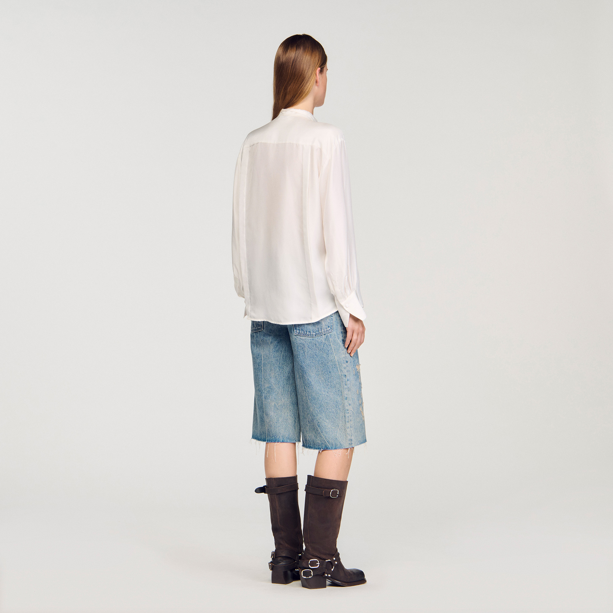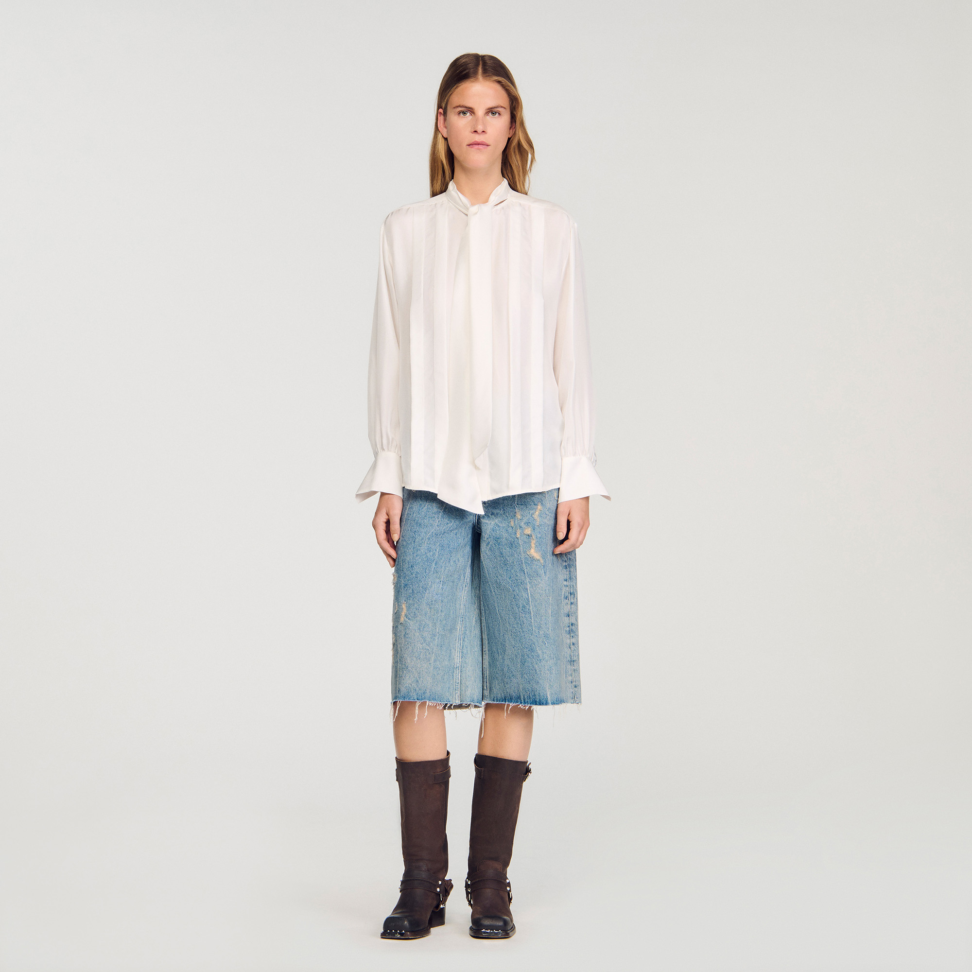 Sandro silk shirt Tie lavallière collar Long sleeves Button fastening Topstitched flat pleats on front and back Designed for a boxy fit.