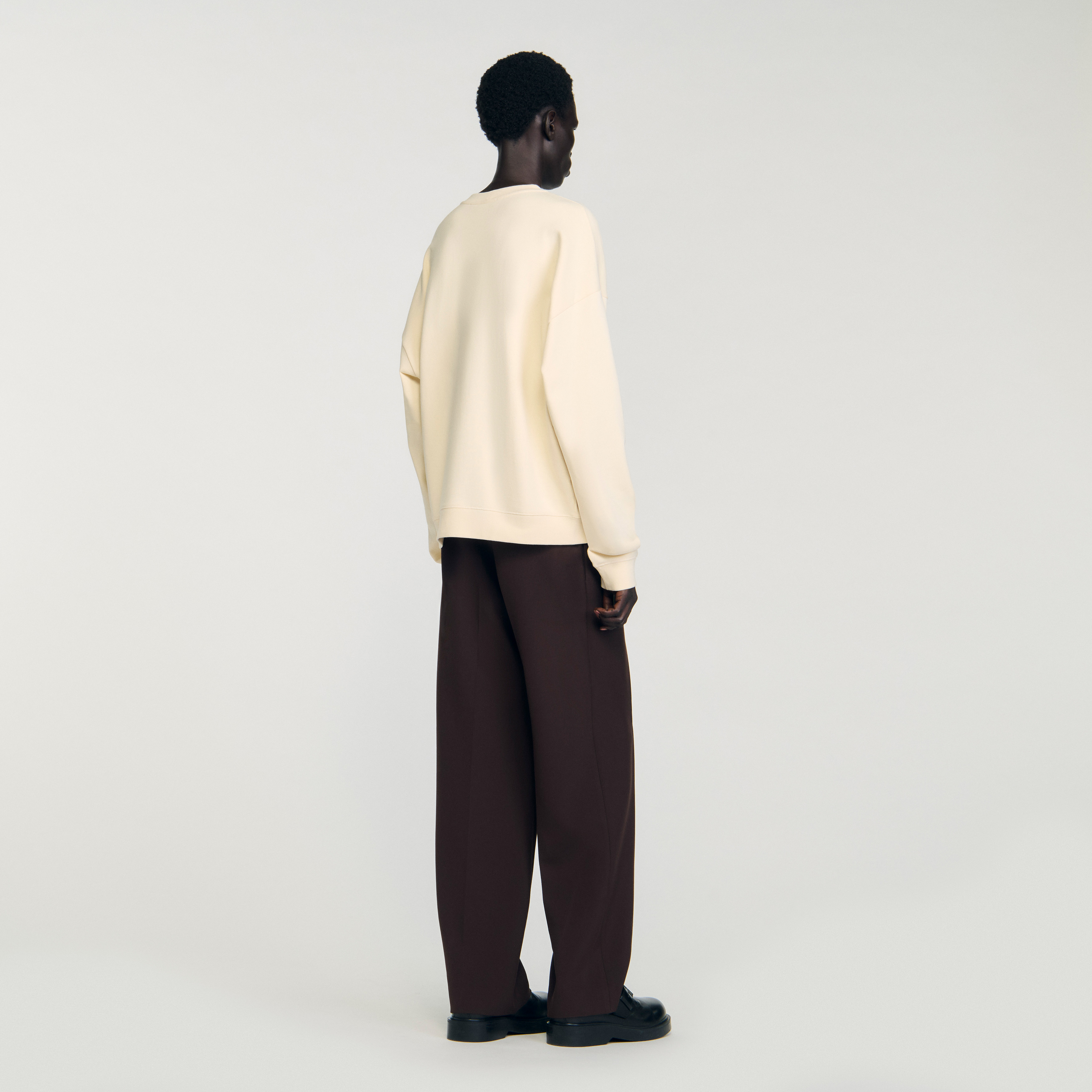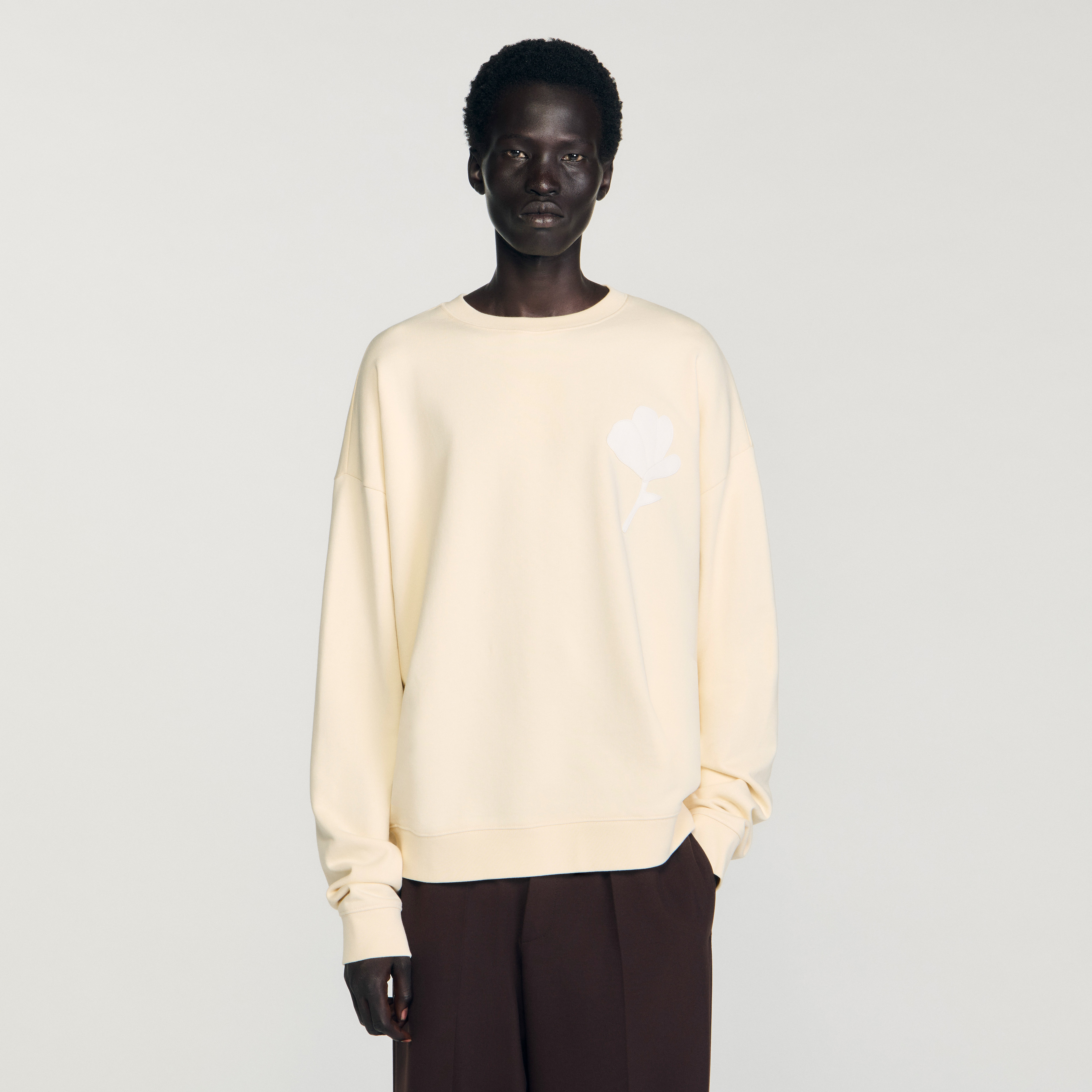 Sandro cotton Classic fit sweatshirt in non-brushed cotton with long sleeves and a flower patch on the chest.