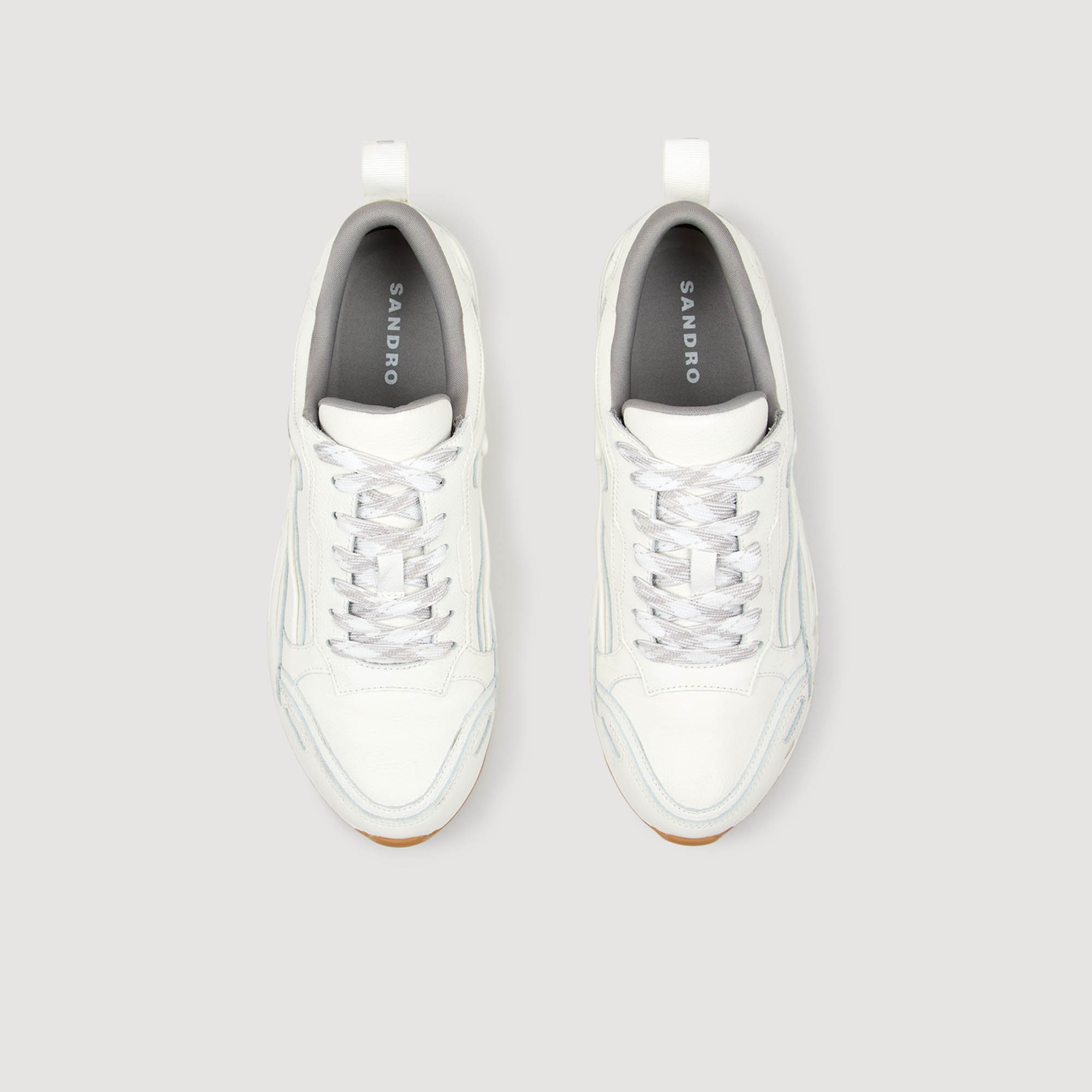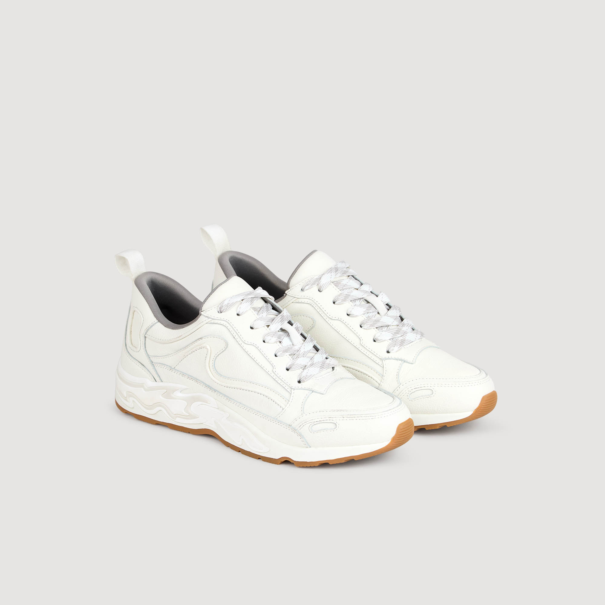 Sandro leather Mixed-material sneakers with laces and a flame motif sole.