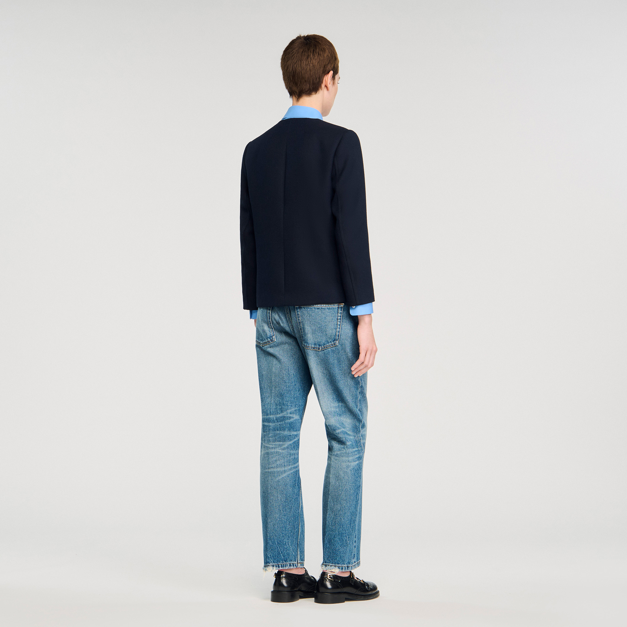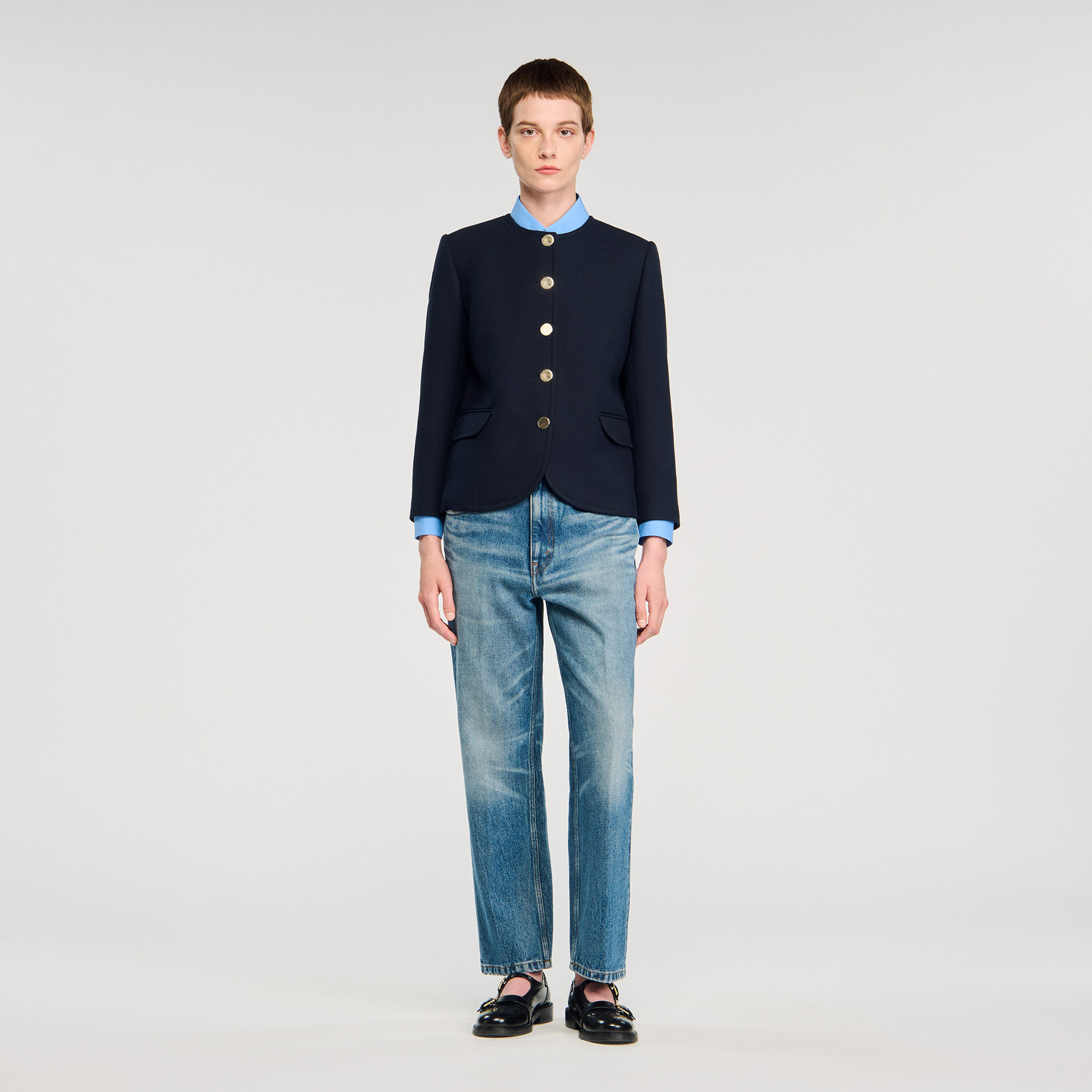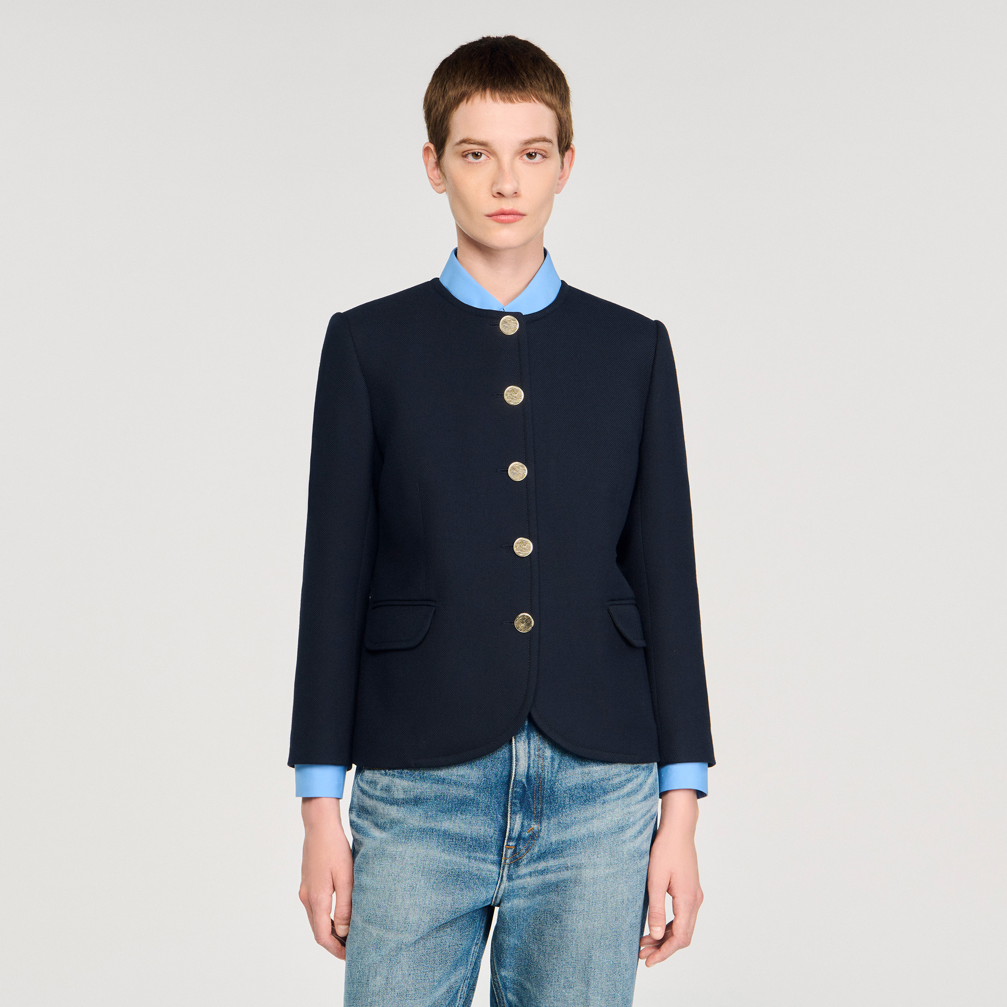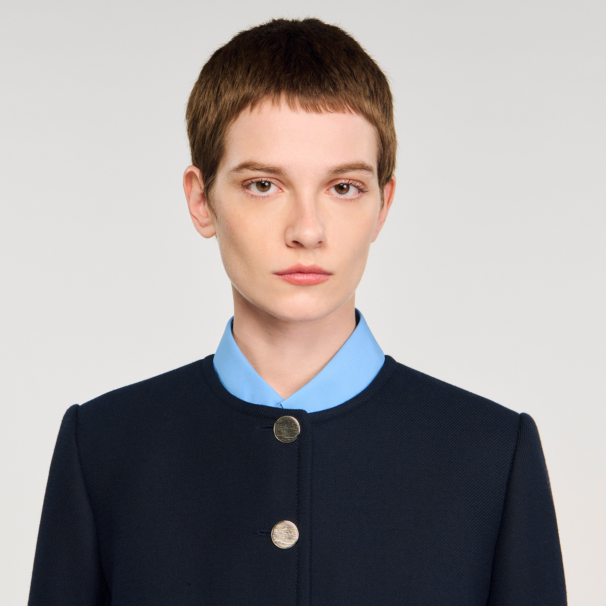 Sandro Women's jacket Round collar Long sleeves Welt pockets with rounded flaps Button placket Rounded hem True to size.
