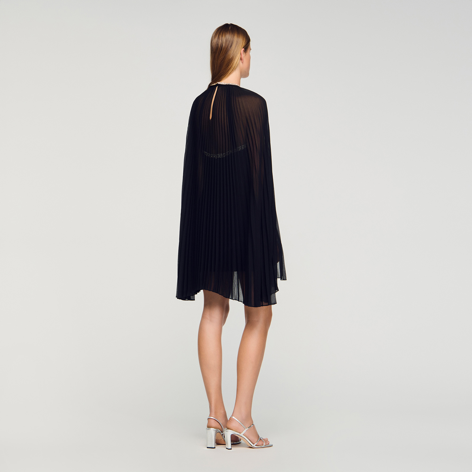 Sandro Women's mini dress V-neck Removable pleated cape Back zip fastening Lined True to size.