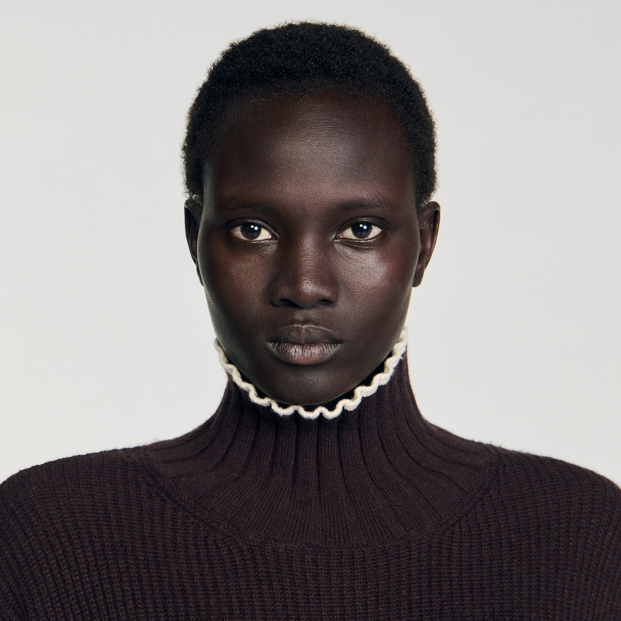 Sandro Women's turtleneck sweater Long sleeves Contrasting edging Ribbed trim True to size.