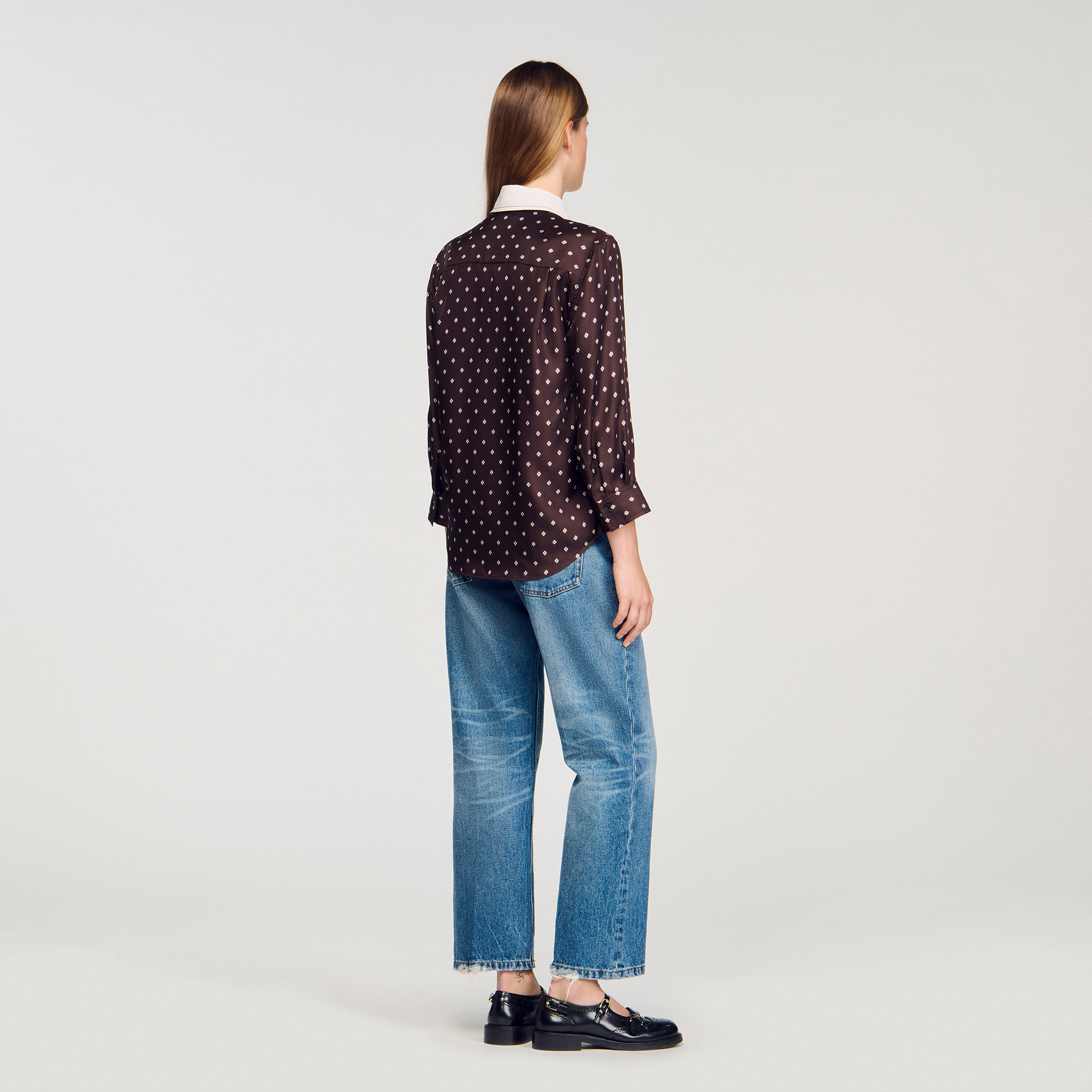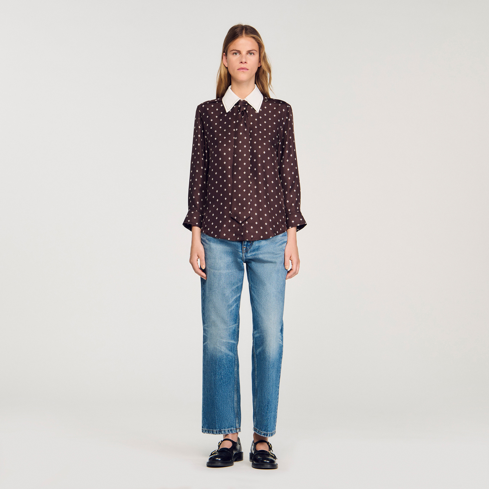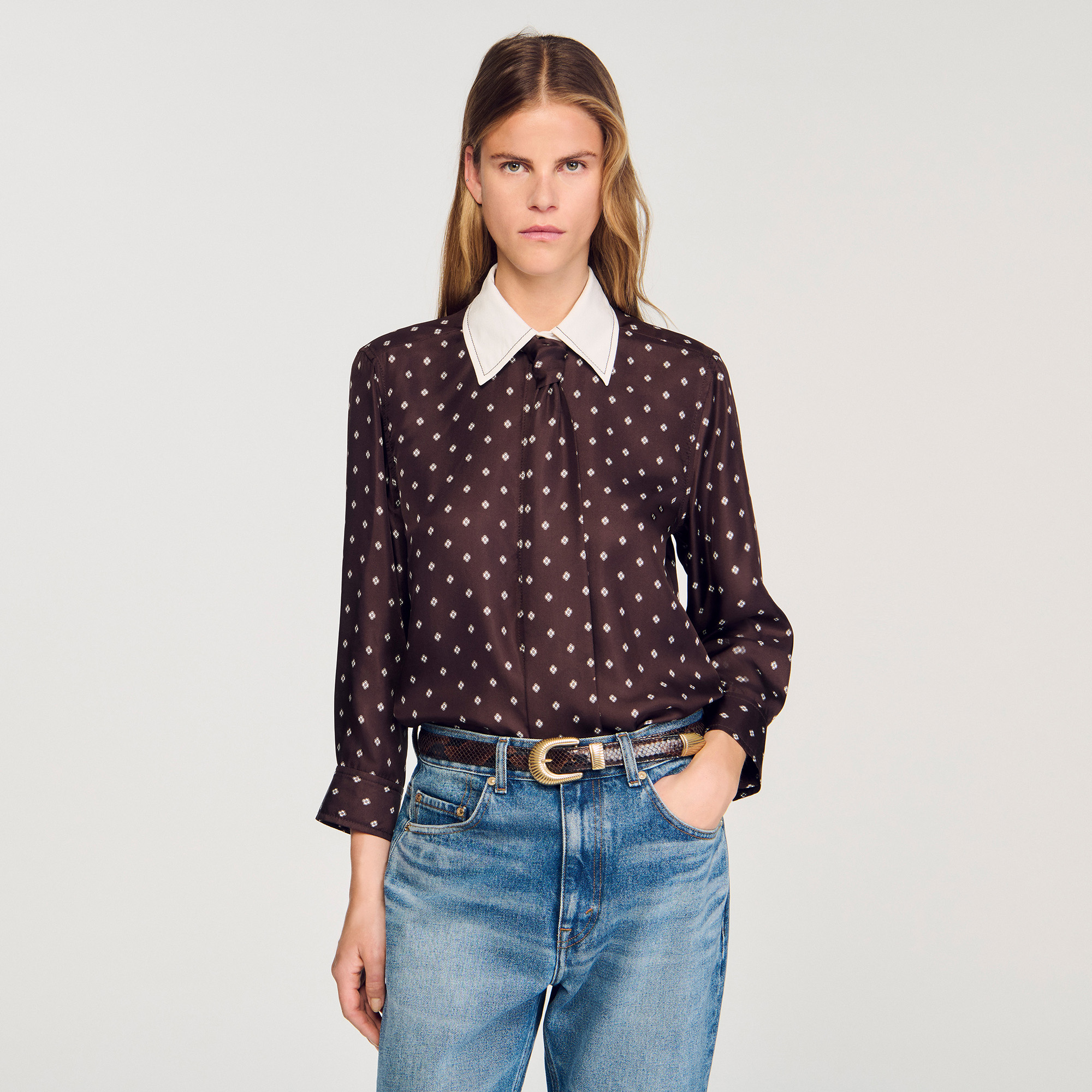 Sandro silk Fluid printed shirt with contrasting shirt collar with removable tie, button fastening and long sleeves with buttoned cuffs.