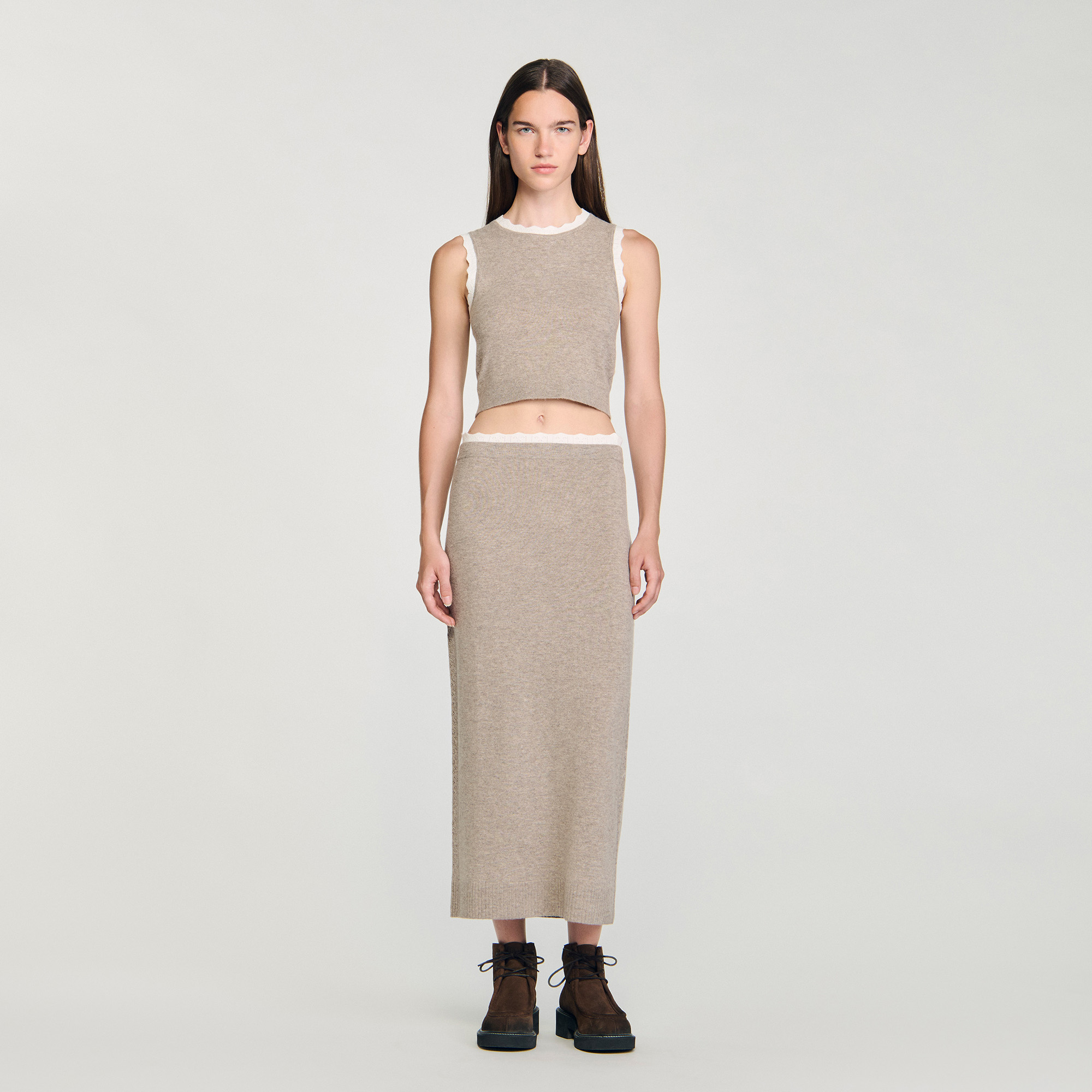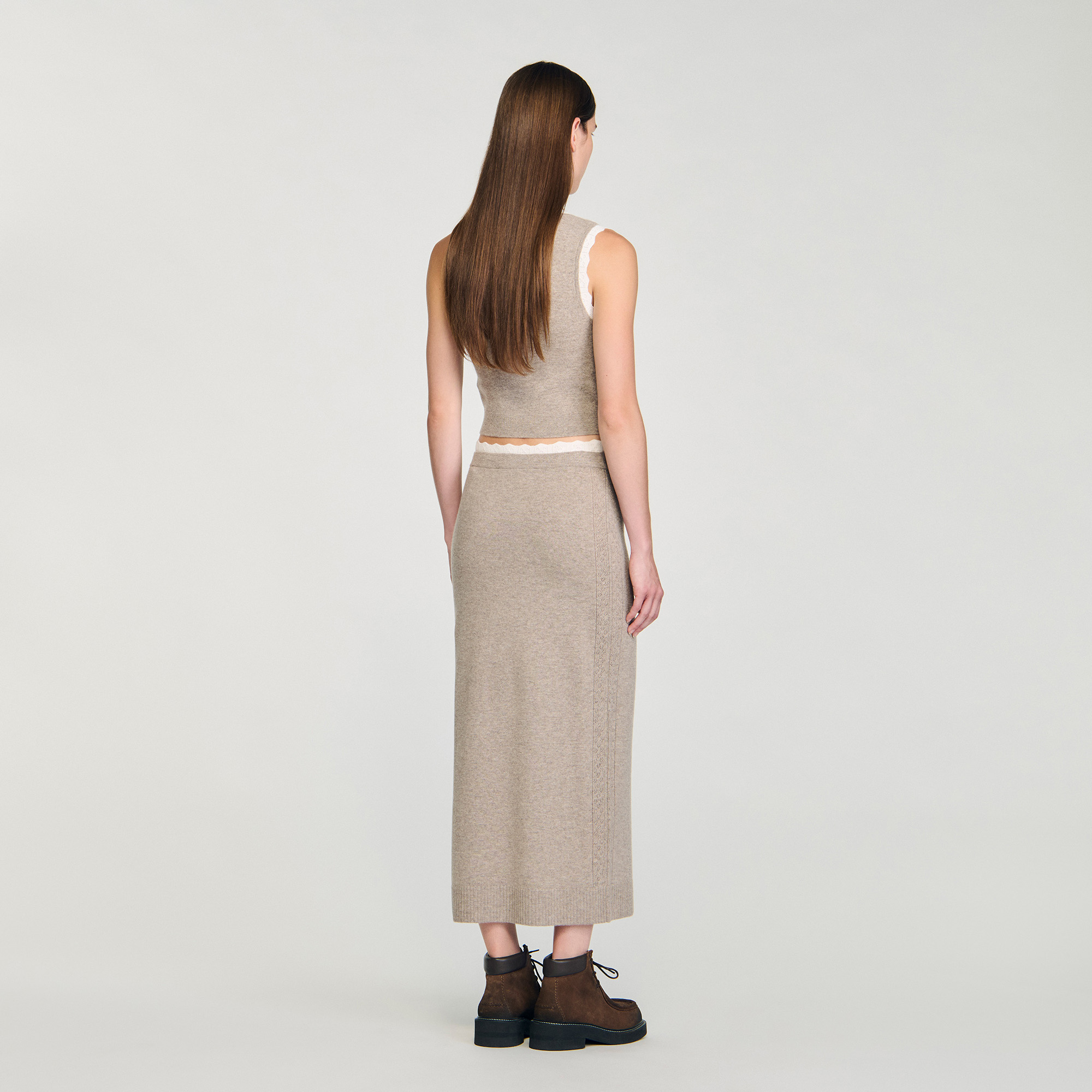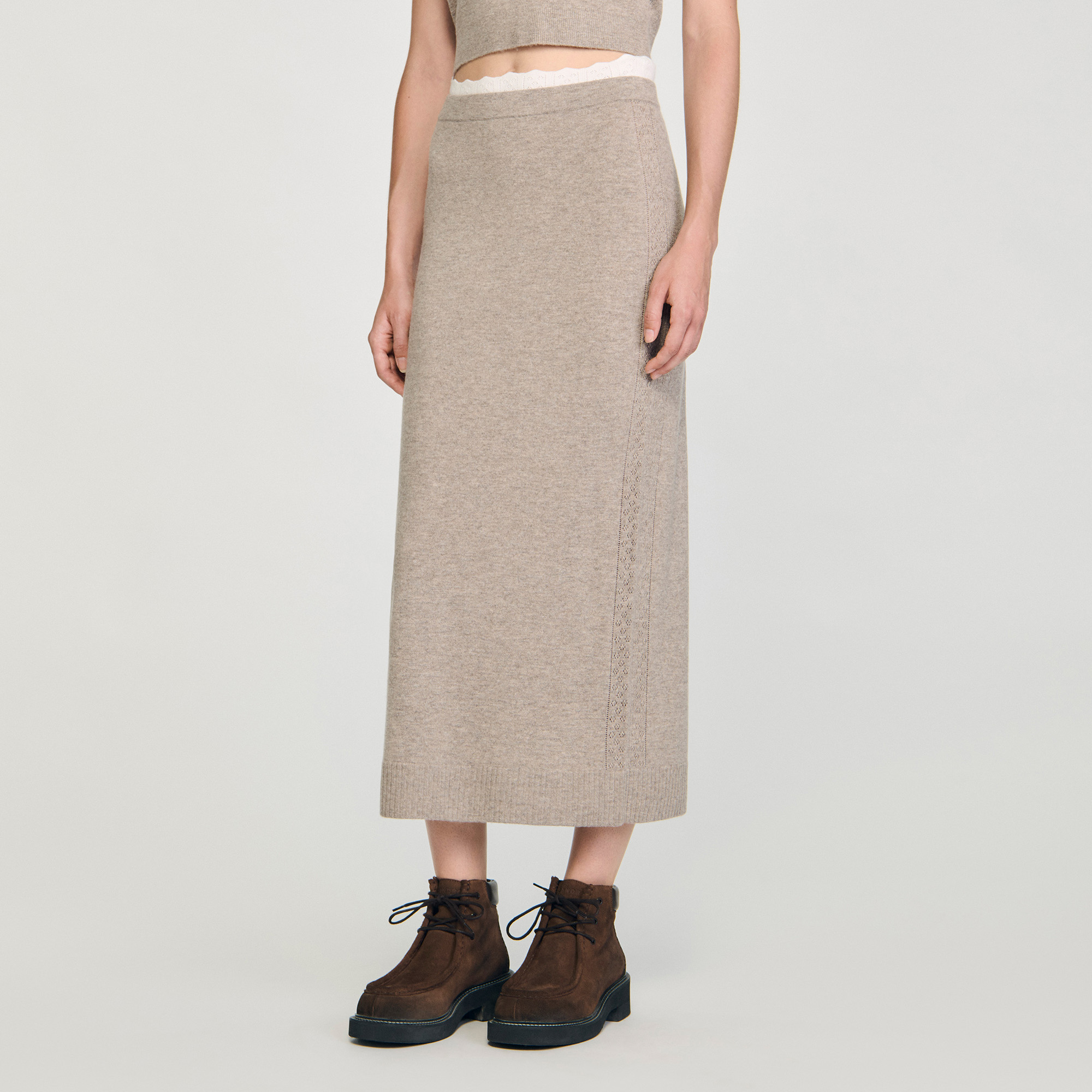 Sandro wool Maxi knit skirt with contrasting pointelle knit waistband.
