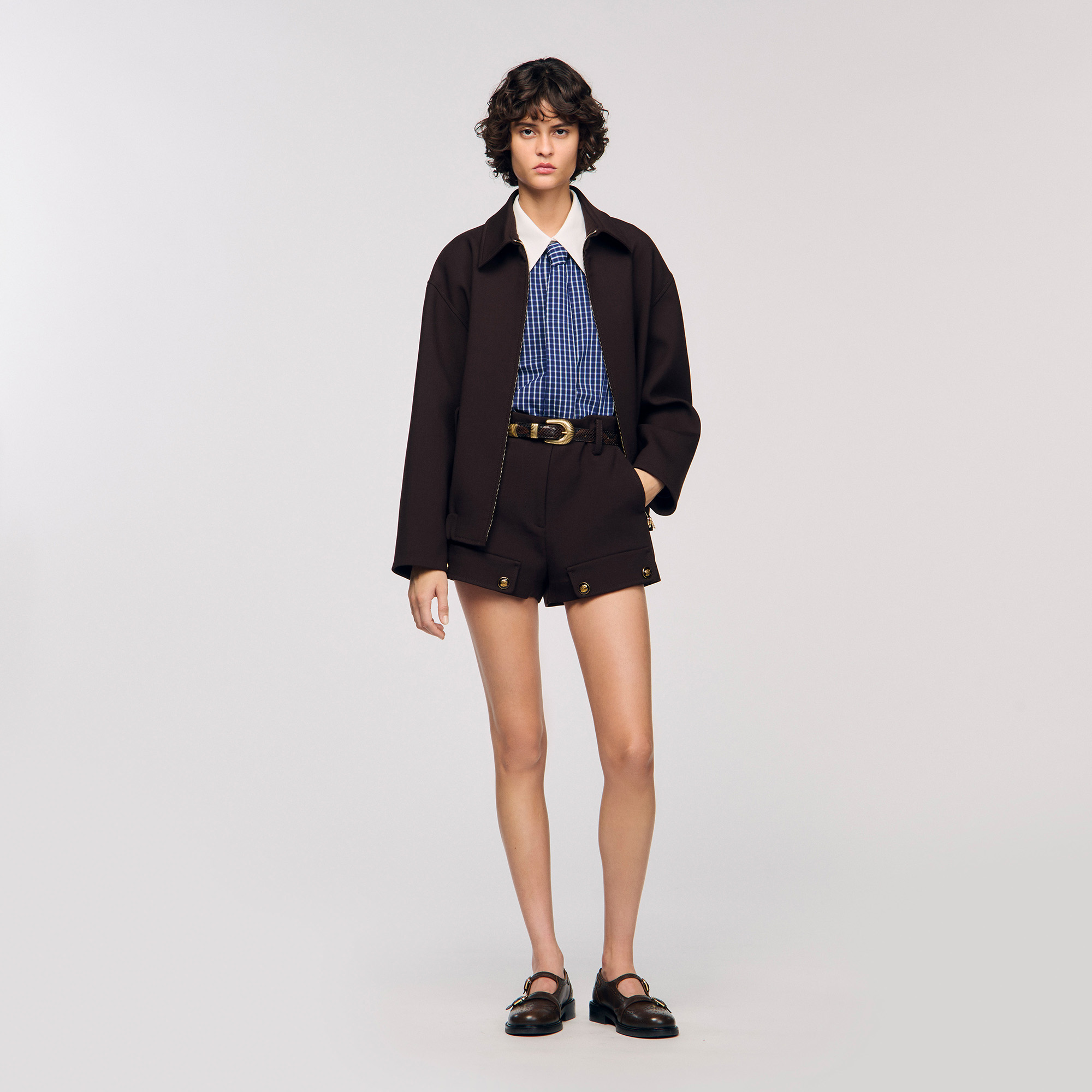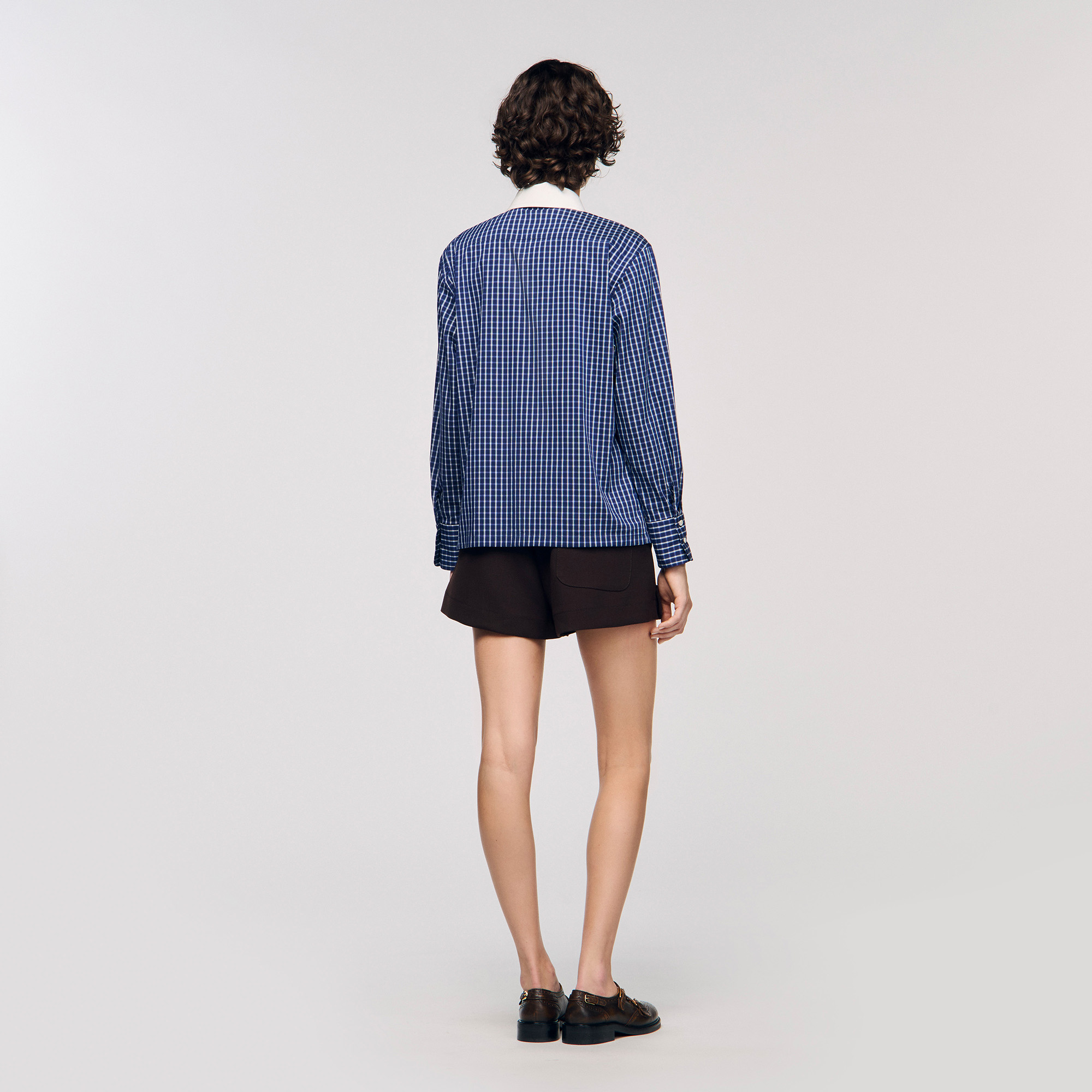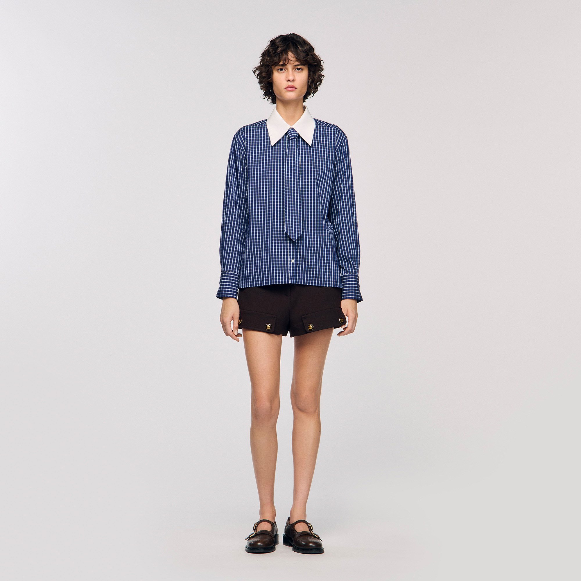 Sandro Women's checkered shirt Removable contrast collar Removable tie Long sleeves with buttoned cuffs Button fastening True to size.