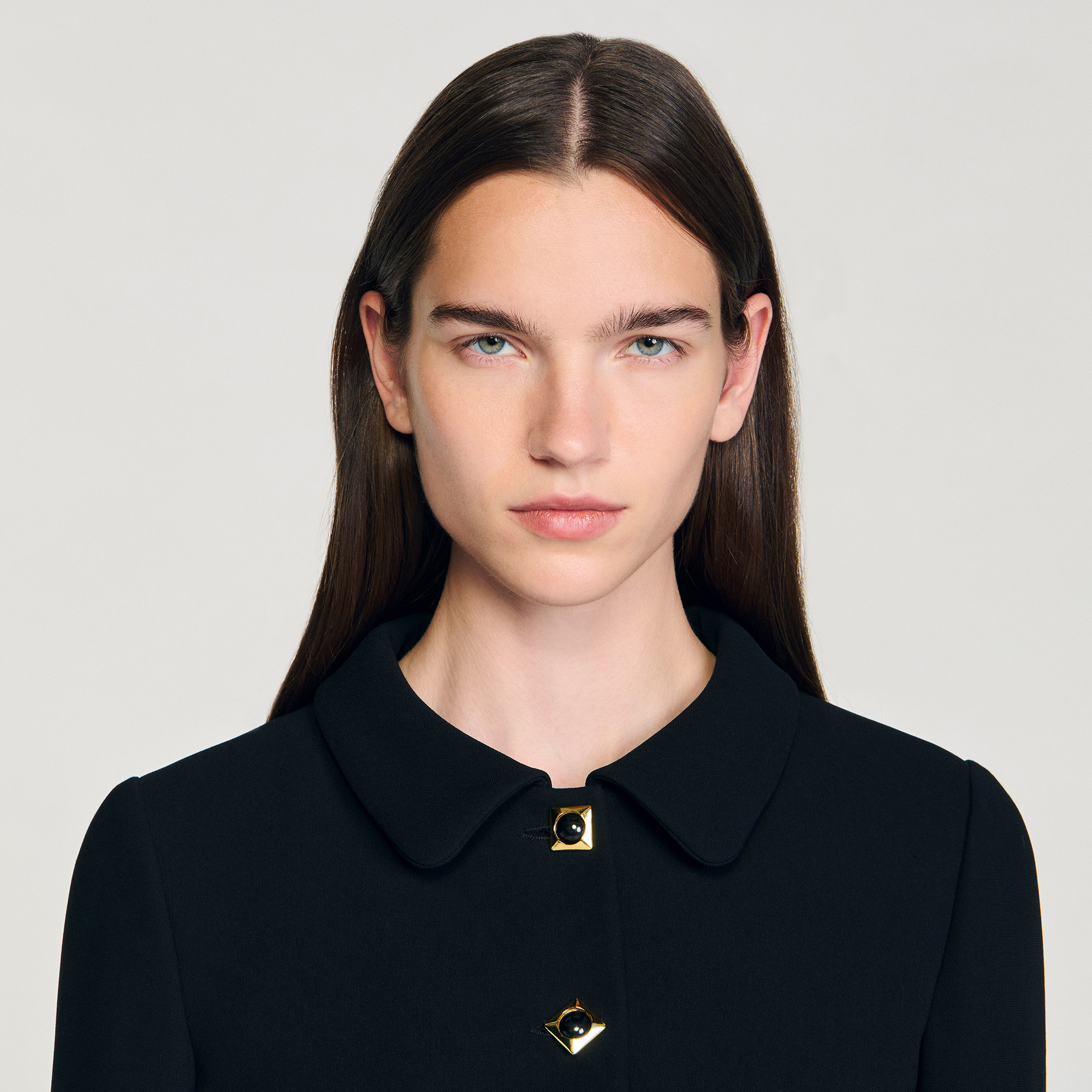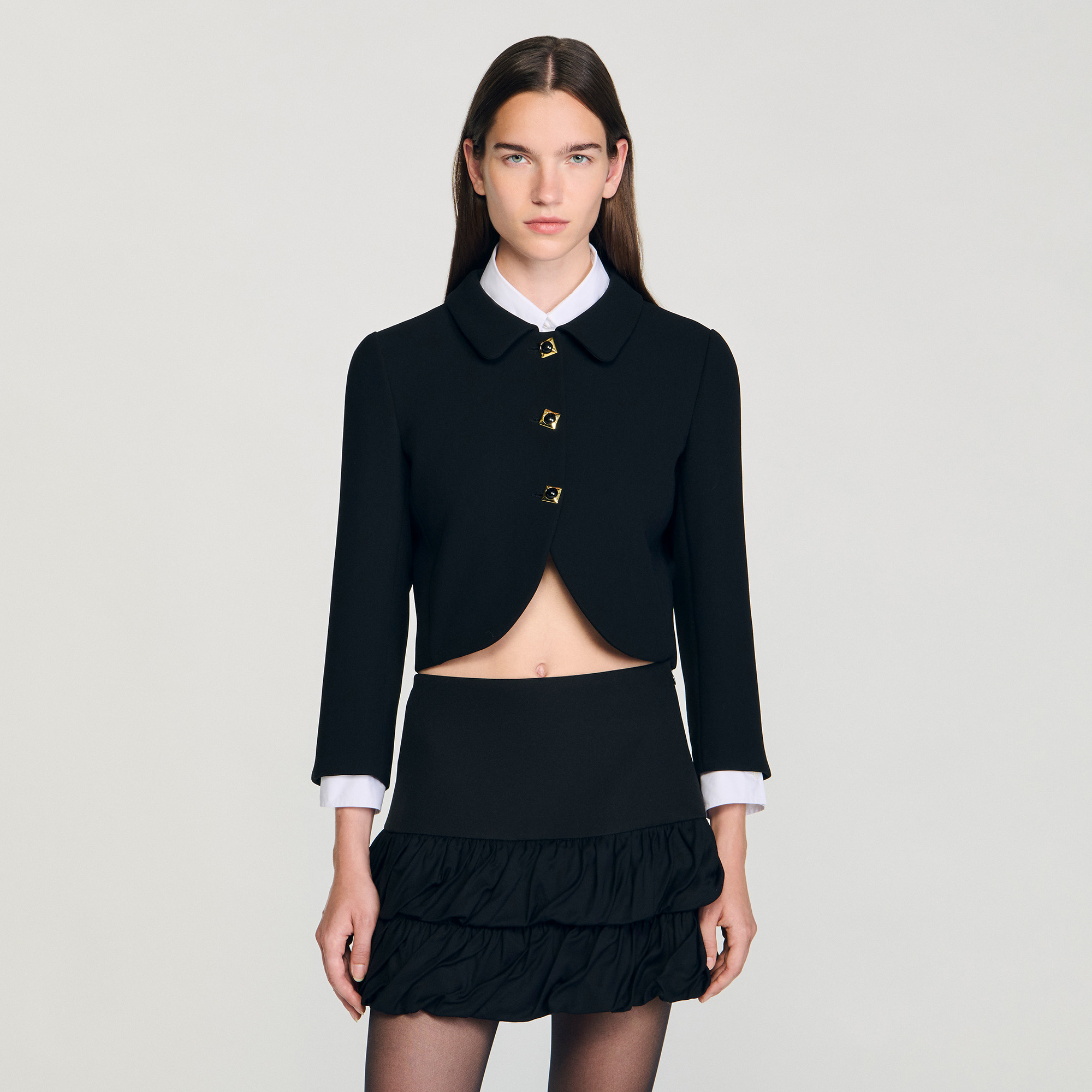 Sandro polyester Cropped jacket with decorative buttons featuring a shirt collar, long sleeves and a rounded hem.