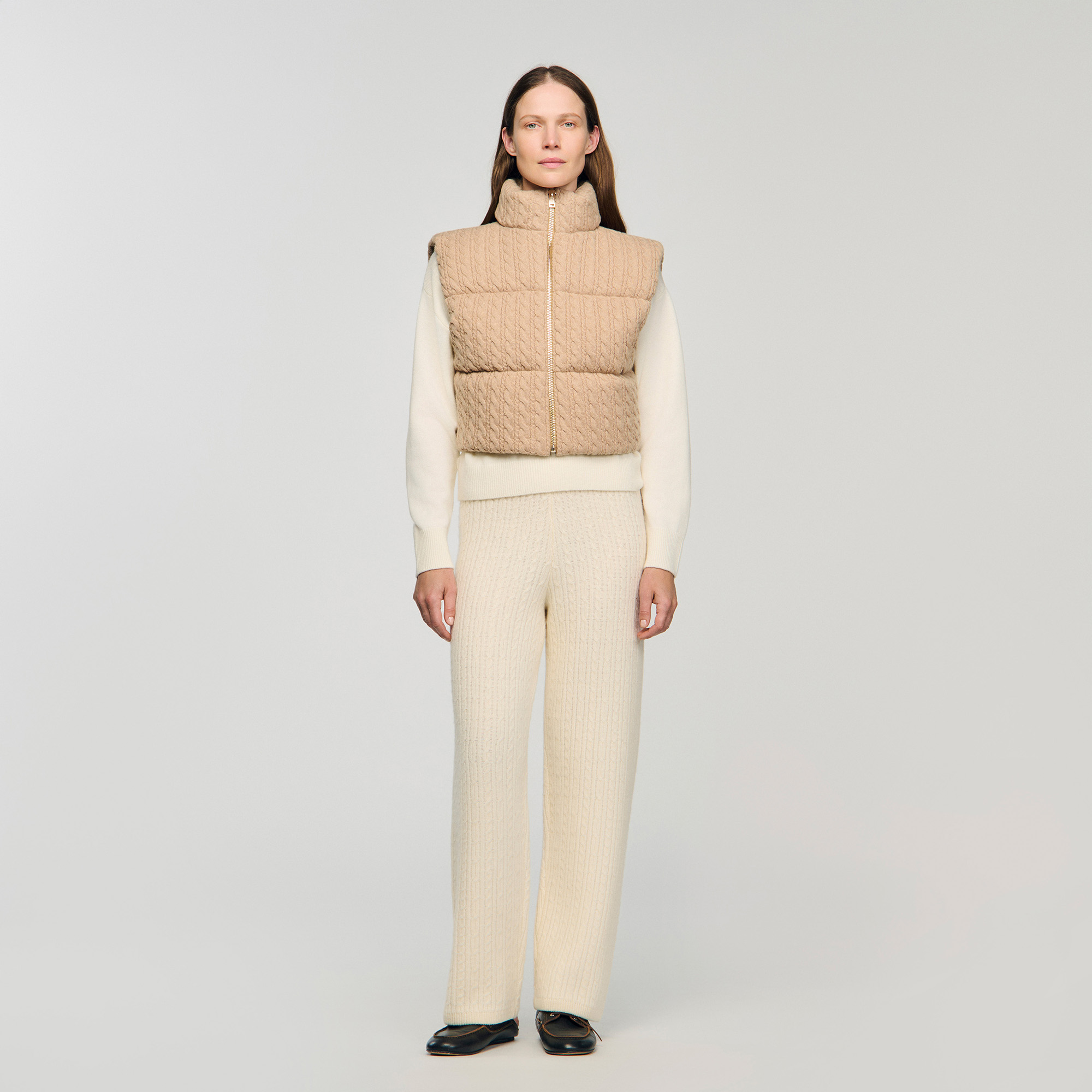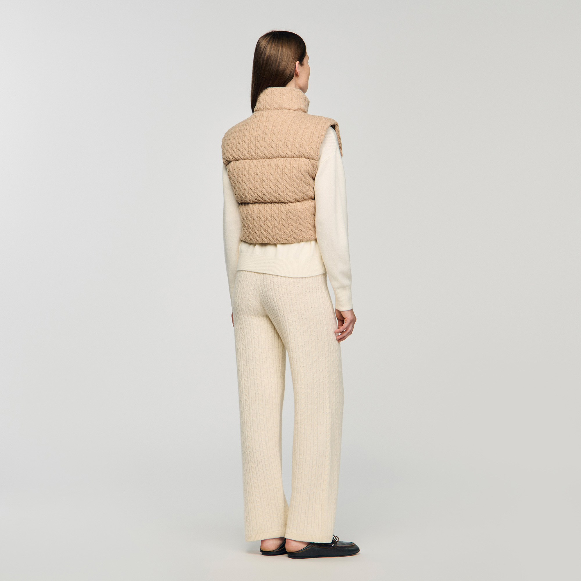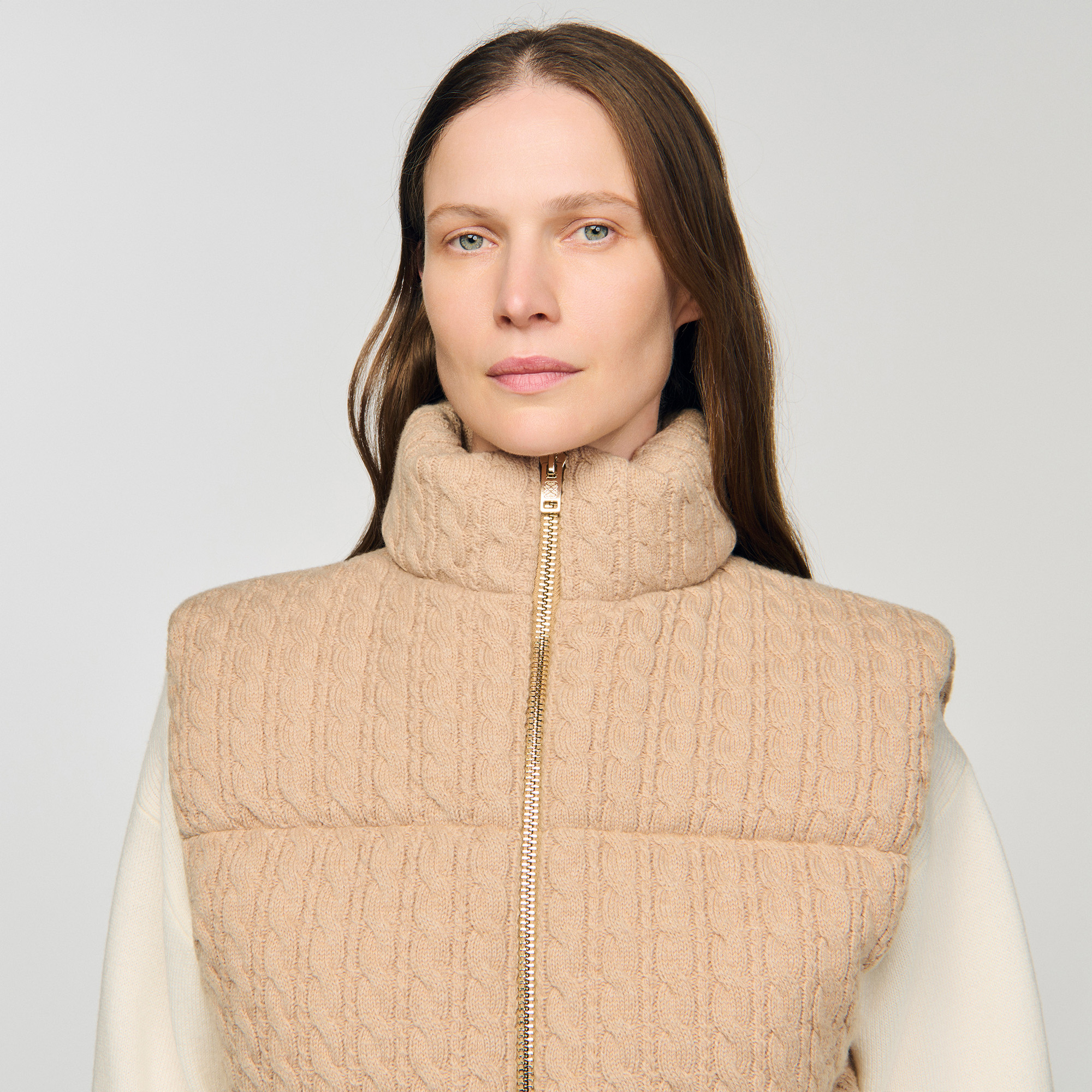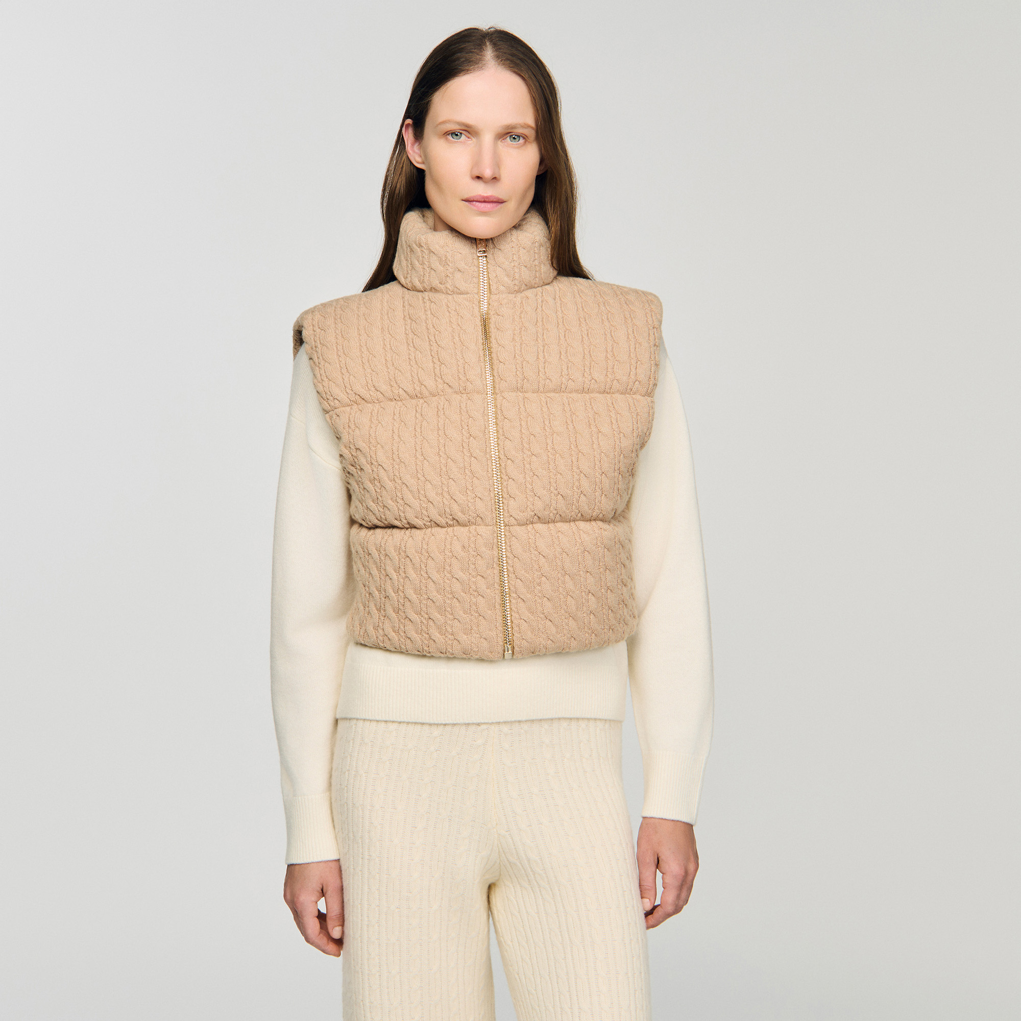 Sandro wool Sleeveless cropped puffer vest in cable knit with stand-up collar and zip fastening.