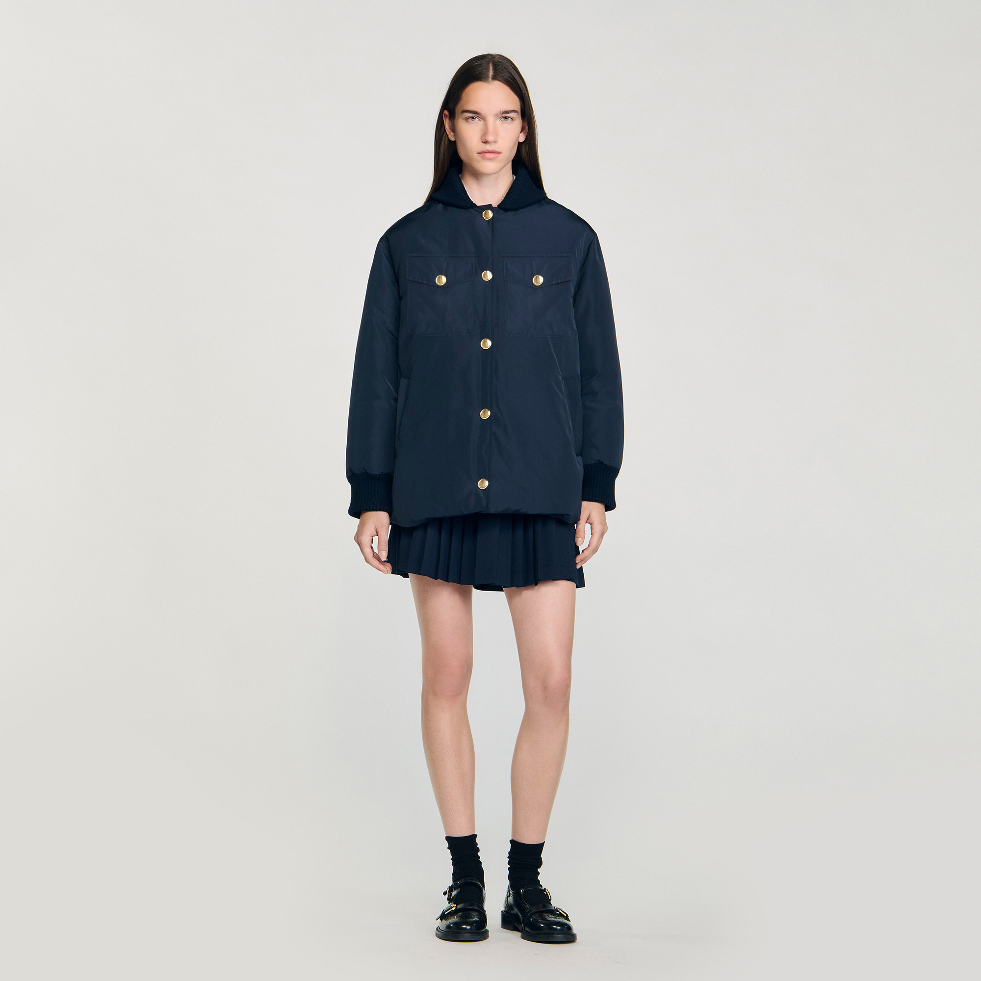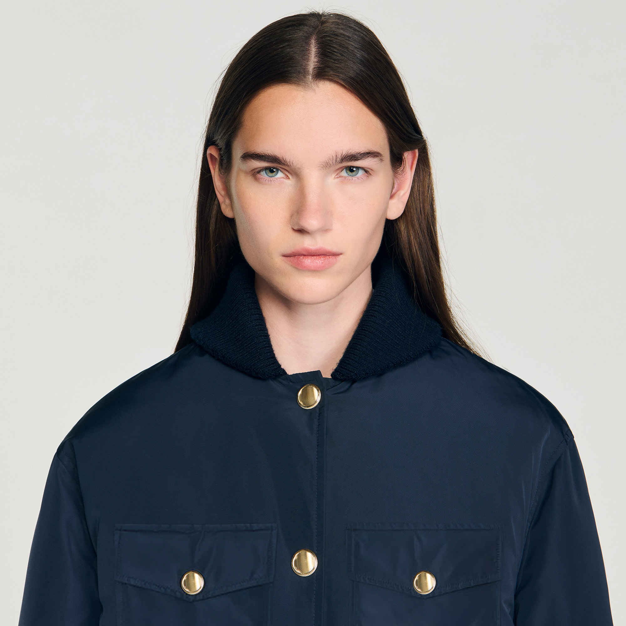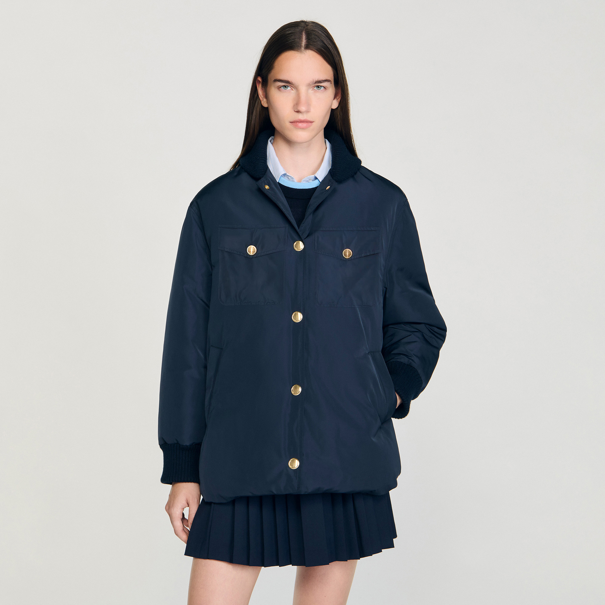 Sandro polyester Quilted coat-style puffer with ribbed teddy collar, long sleeves, flap patch pockets and button fastening.