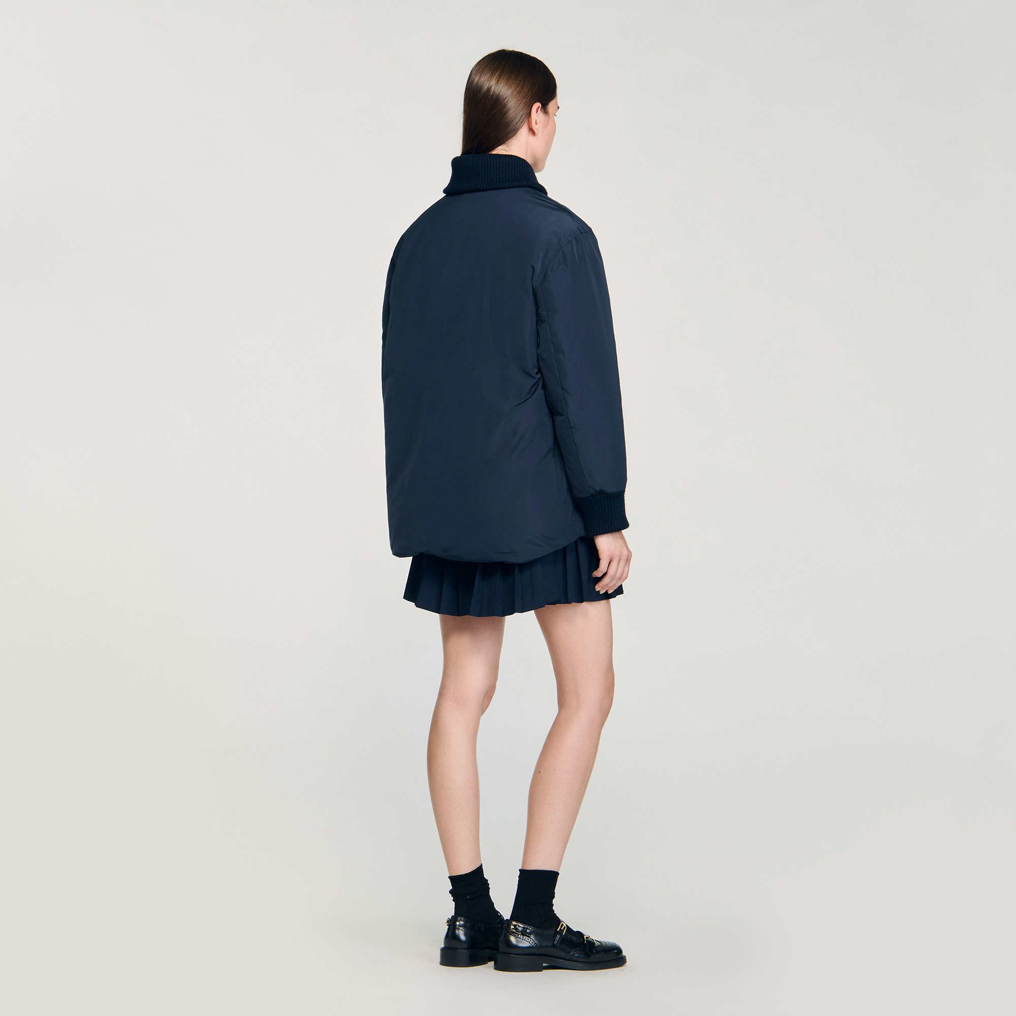Sandro Women's oversized puffer Ribbed teddy collar and cuffs Press-stud fastening Long sleeves Patch pockets on chest and welt pockets on hips Lined and quilted Designed for a boxy fit.