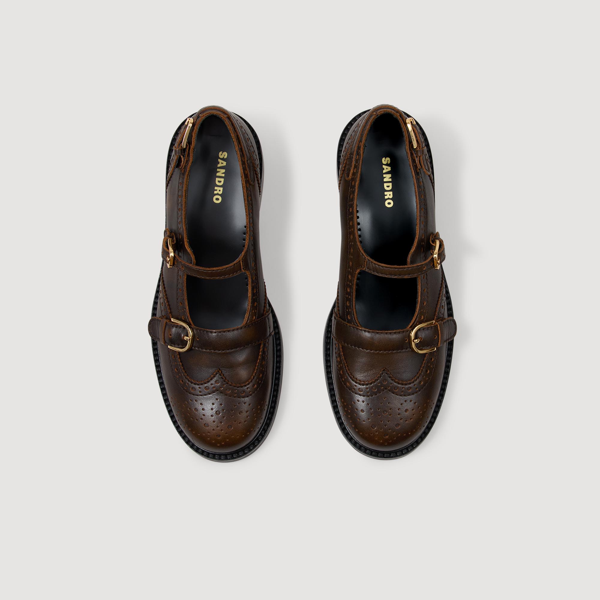 Sandro leather Mary Jane style loafers in shiny leather with thin straps and adjustable buckles.