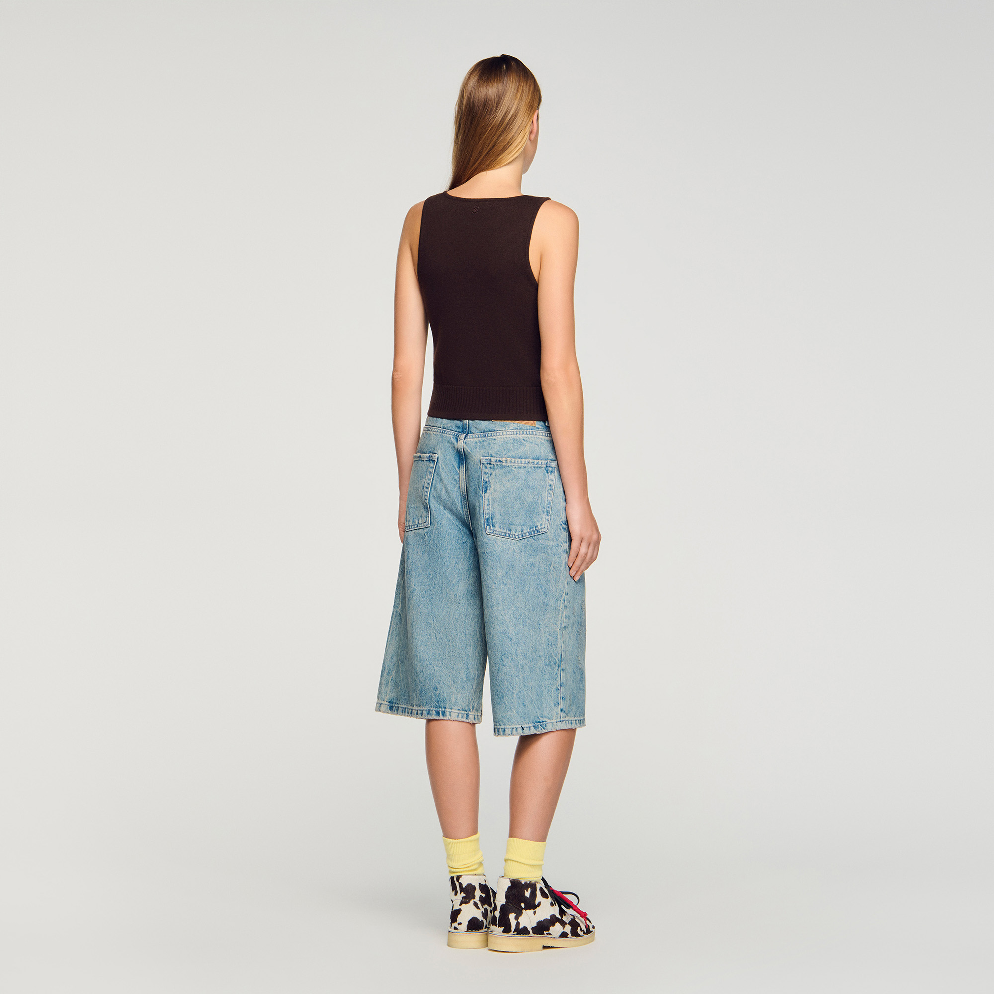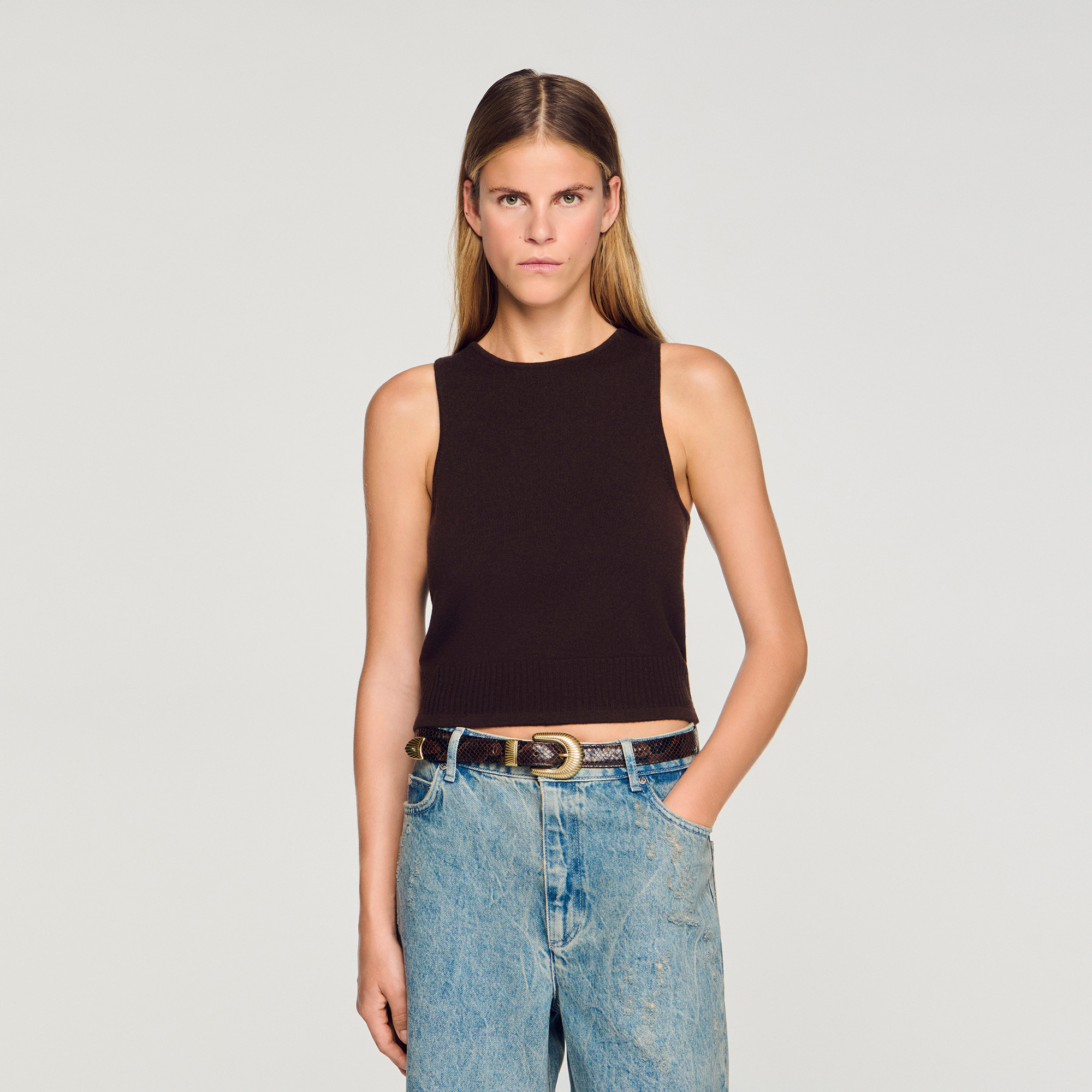 Sandro Women's sleeveless knit vest Round neck Sleeveless Tone-on-tone tag on chest Ribbed hem True to size.