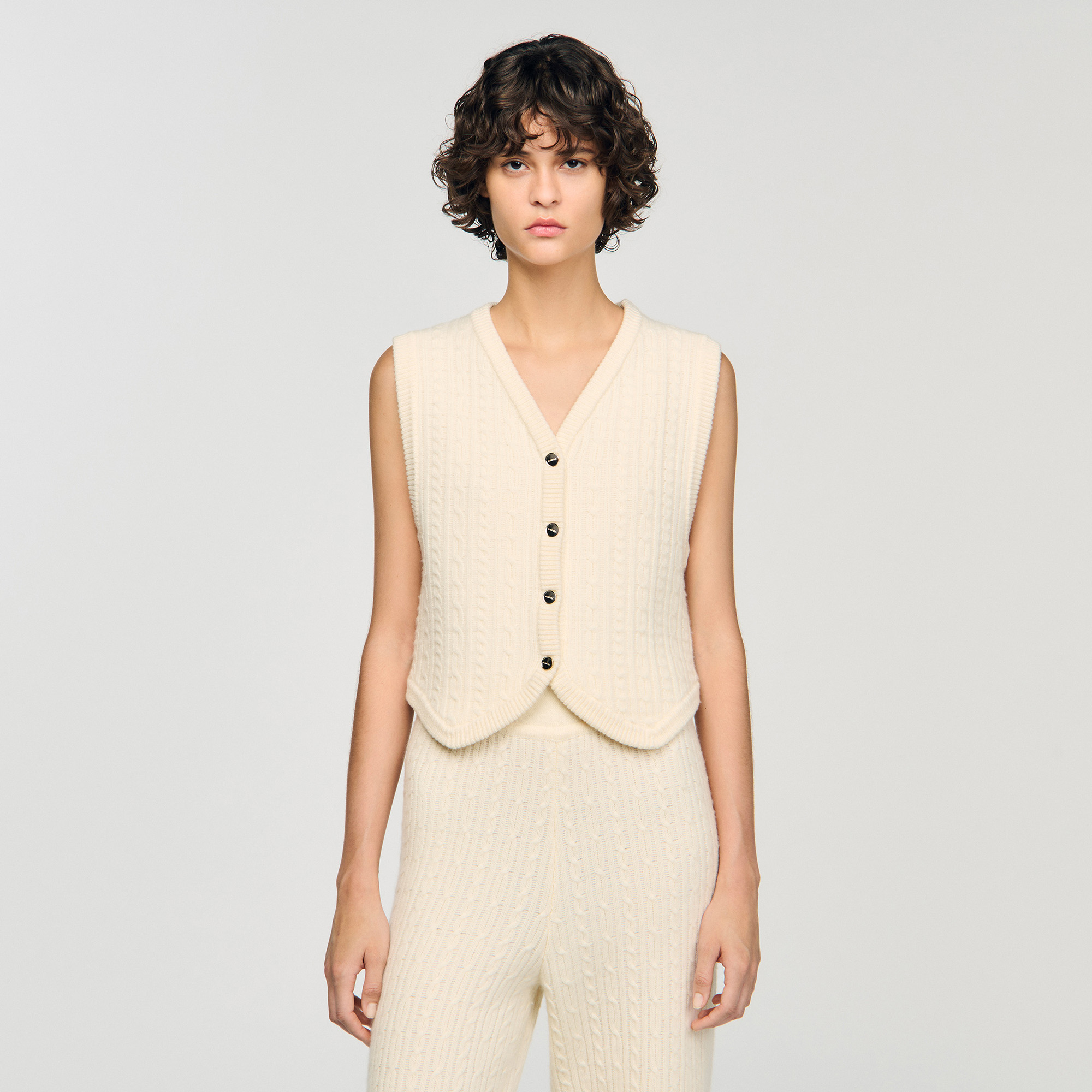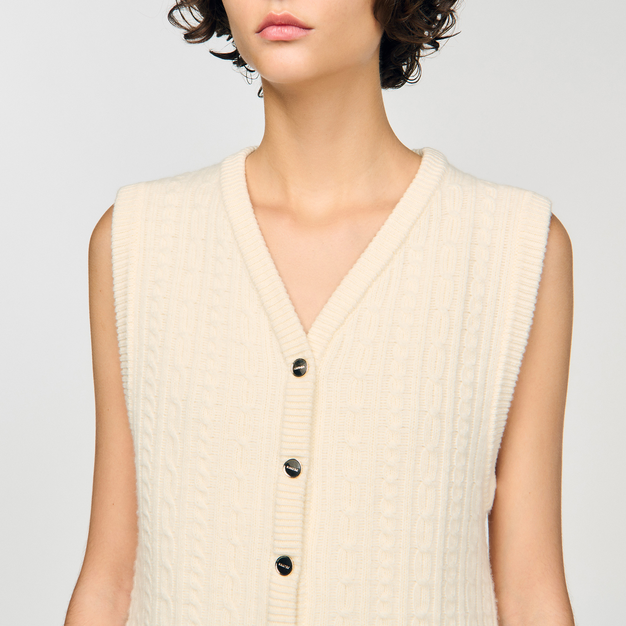 Sandro wool Cable knit vest with a V-neck and button fastening.
