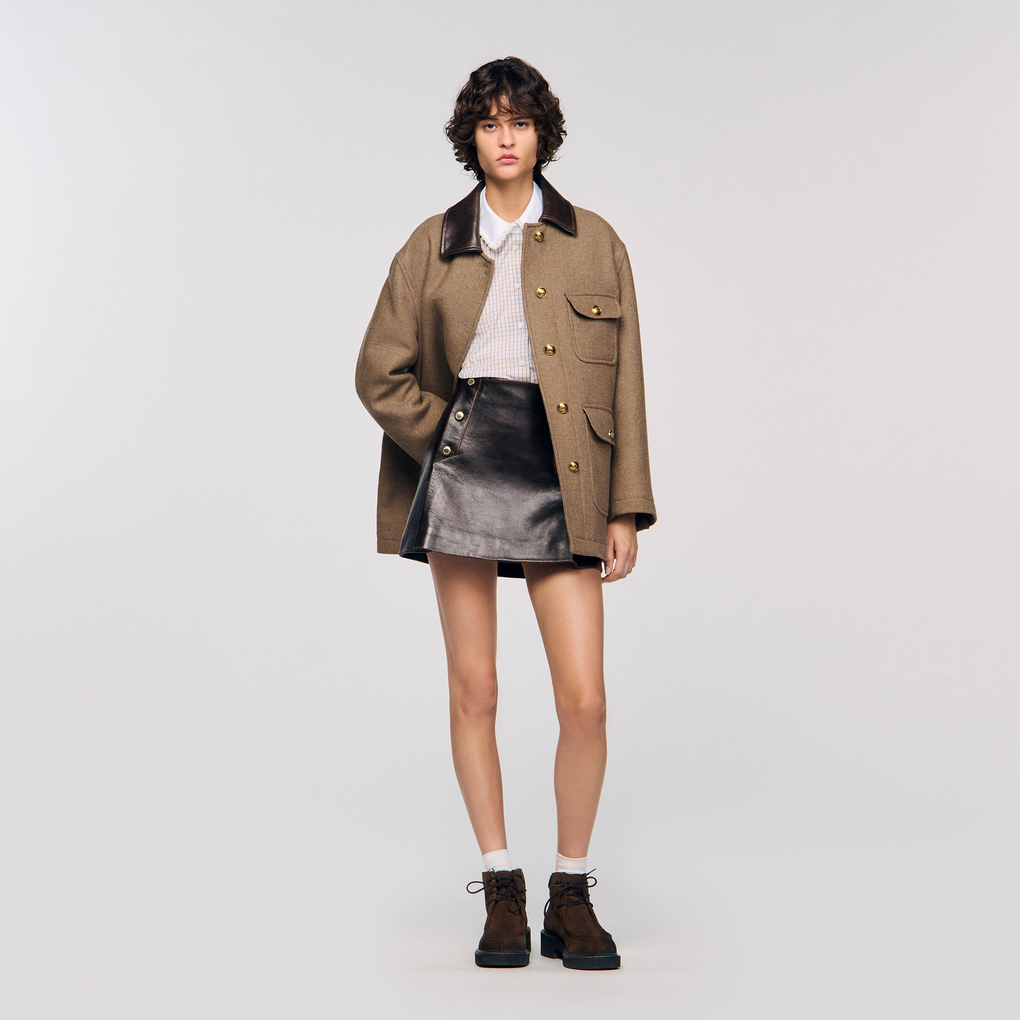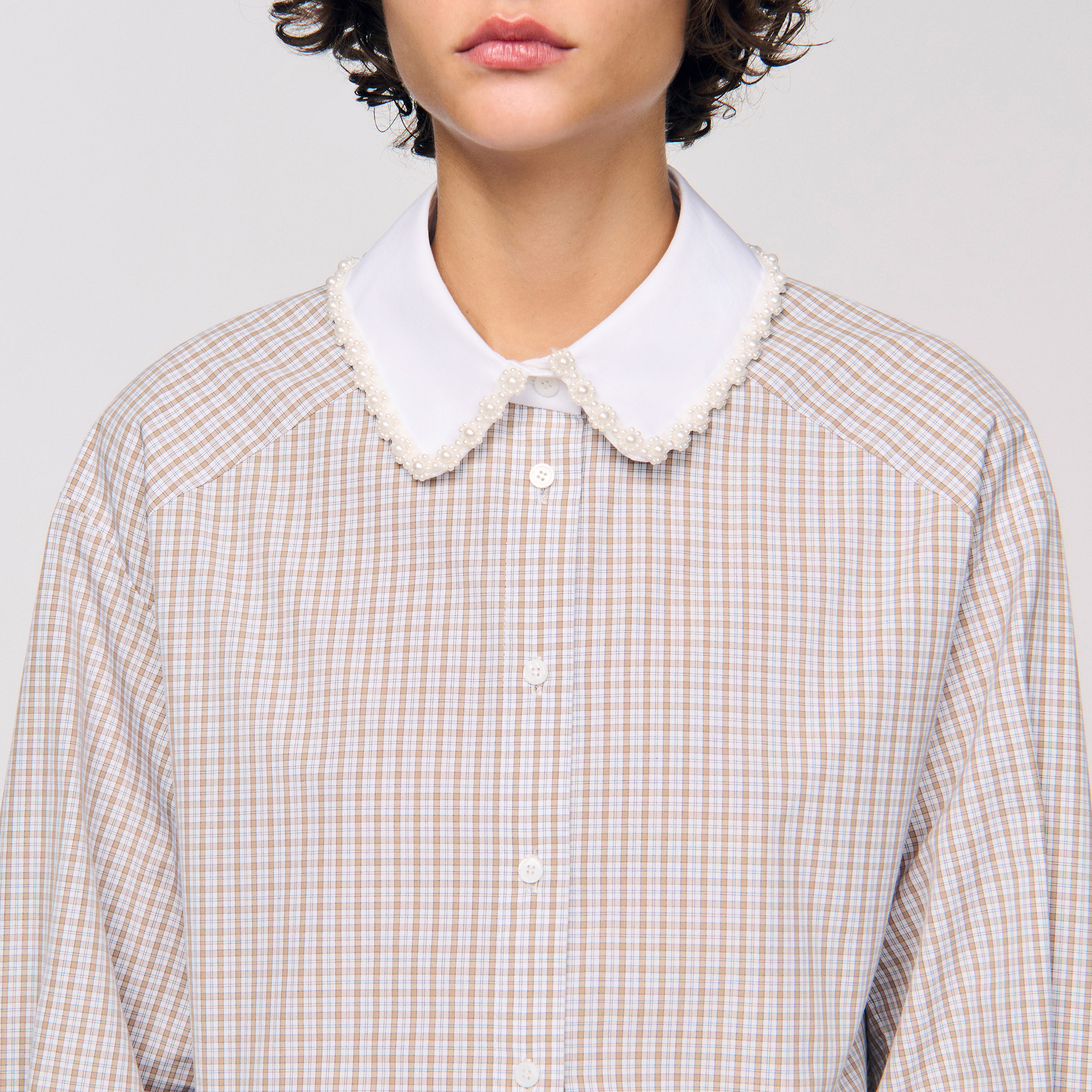 Sandro Women's plaid shirt Contrasting pearl-embroidered collar Long sleeves with buttoned cuffs Button fastening Designed for a boxy fit.