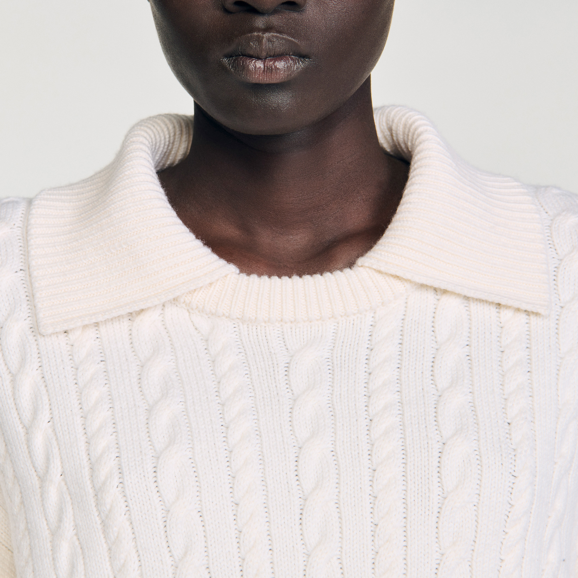 Sandro wool Cropped cable knit sweater with a sailor collar and long sleeves.
