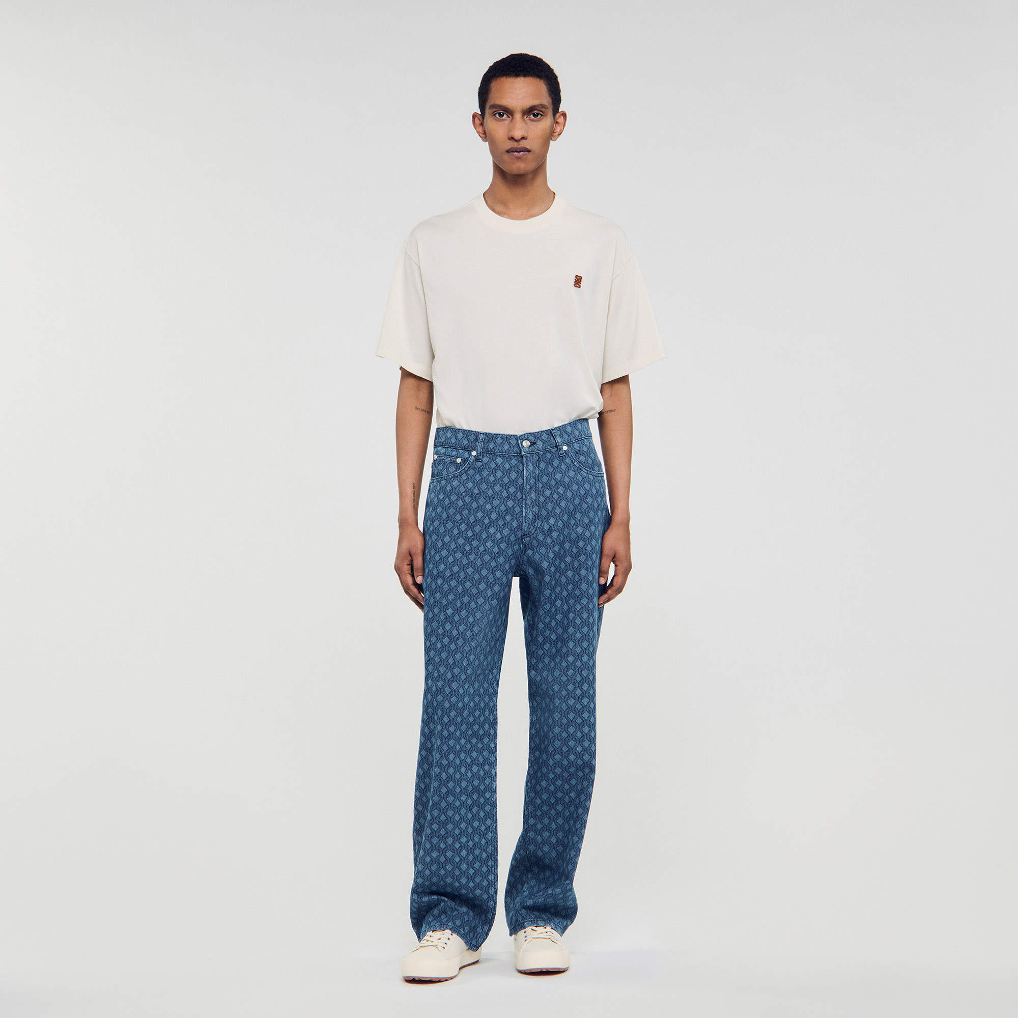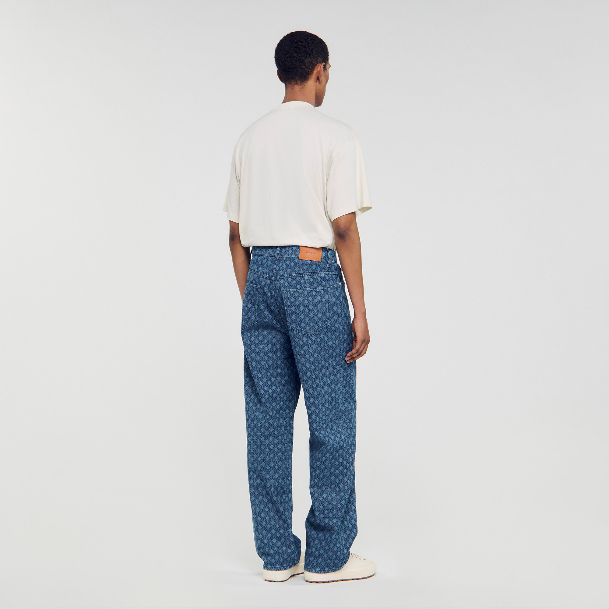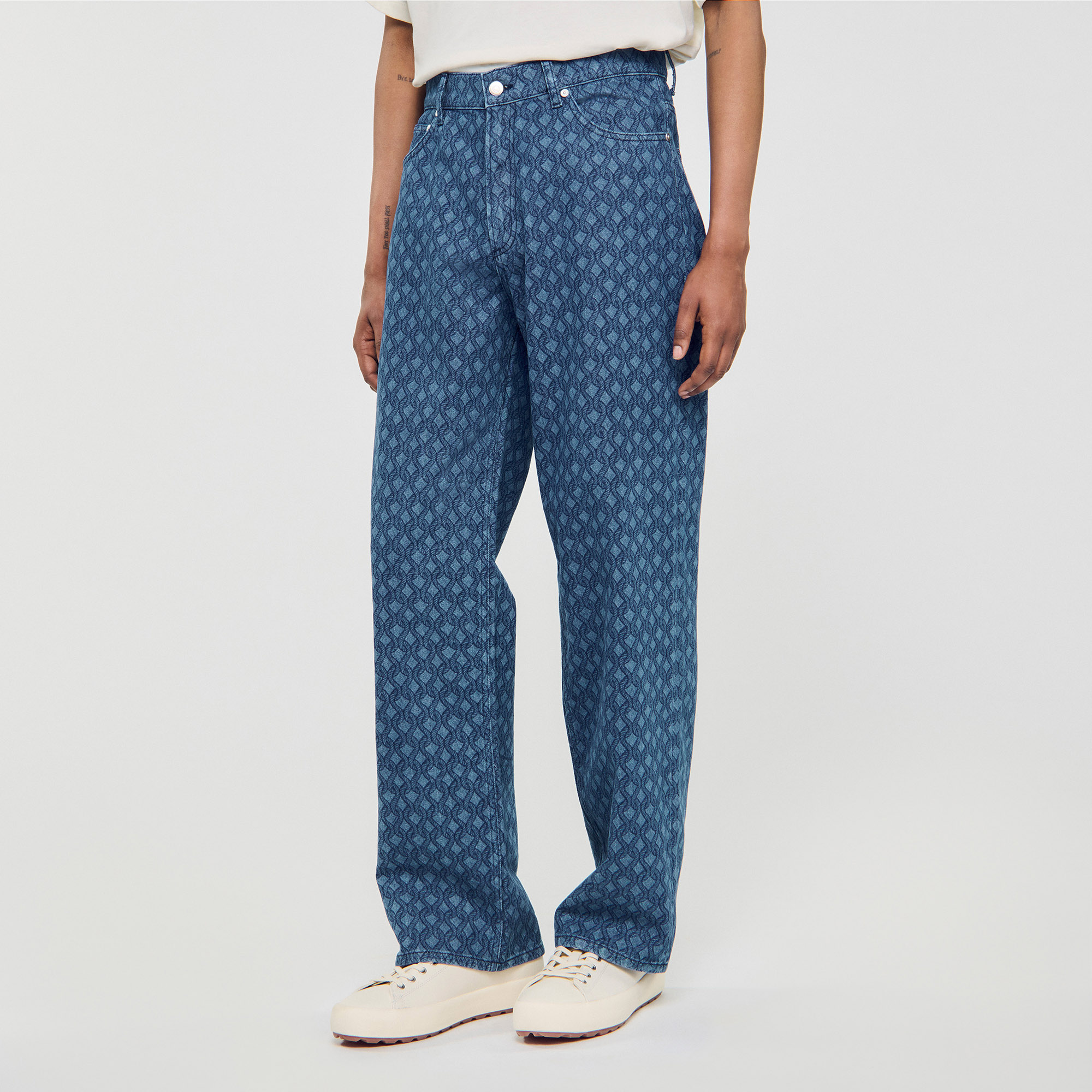 Sandro cotton Baggy faded denim jeans with laser-etched rope pattern and five pockets.