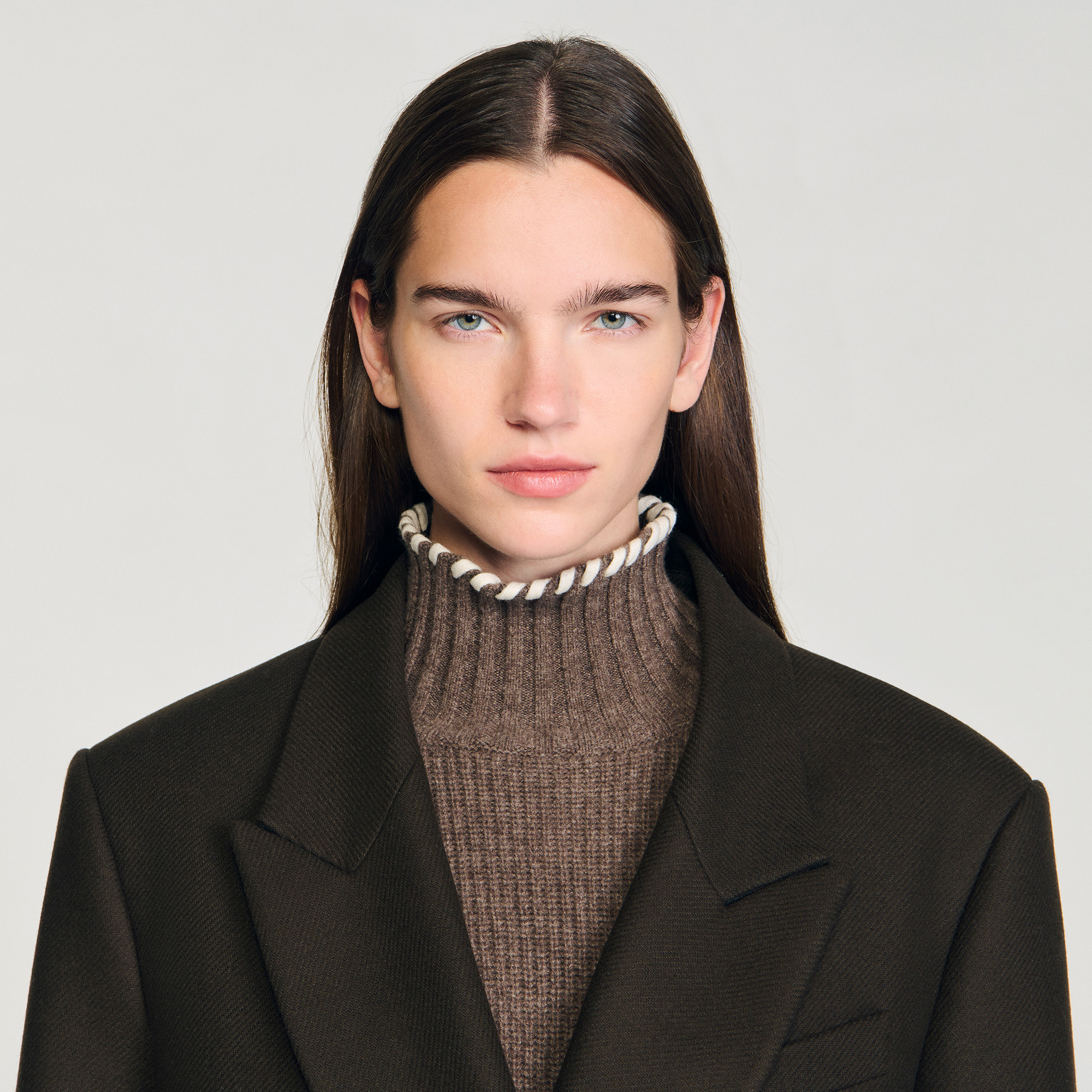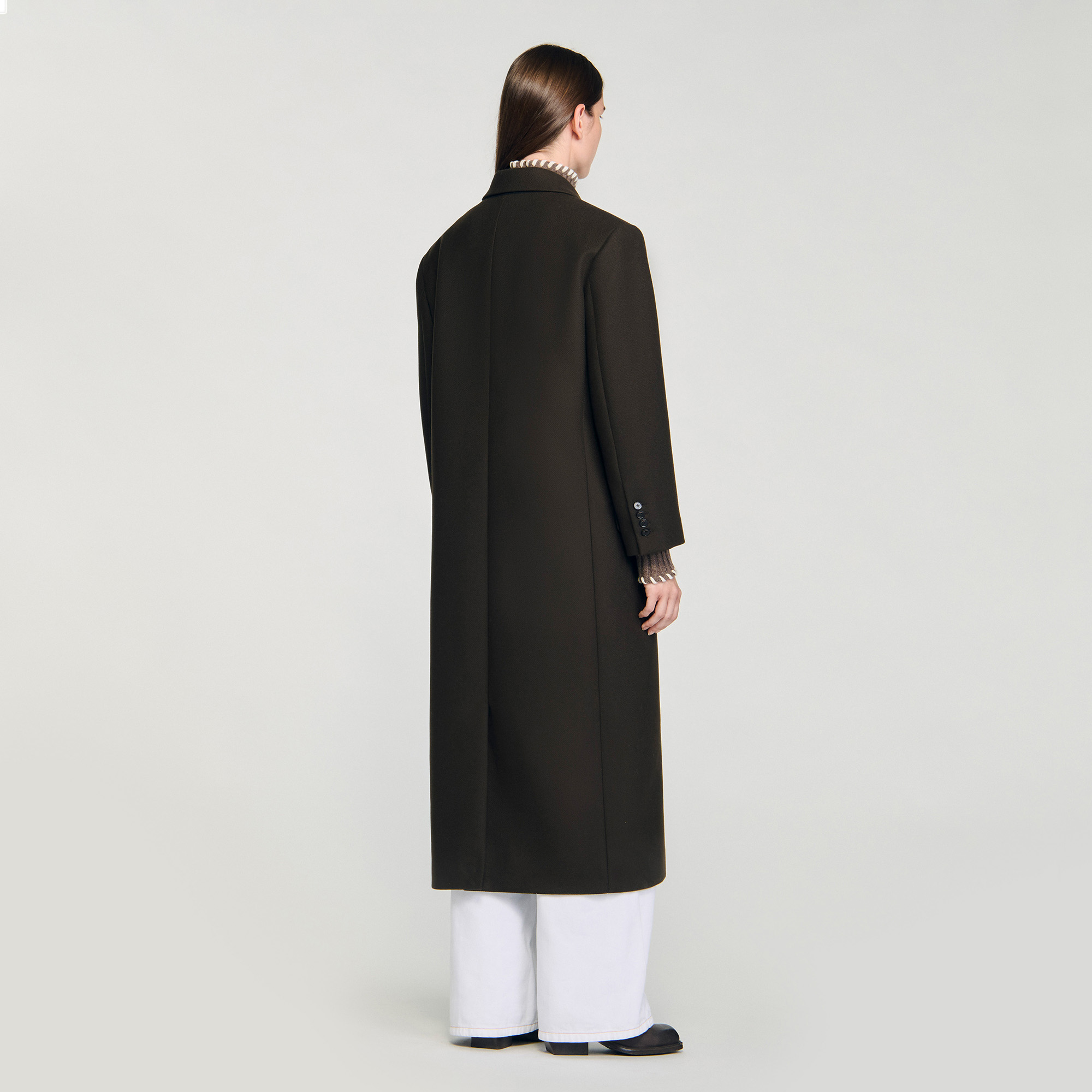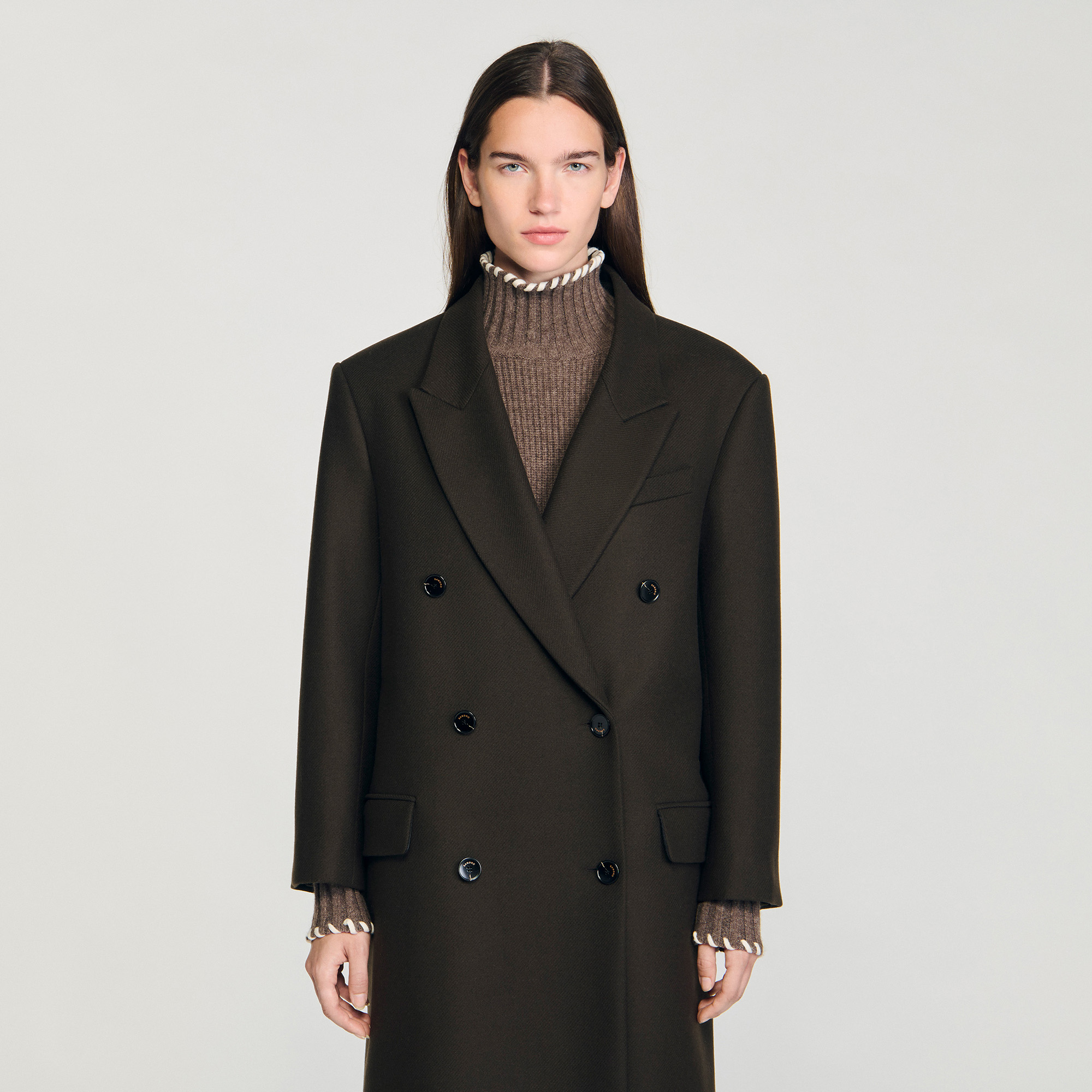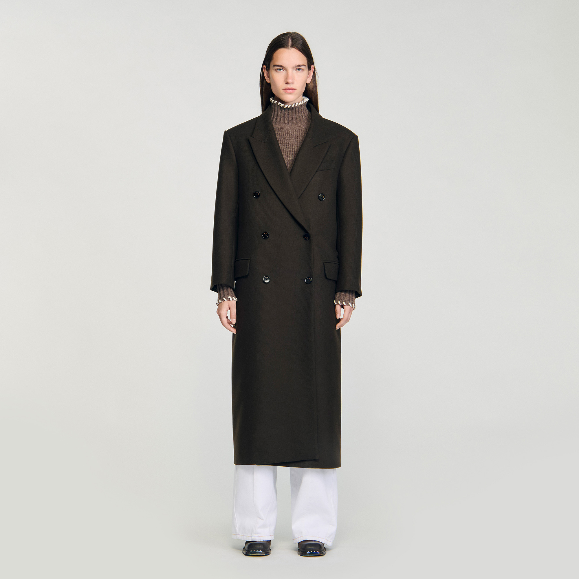 Sandro wool Long, oversized wool coat featuring a double-breasted design and long sleeves.