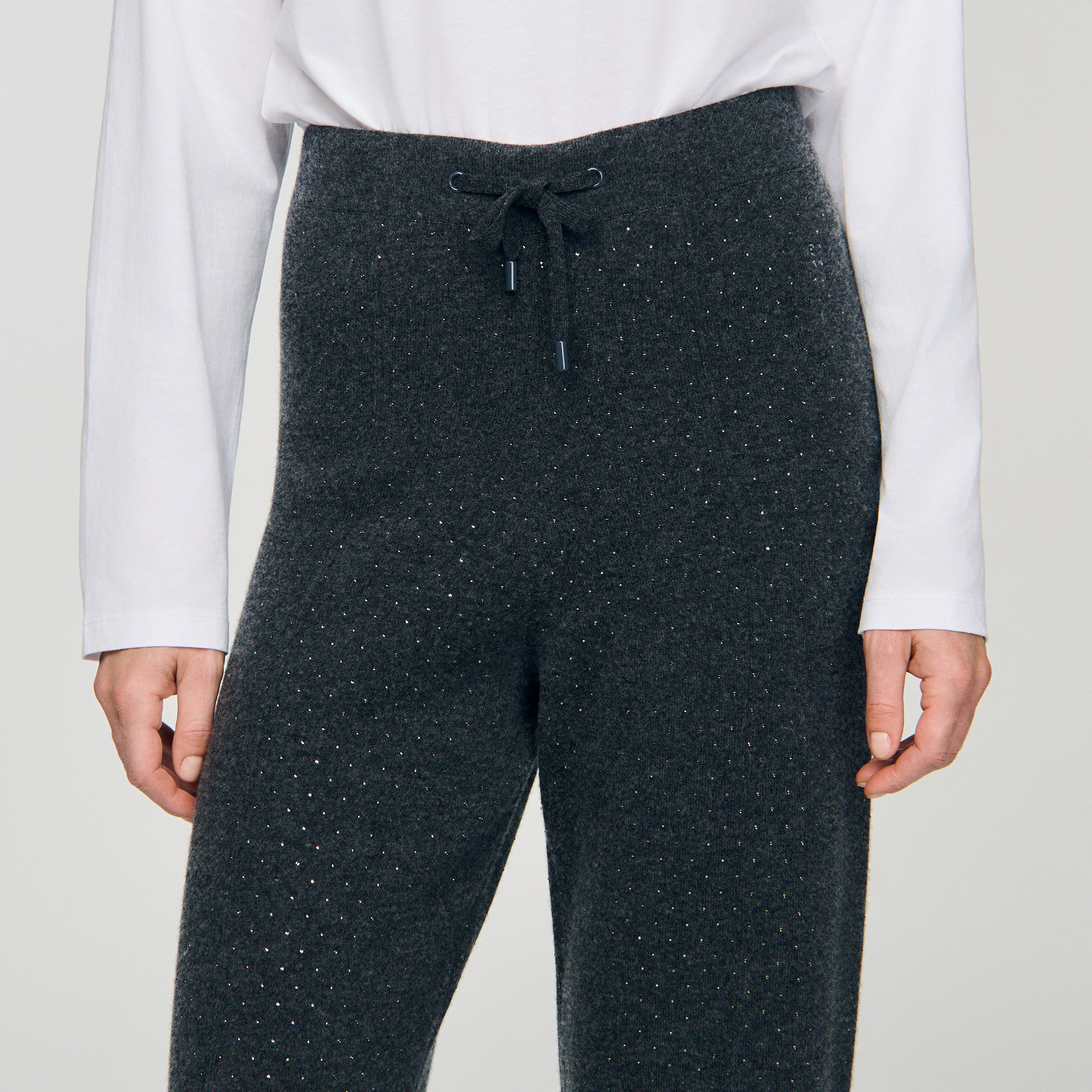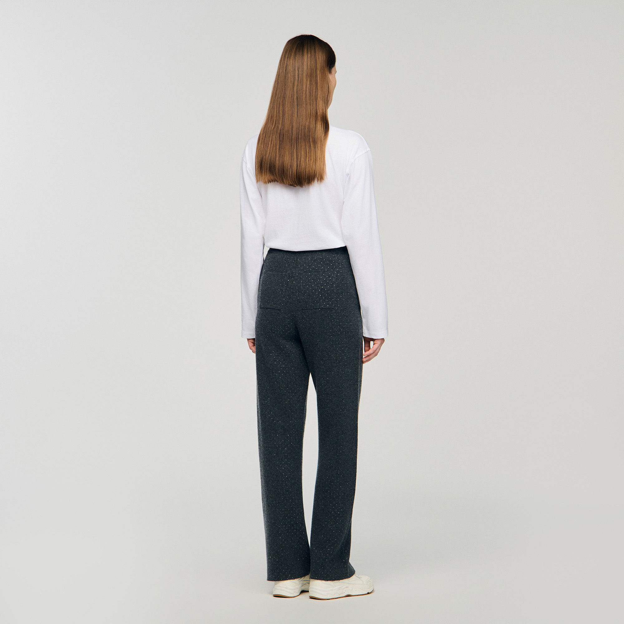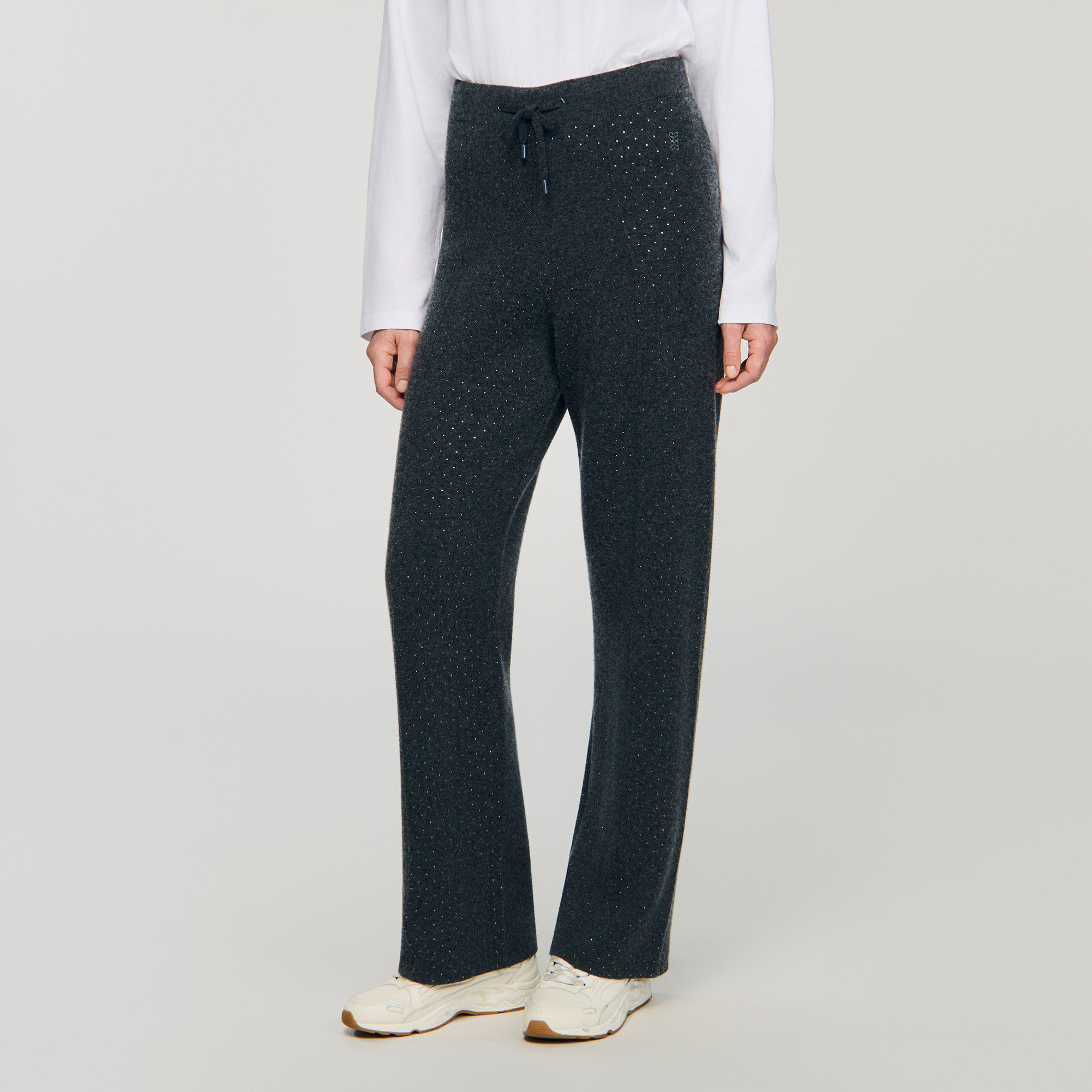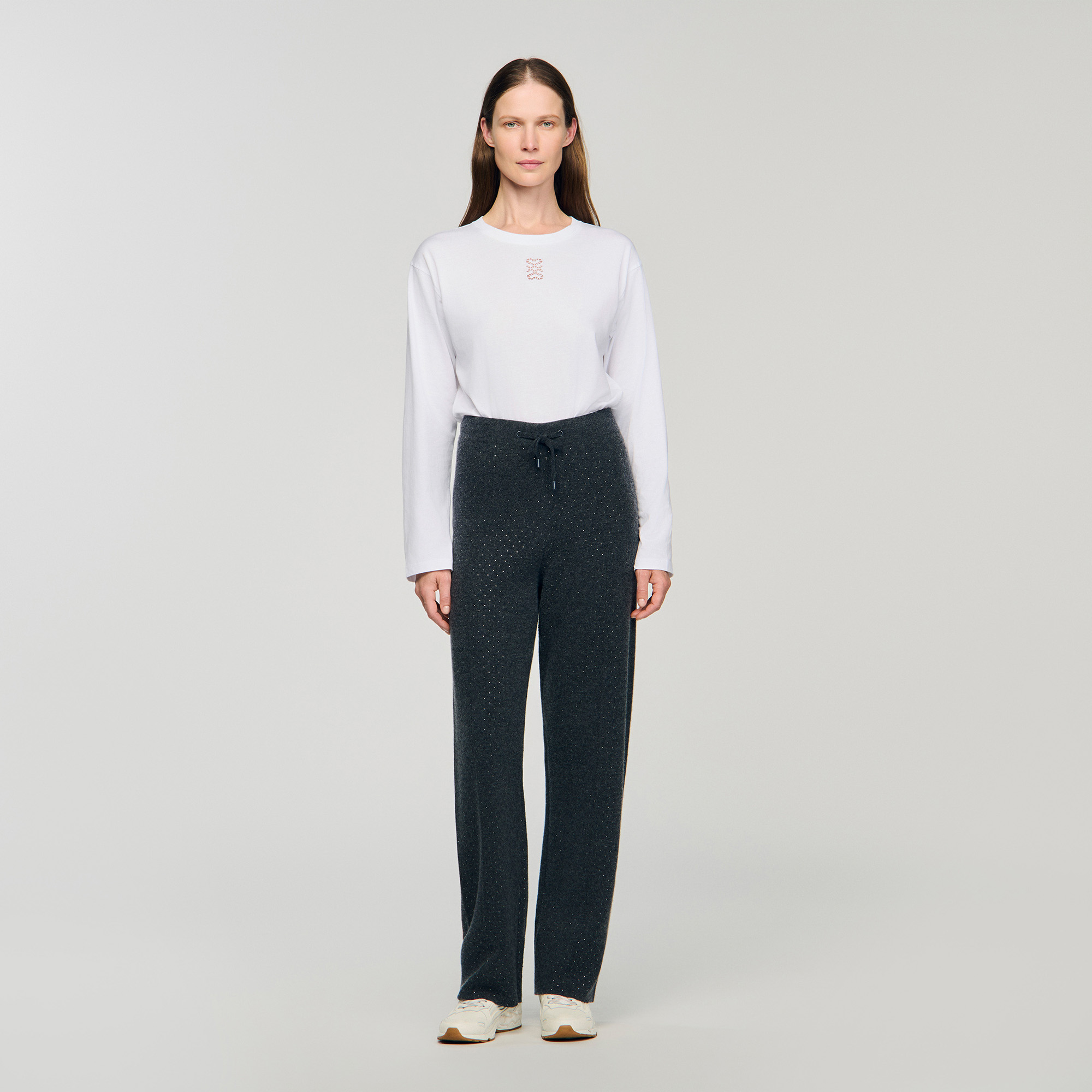 Sandro viscose Wide-leg trousers in knit fabric with rhinestones all over, drawstring waist and pintucks down the legs.