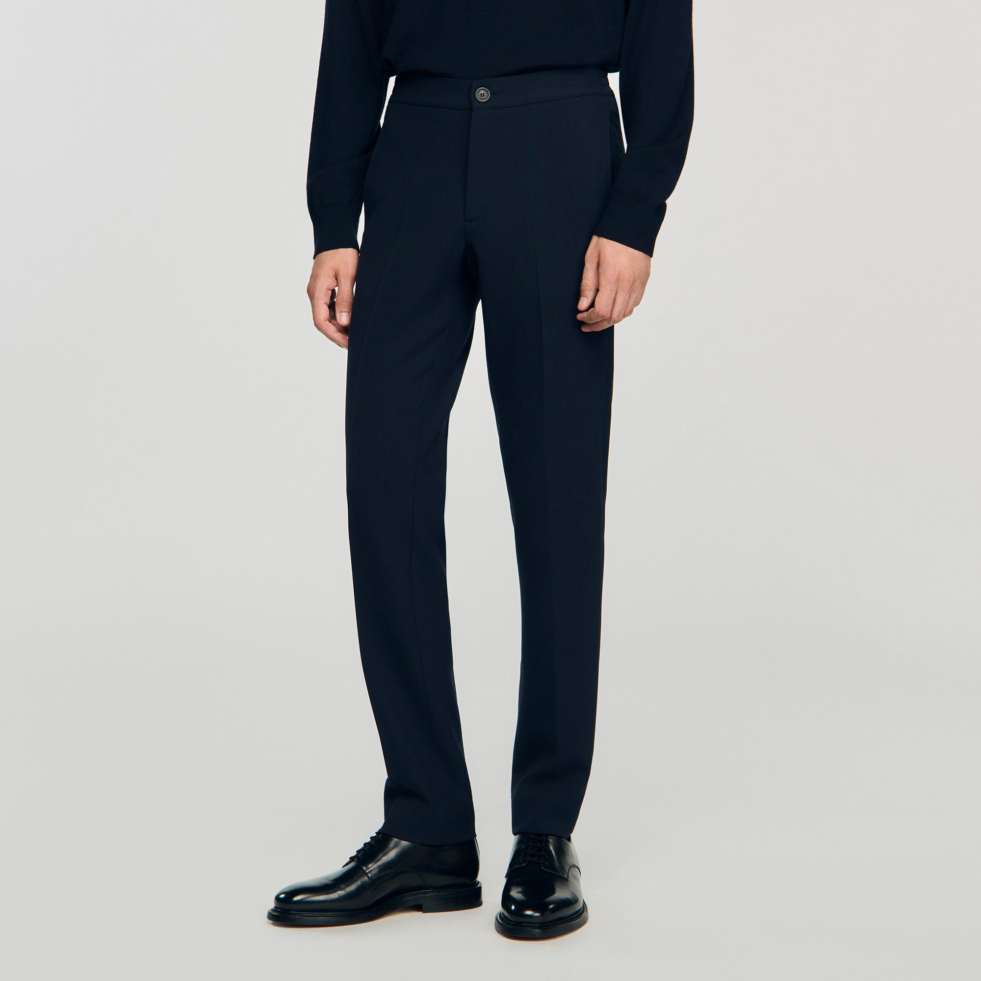 Sandro Men's trousers Jersey trousers Button fastening at the front Elasticated waist at the back Slanted pockets at the front Two piped pockets at the back Designed for a straight fit.