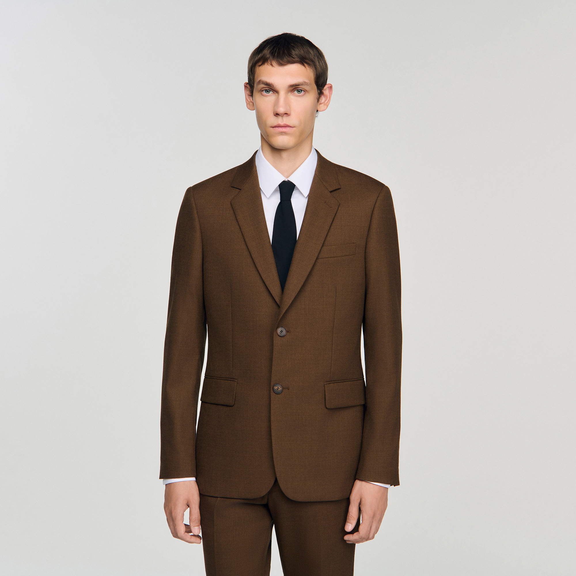 Sandro wool Classic wool suit jacket with long sleeves, buttoned cuffs, and button fastening.