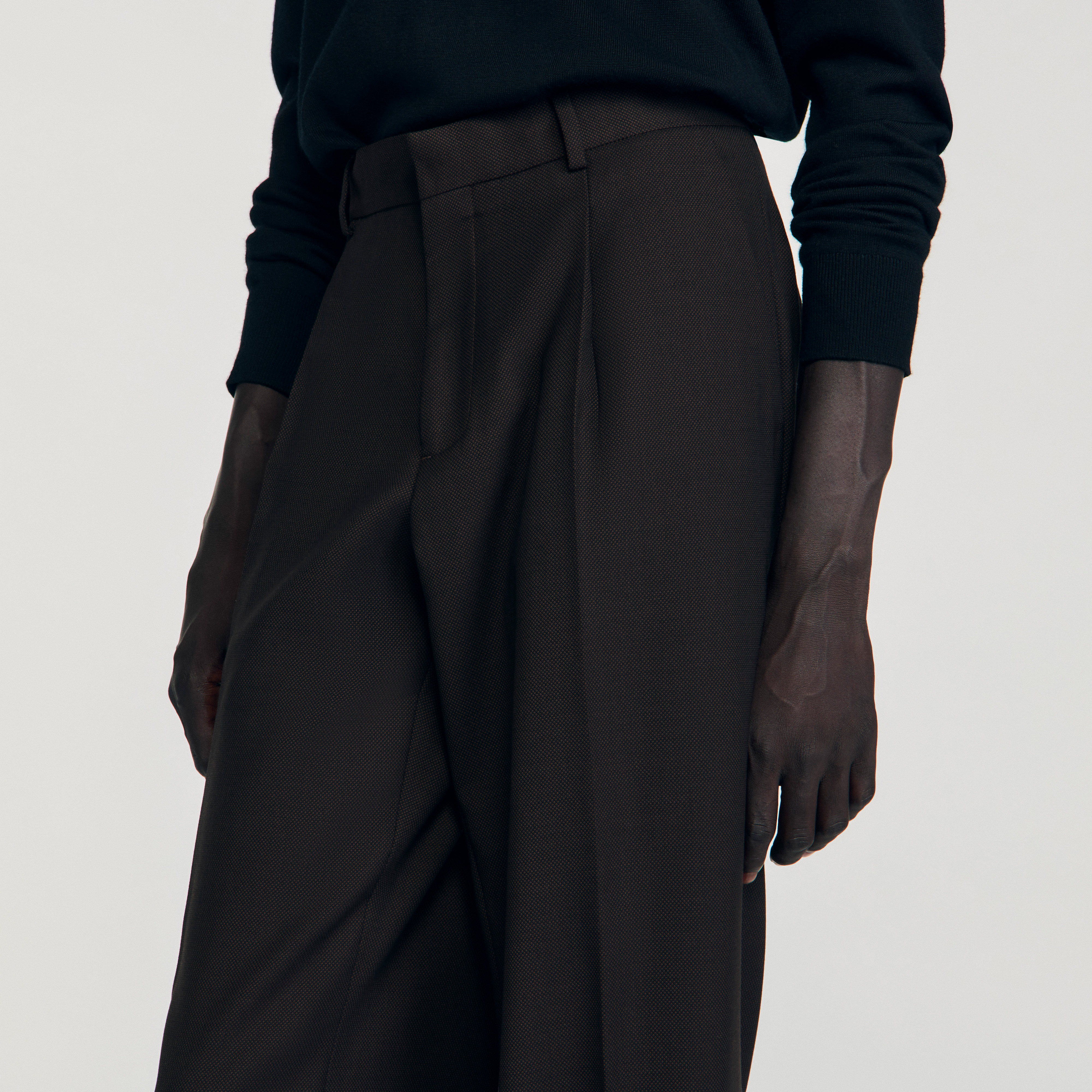 Sandro virgin Classic wool suit trousers with piped back pockets and a front zip fastening.