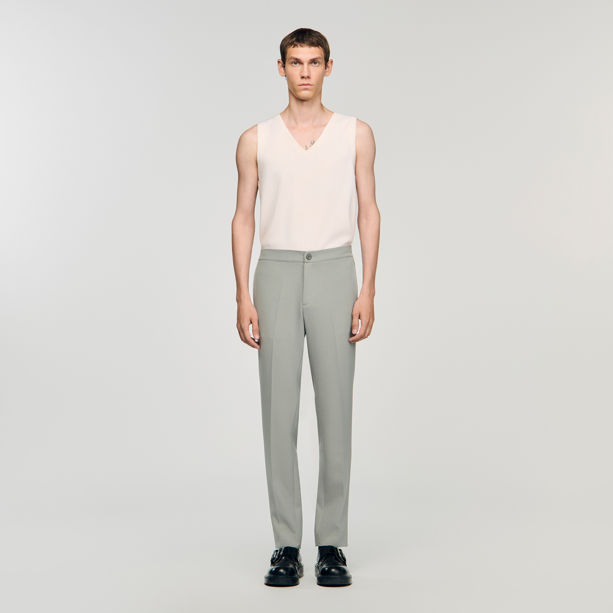 Sandro Men's trousers Jersey trousers Button fastening at the front Elasticated waist at the back Slanted pockets at the front Two piped pockets at the back Designed for a straight fit.