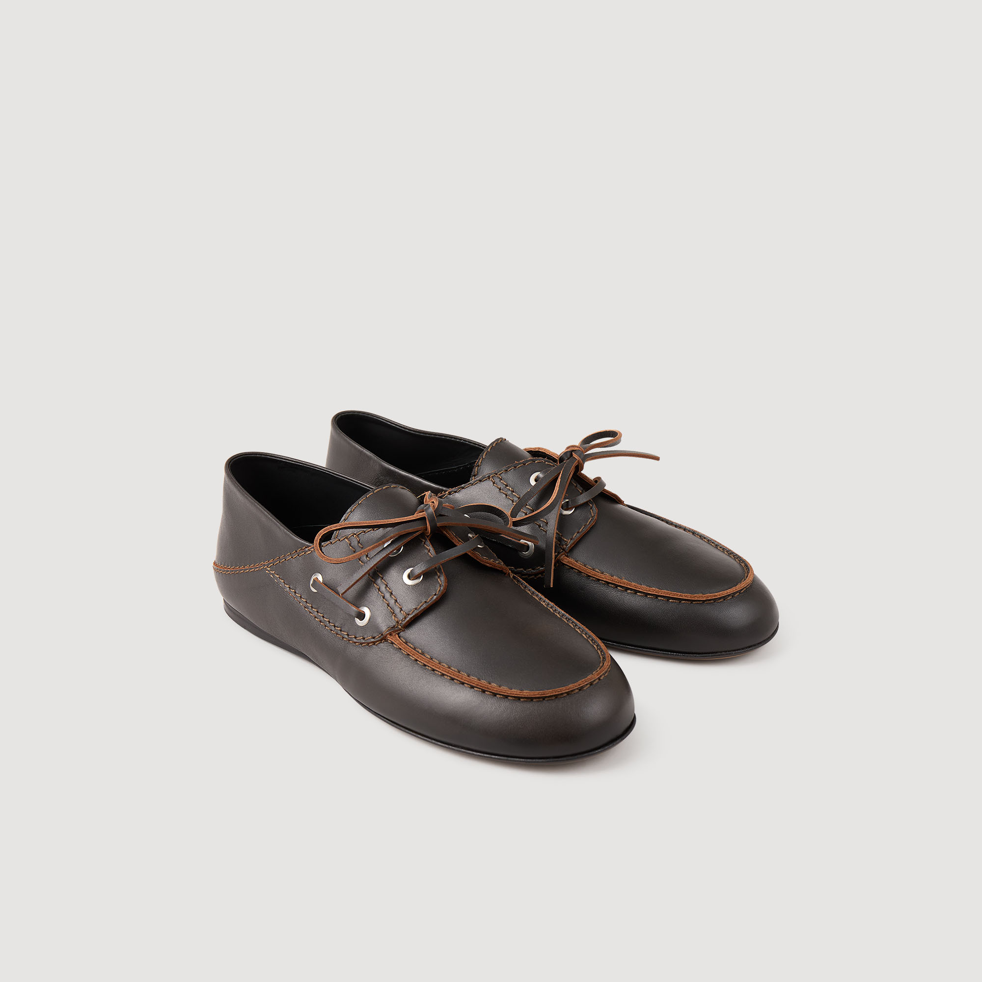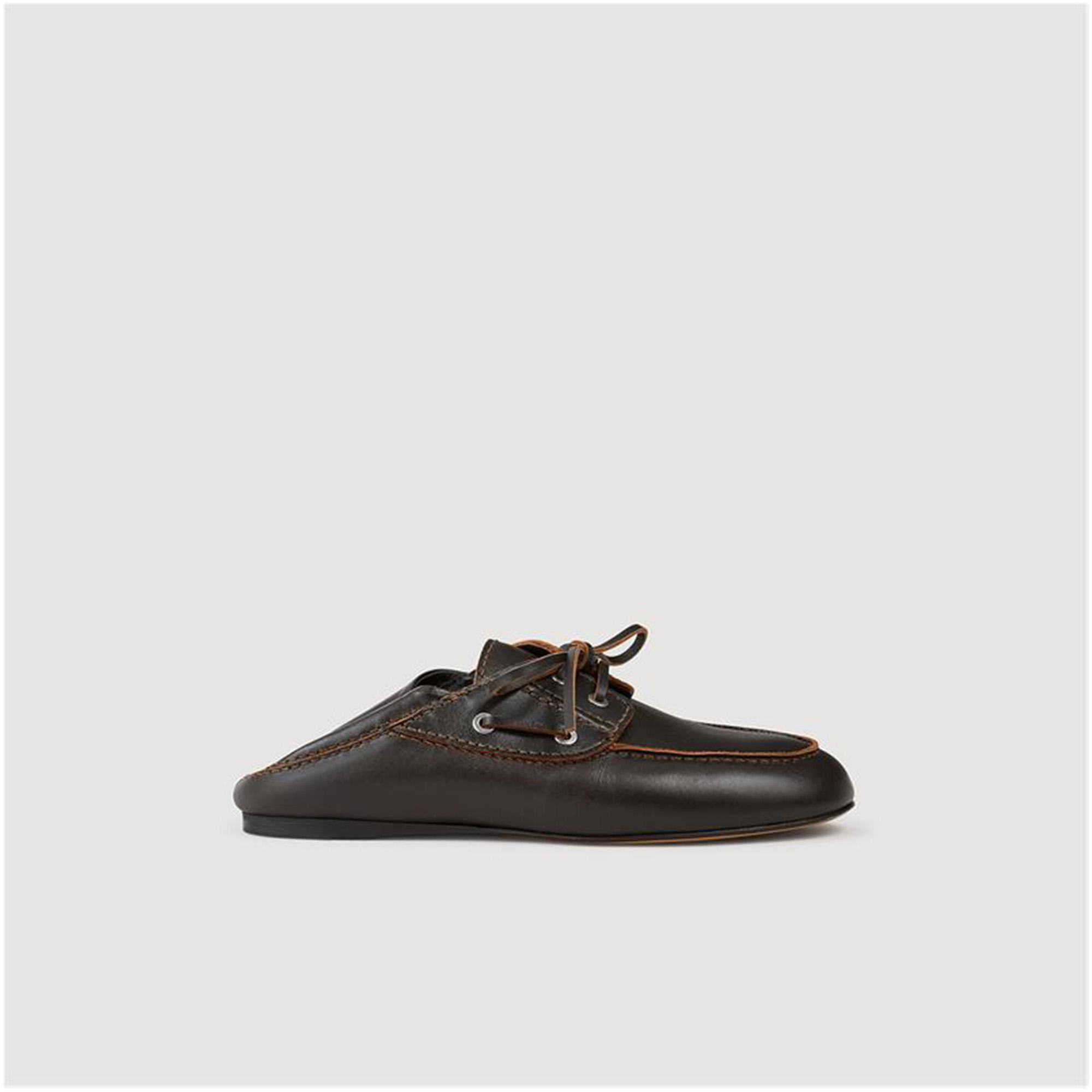 Sandro leather Plain leather boat shoe-style loafers with decorative laces and folding heel counter so they fit like mules.