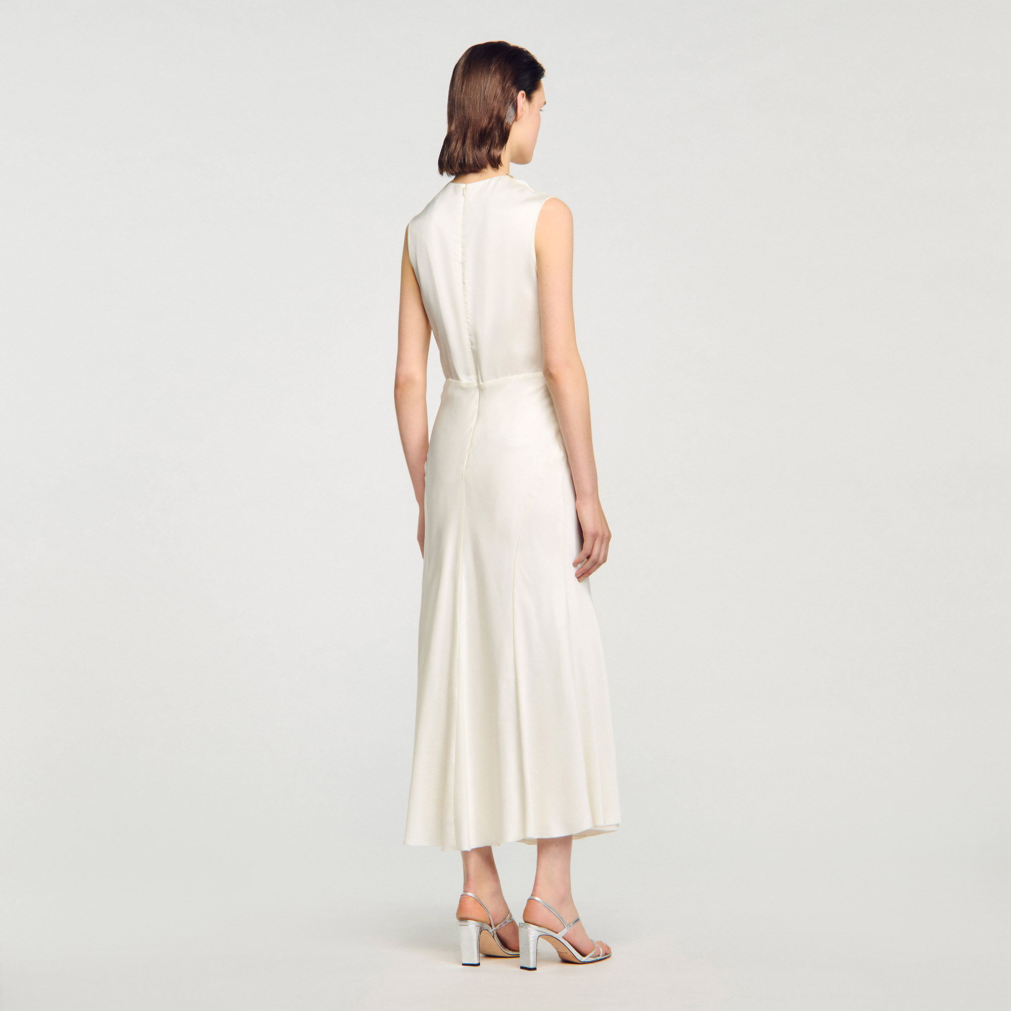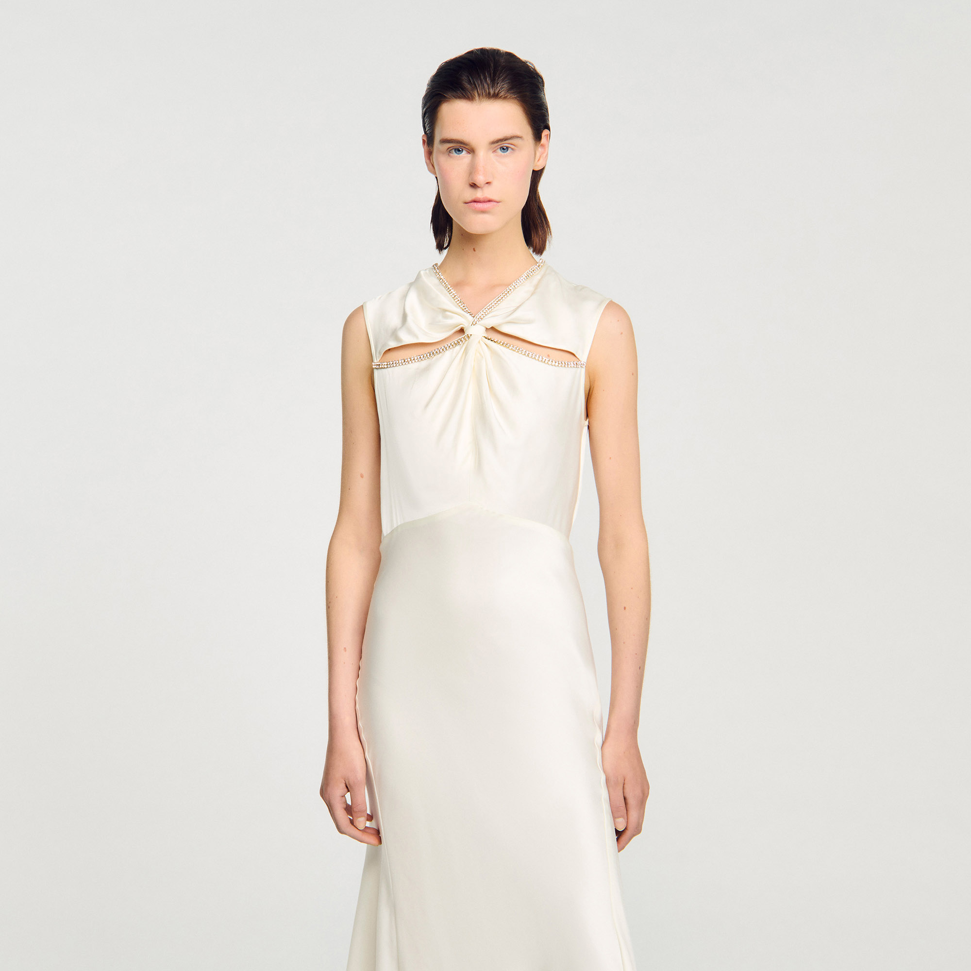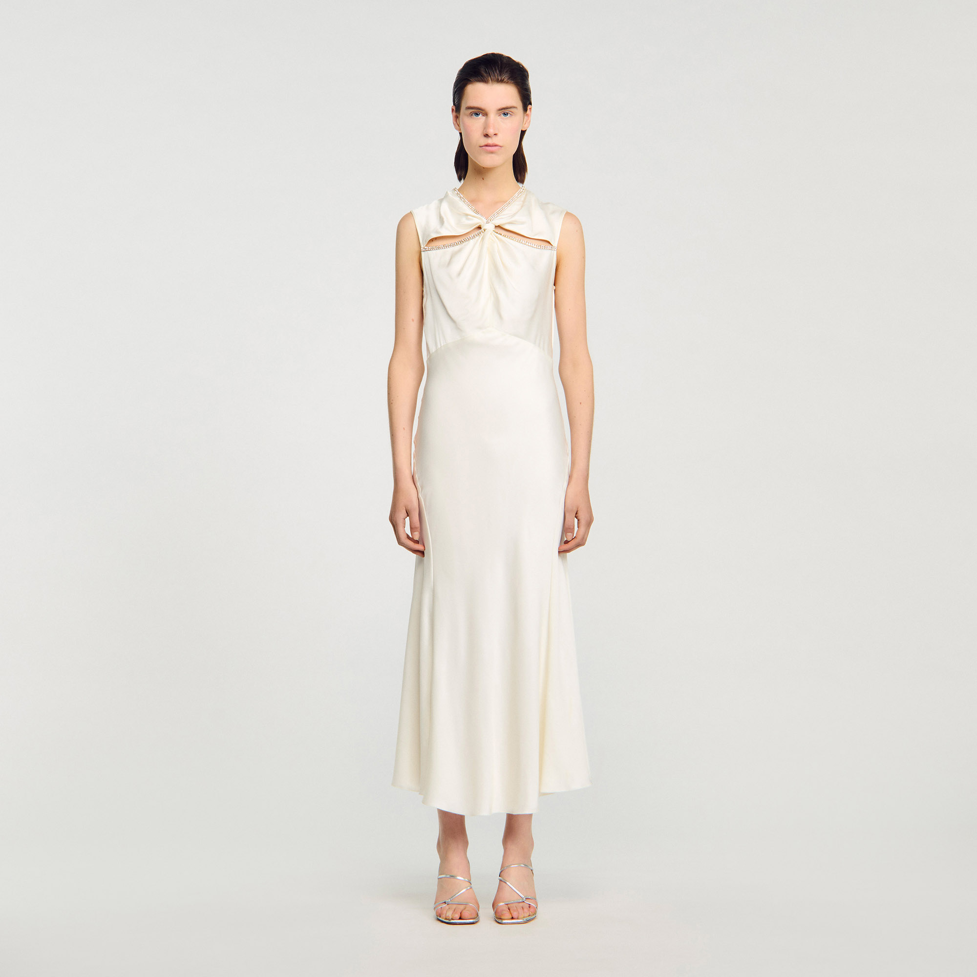 Sandro Women's maxi satin-effect dress Crossover neckline with rhinestone trim Cut-out at the neckline Sleeveless Back zip fastening Lined Designed for a loose fit.