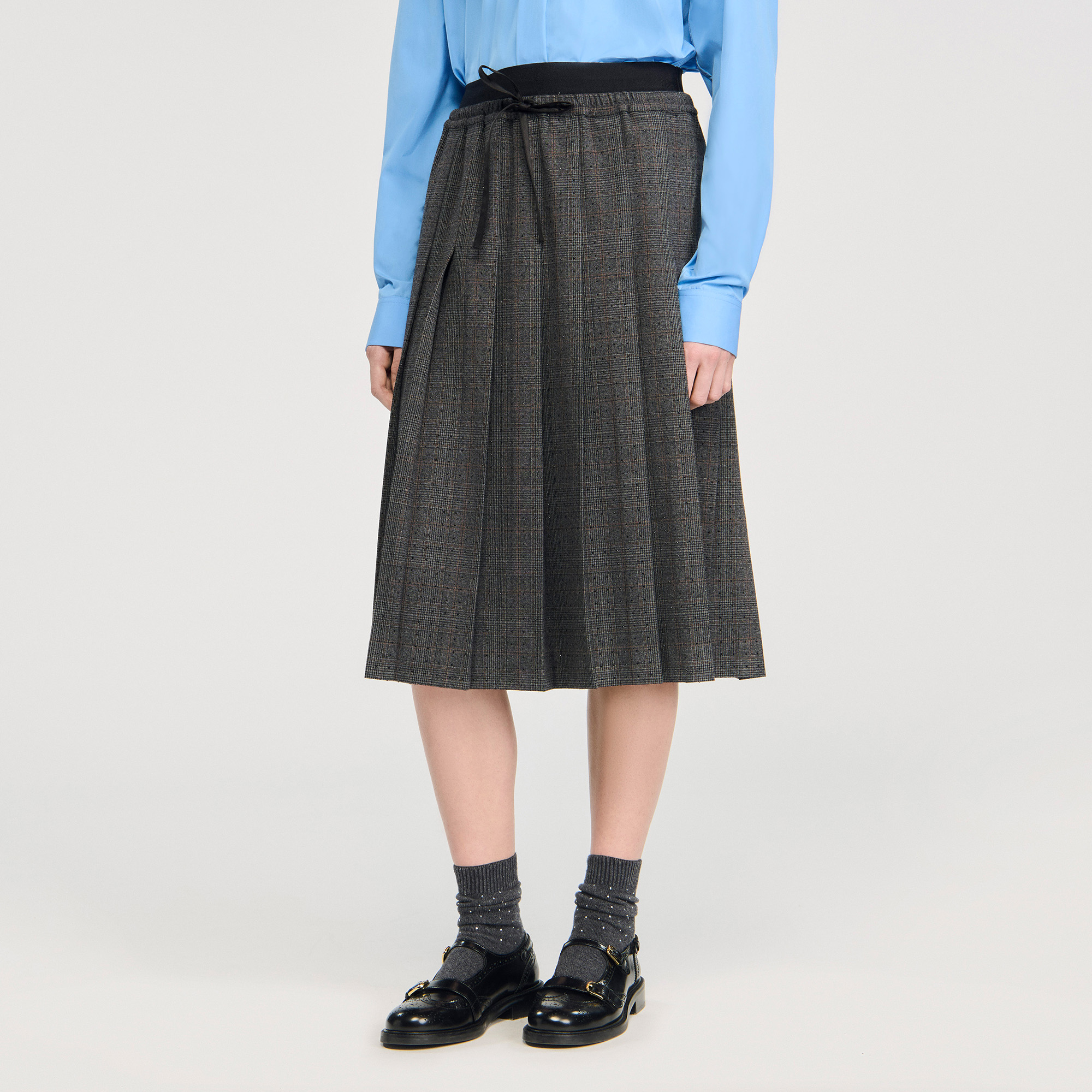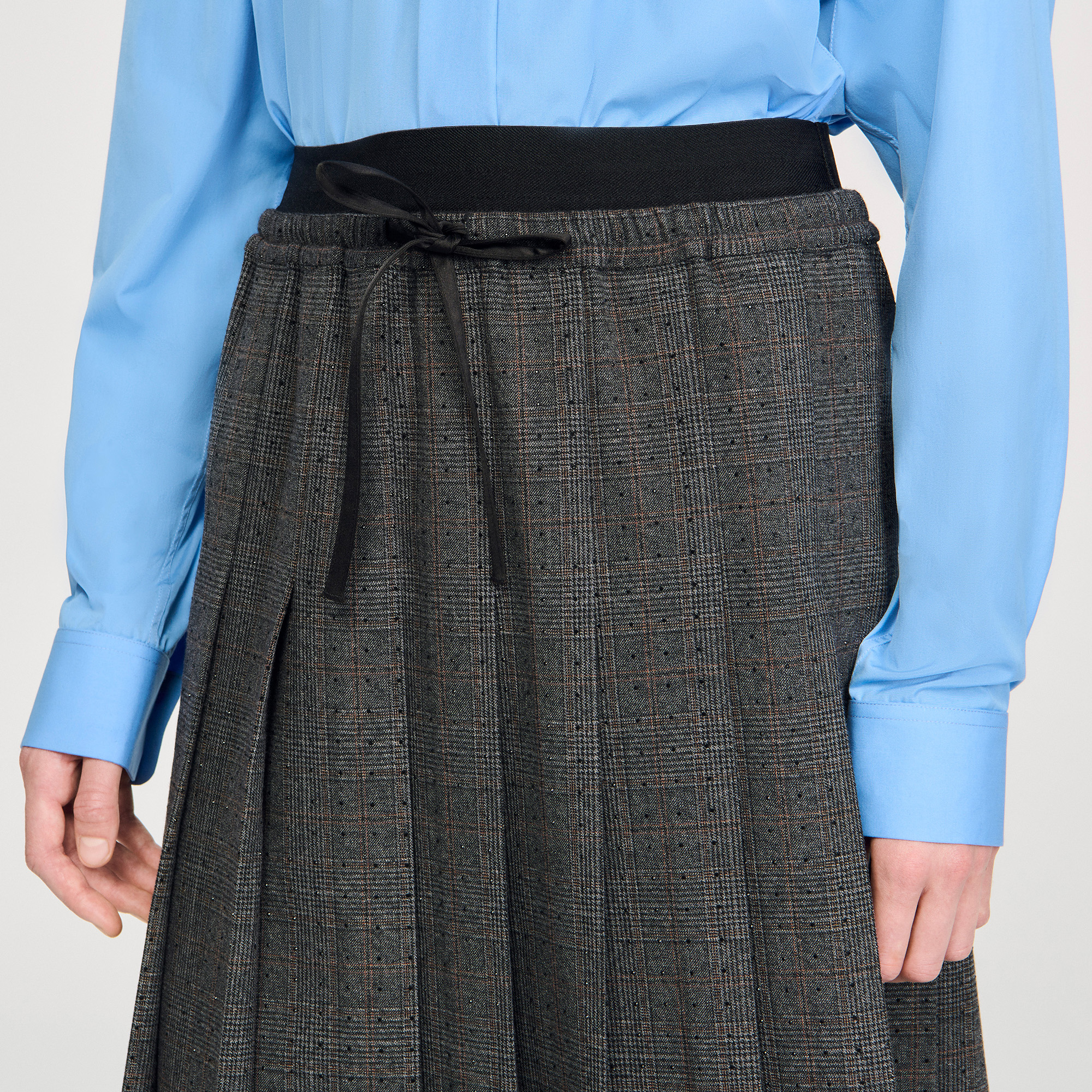 Sandro Women's pleated midi skirt Checks and rhinestones Elasticated waist Drawstring Length is approx.