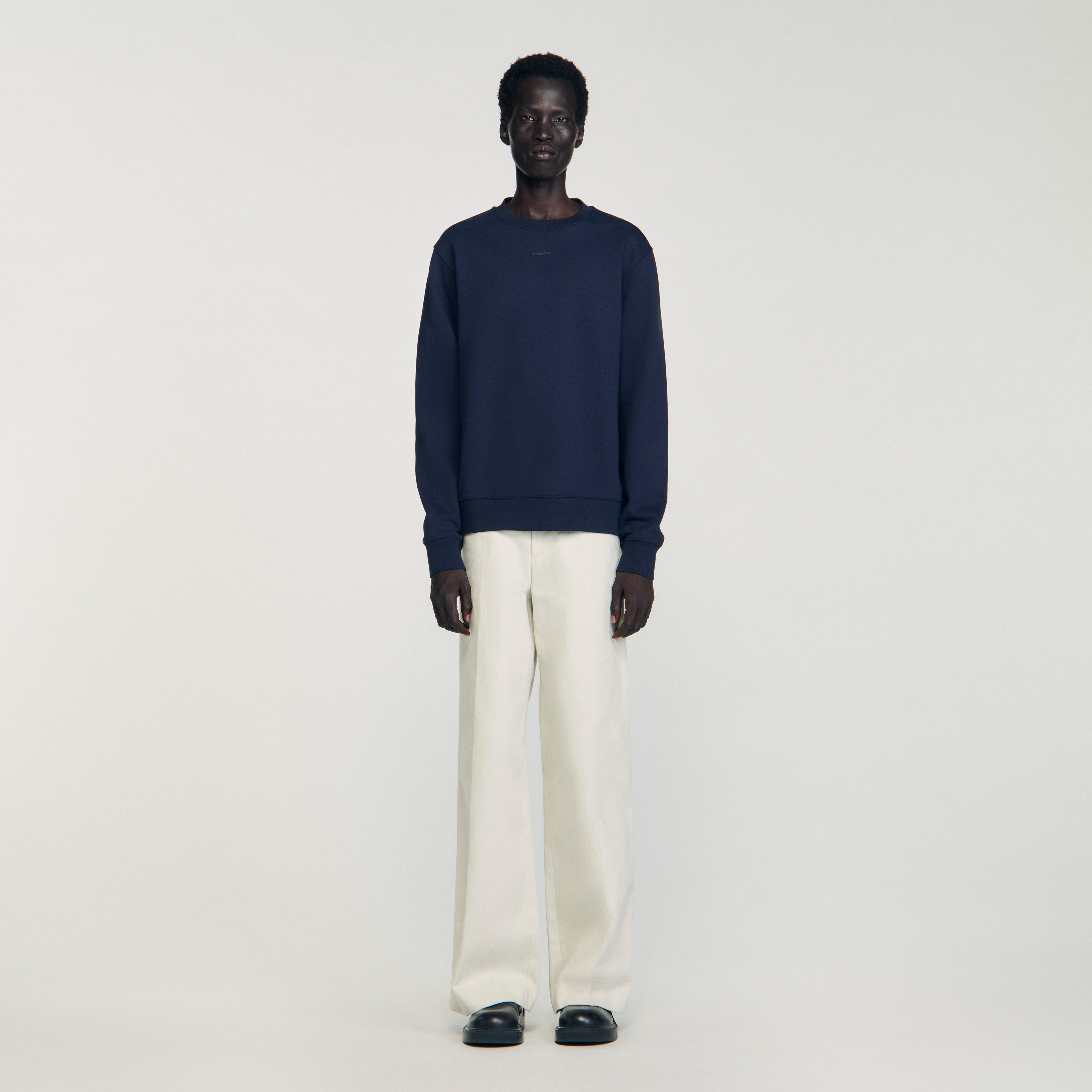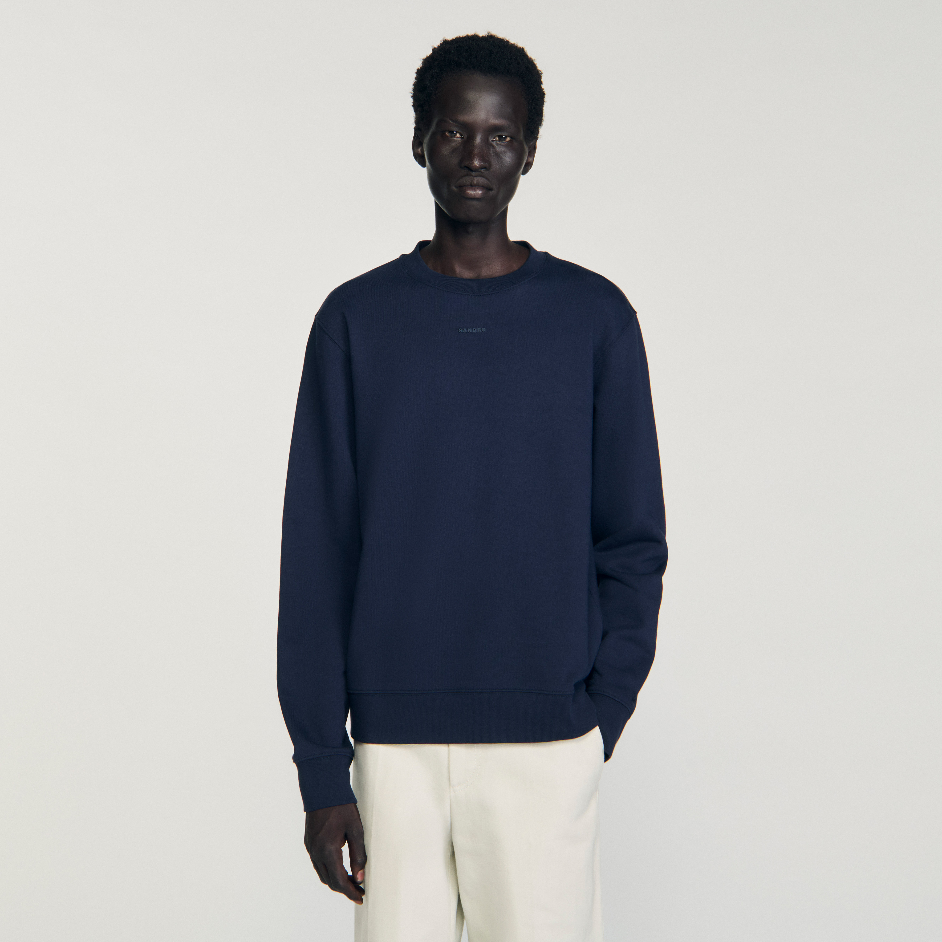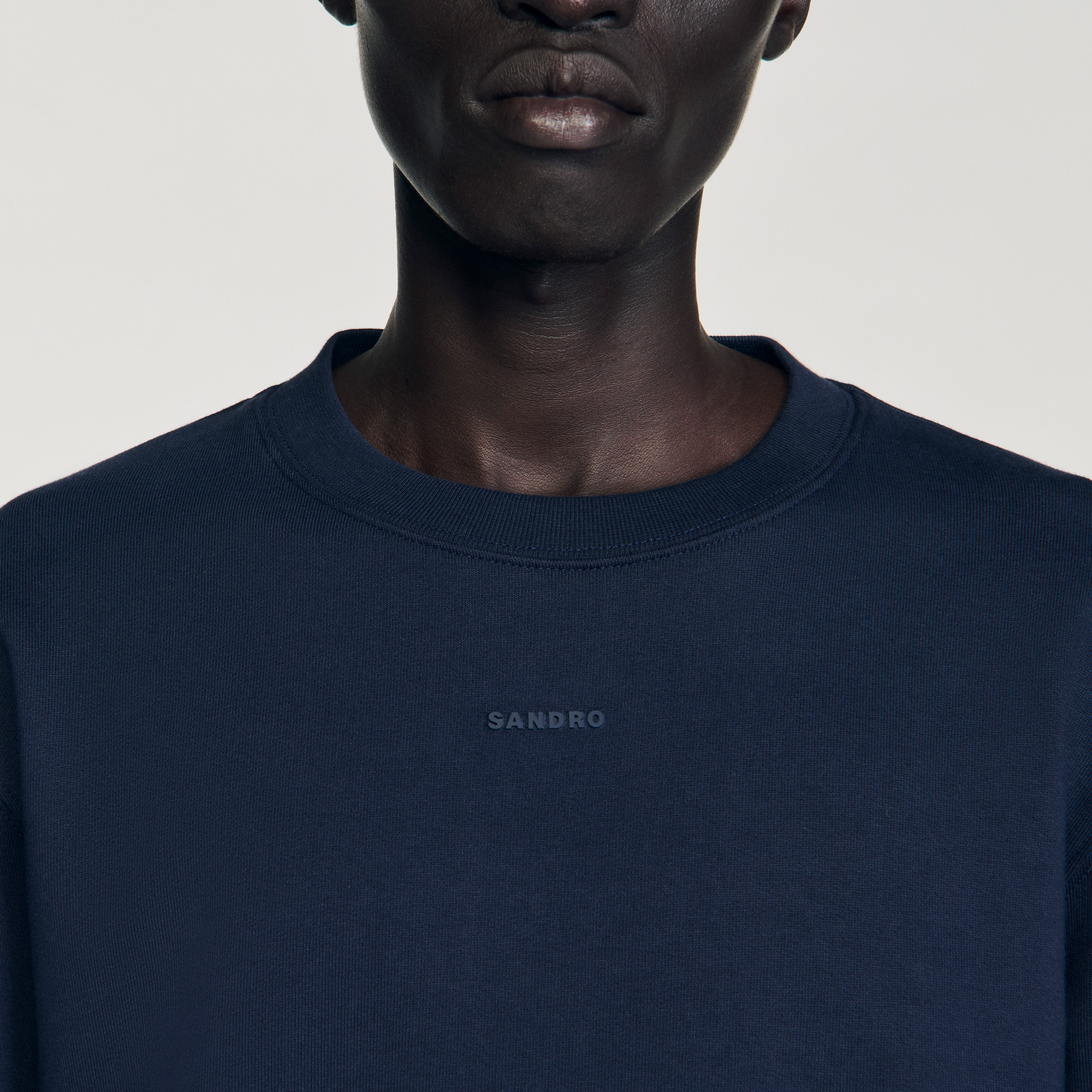 Sandro Men's non-brushed fleece sweatshirt Round neck Long sleeves Logo in rubber Ribbed trim True to size.