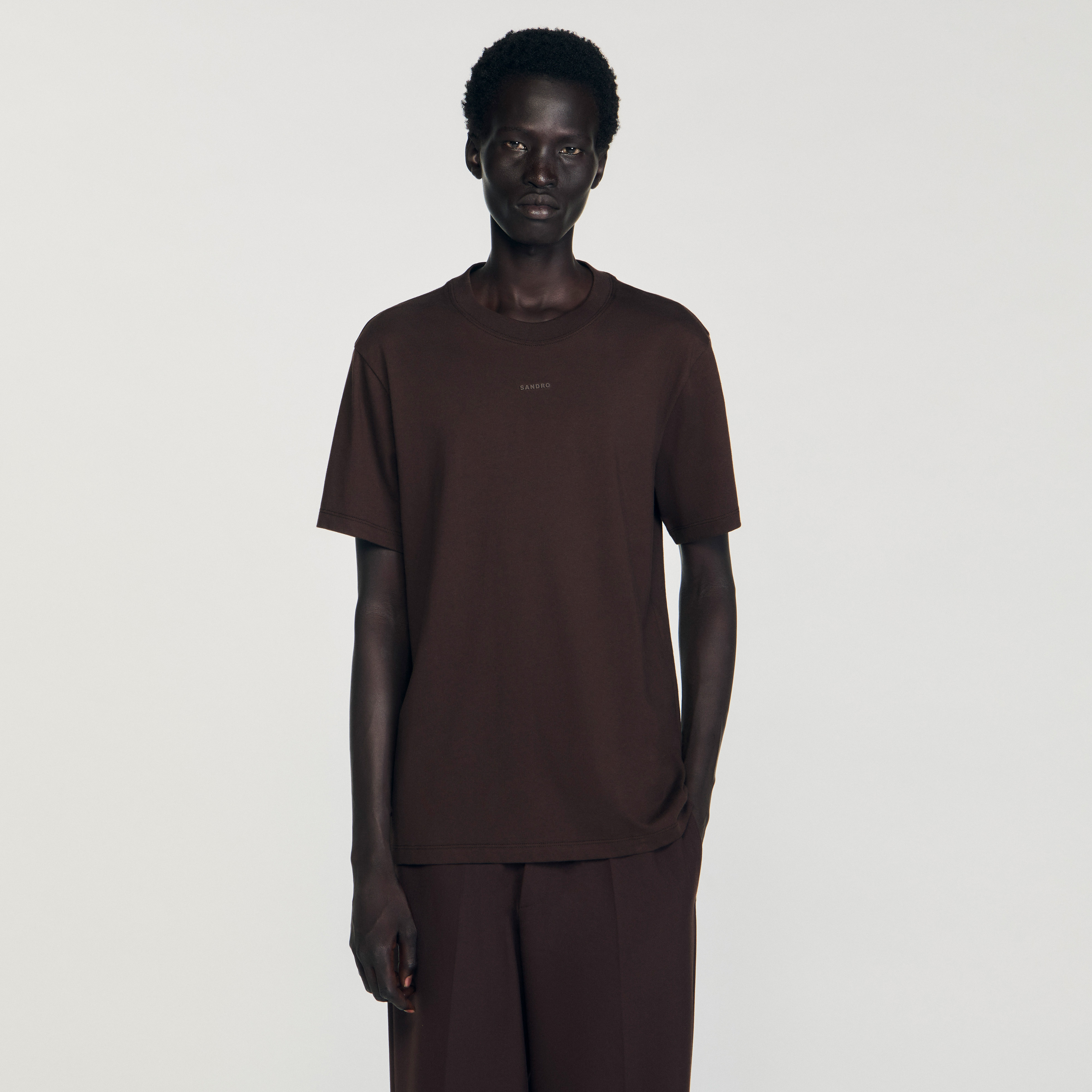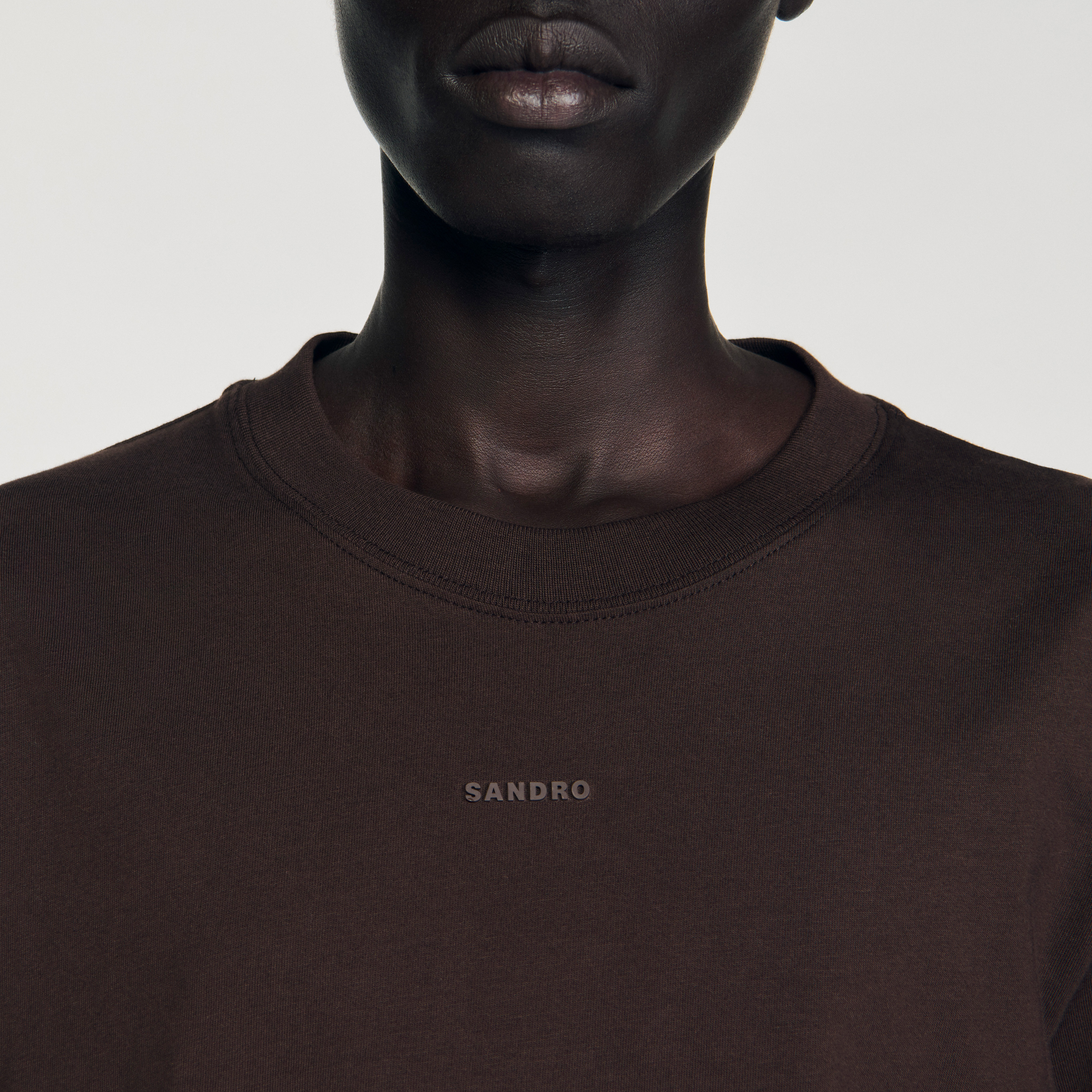 Sandro cotton Short-sleeved, round-neck cotton T-shirt with rubberized Sandro logo.