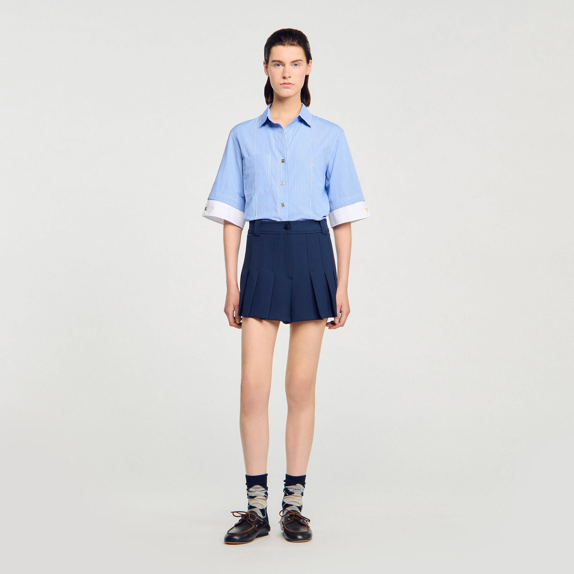Sandro Women's pleated tailored shorts Pressed and topstitched pleats High waist Belt loops Zip fastening with press-stud Designed for a flared fit.