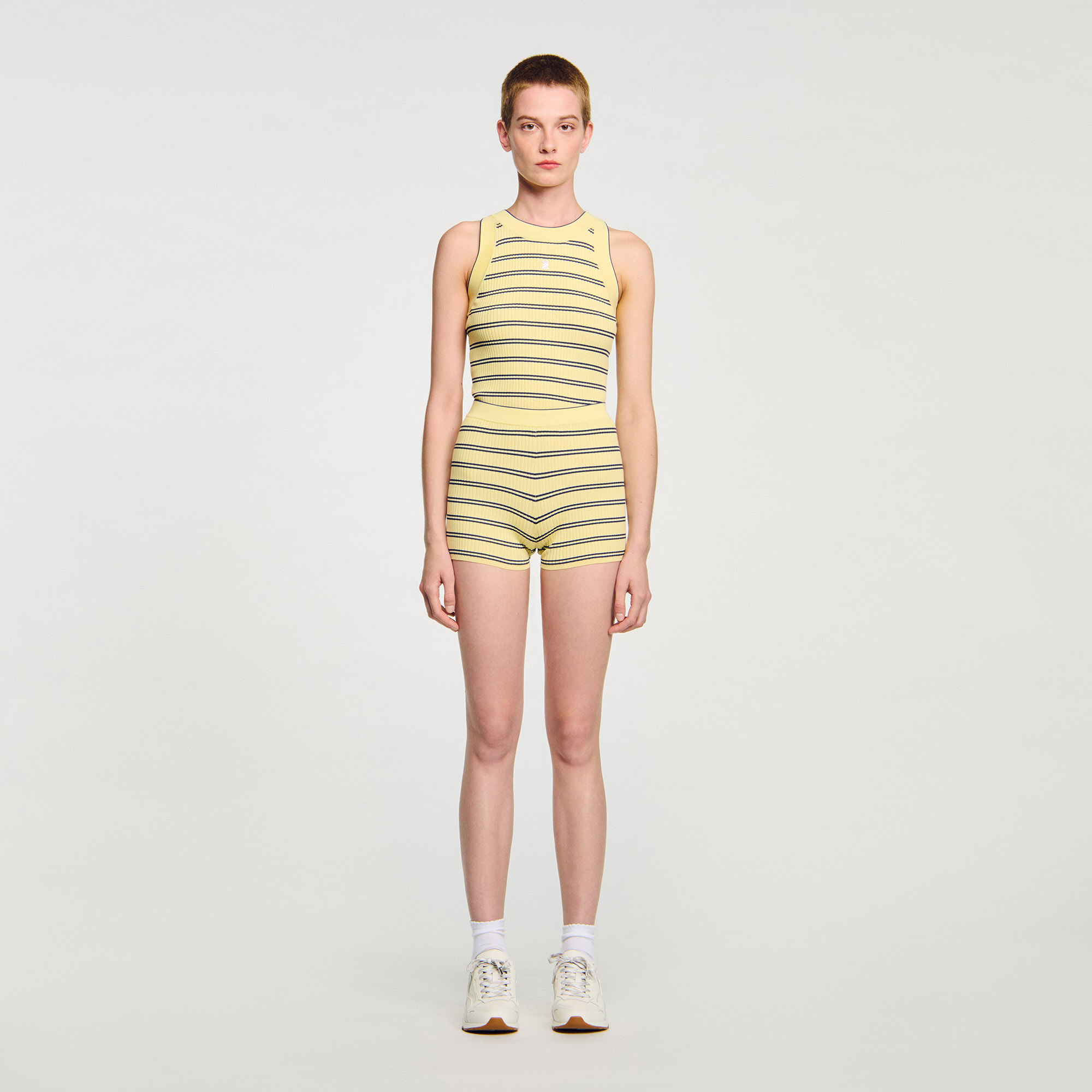 Sandro Women's knit shorts Stripes Mid-rise waist Designed for a slim fit.