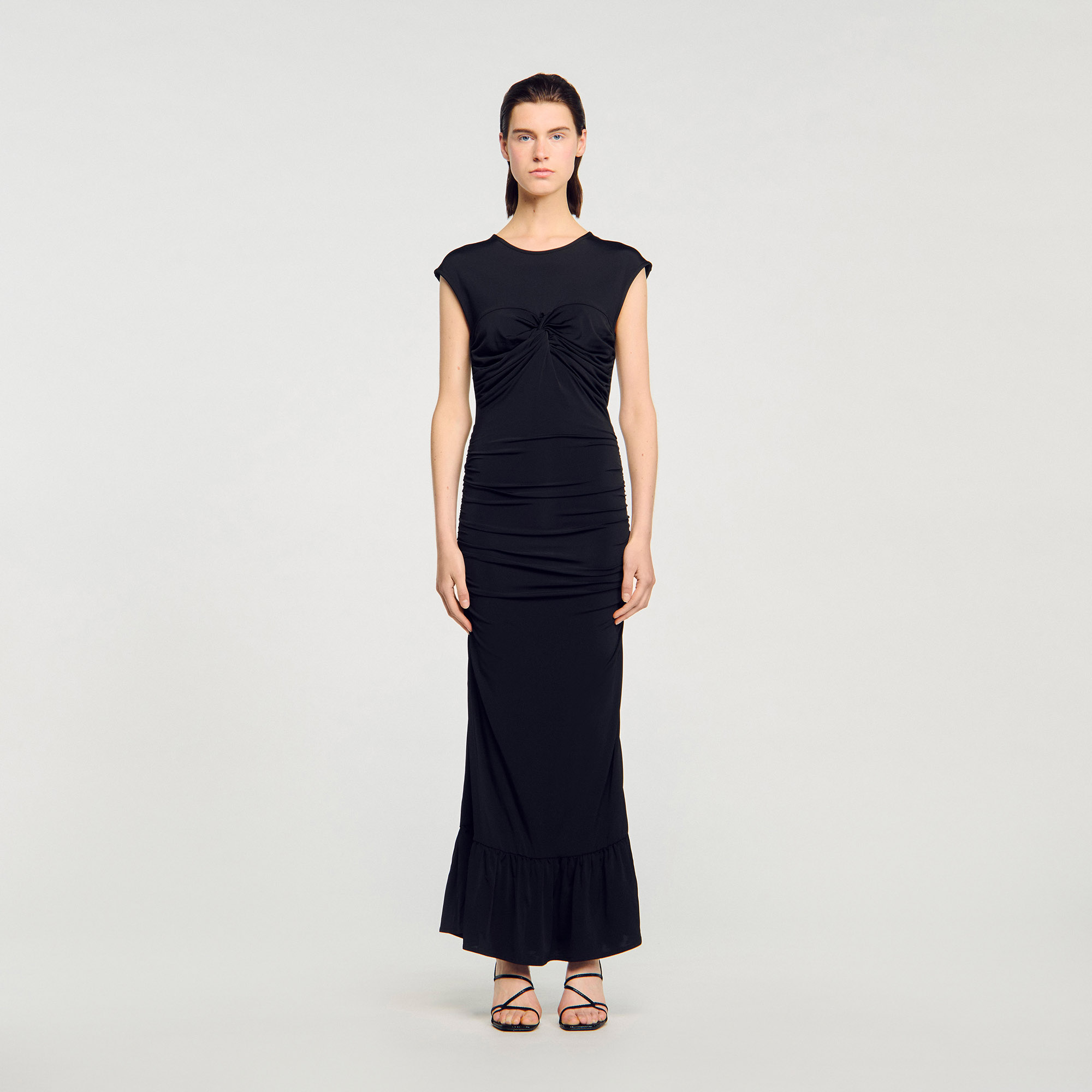 Sandro Women's maxi dress Round neck Sleeveless Draped effect at the bust Wide ruffle at the bottom Designed for a slim fit.