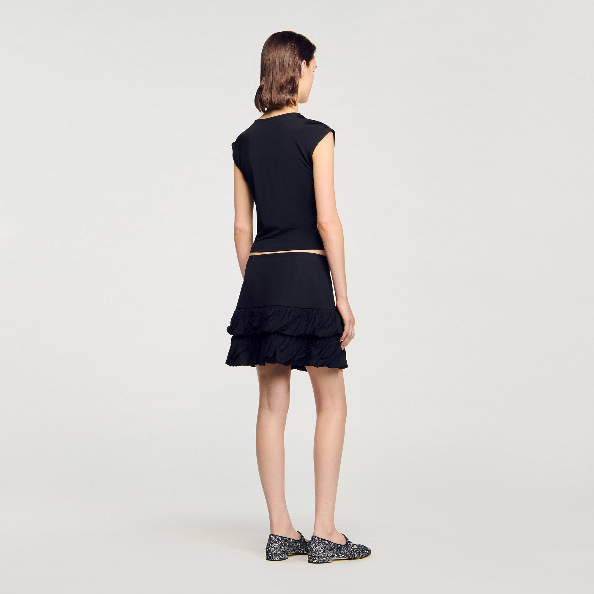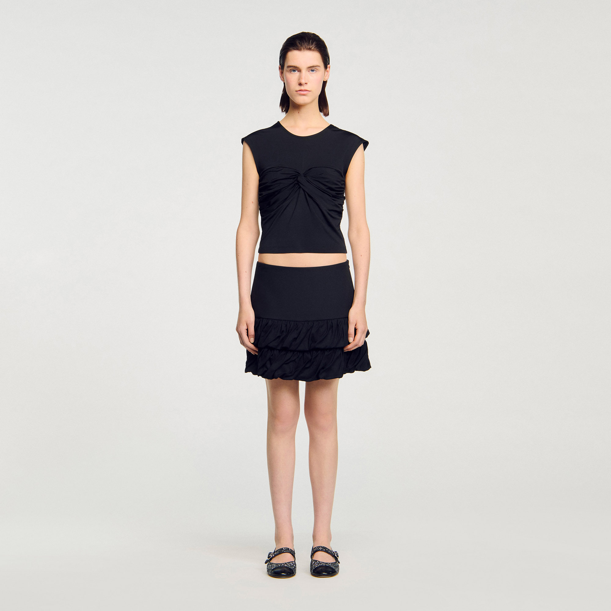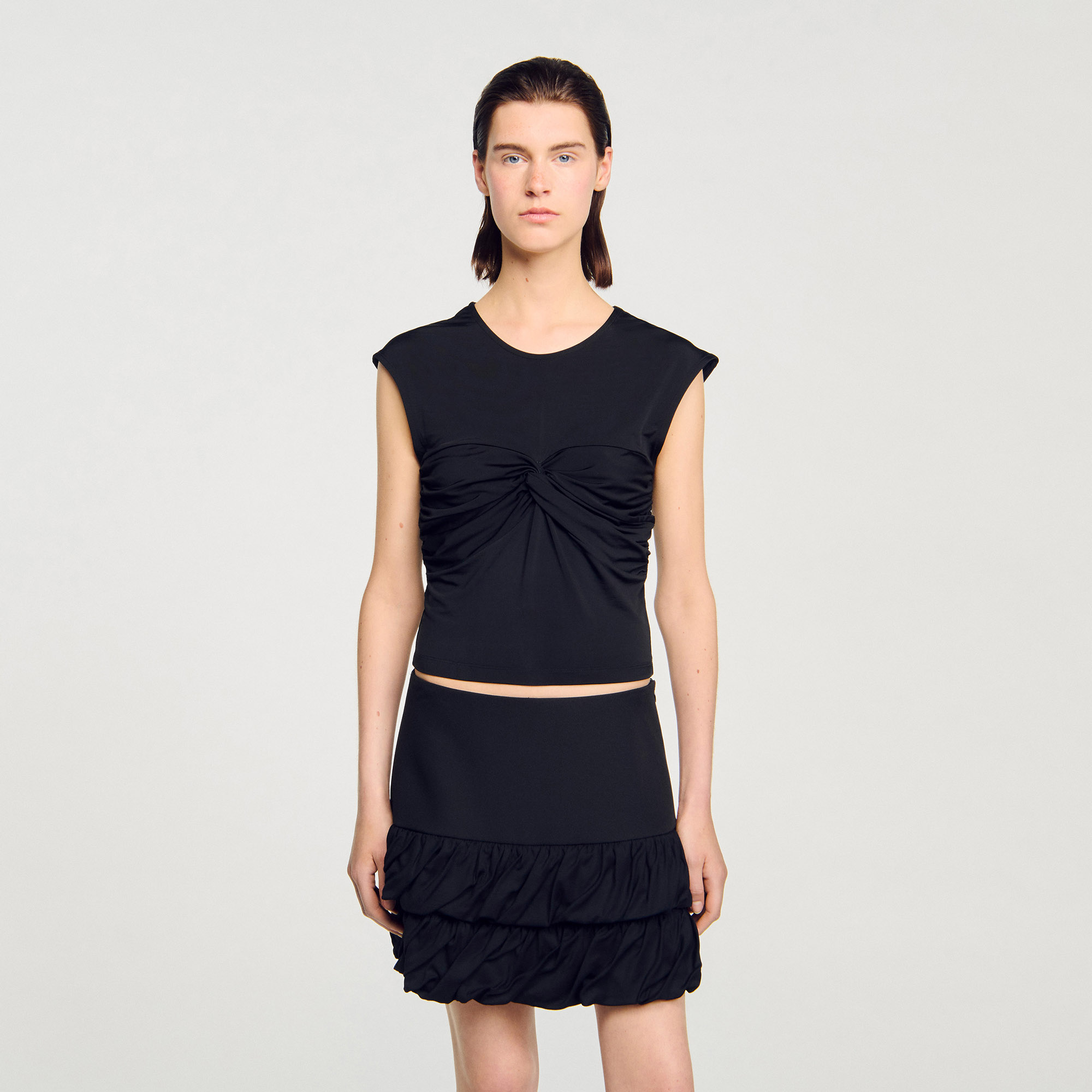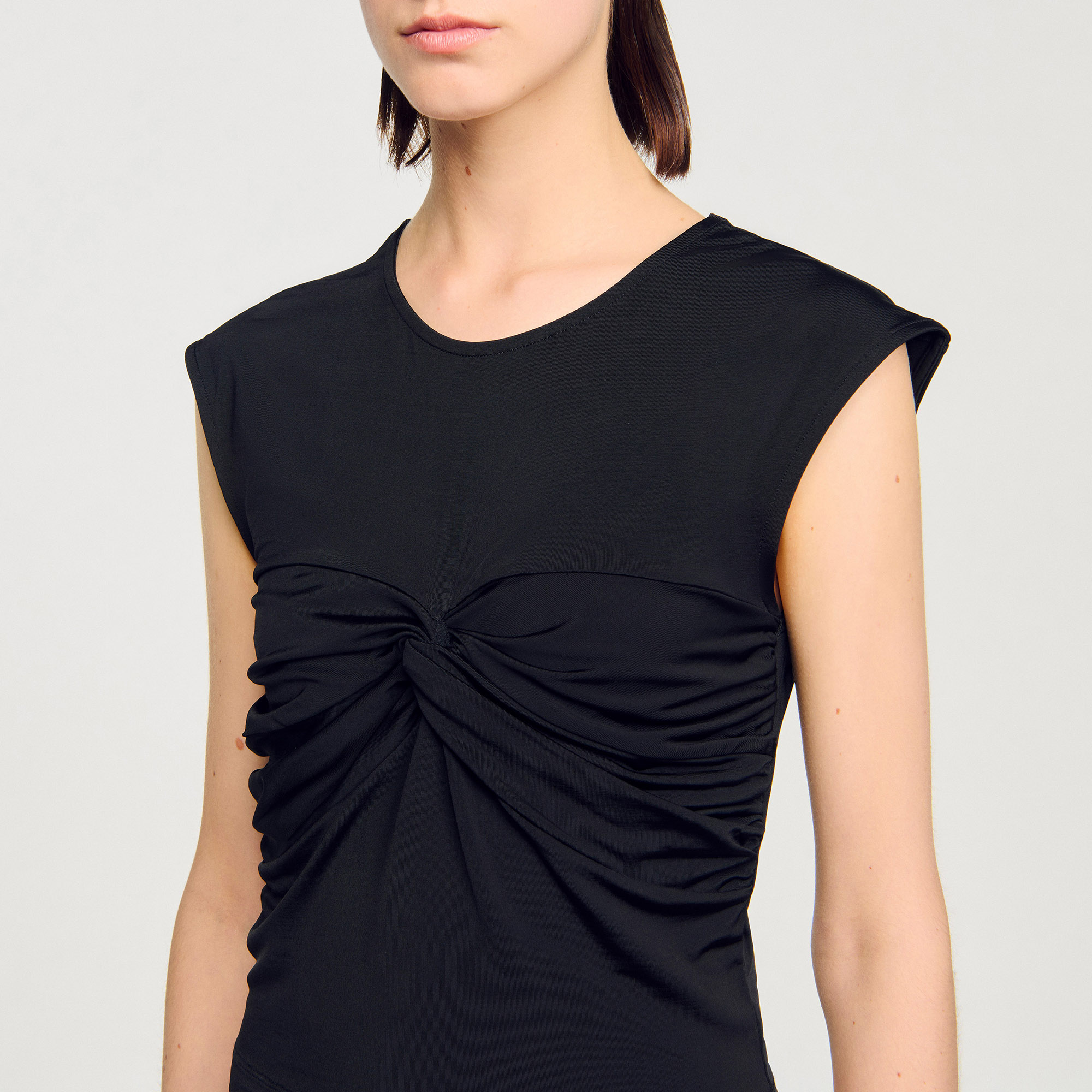 Sandro viscose Sleeveless T-shirt with draped and twisted chest, featuring a round neck and fine knit.