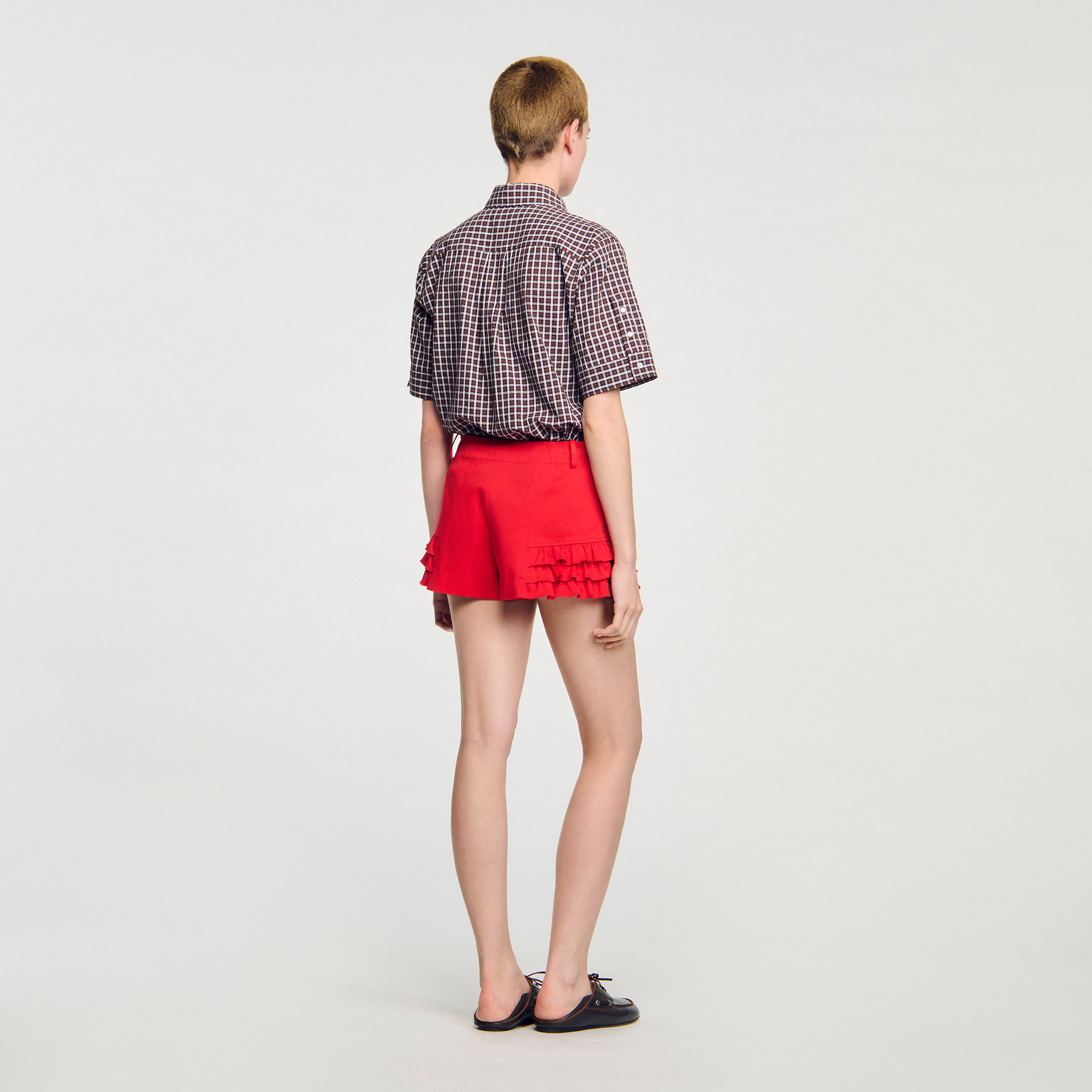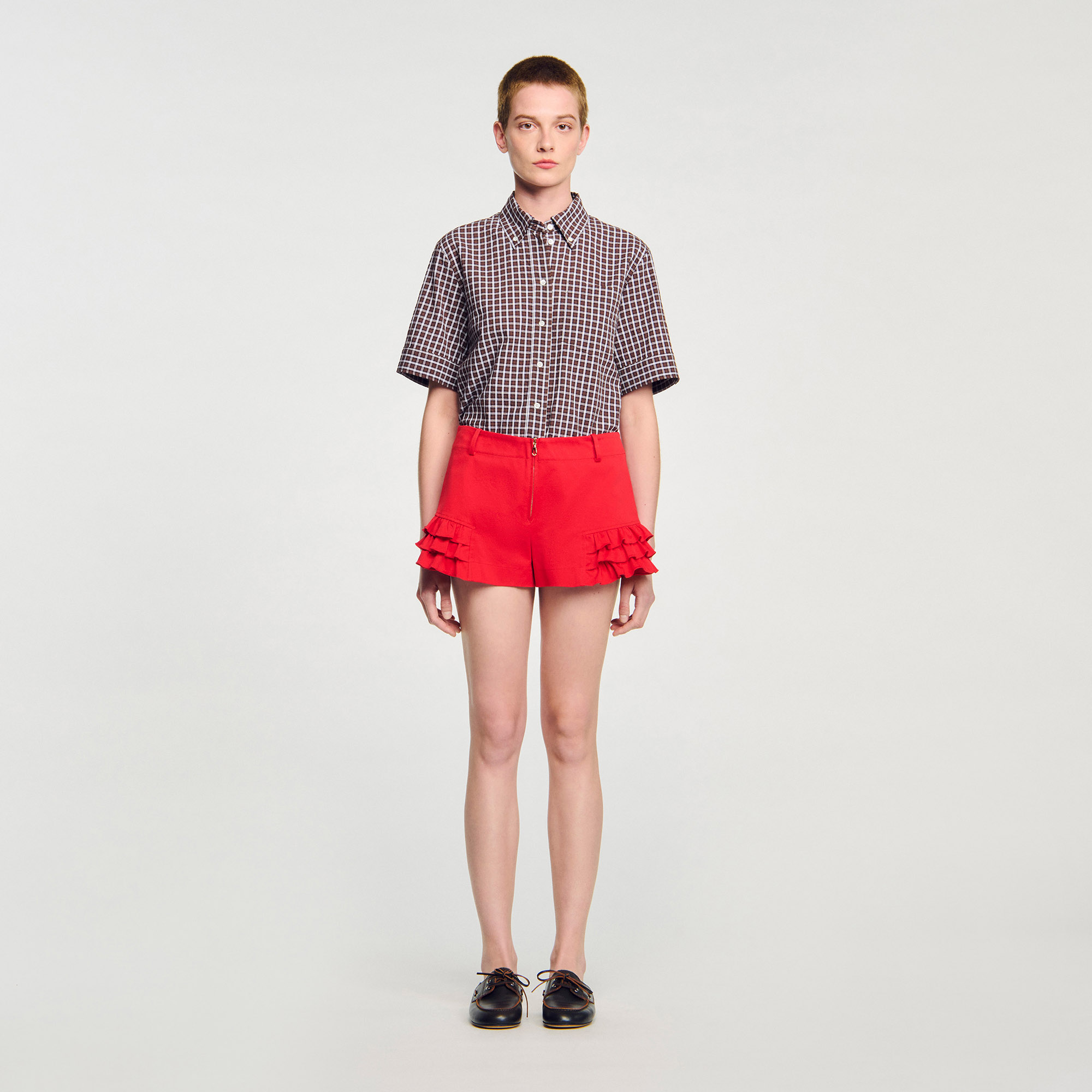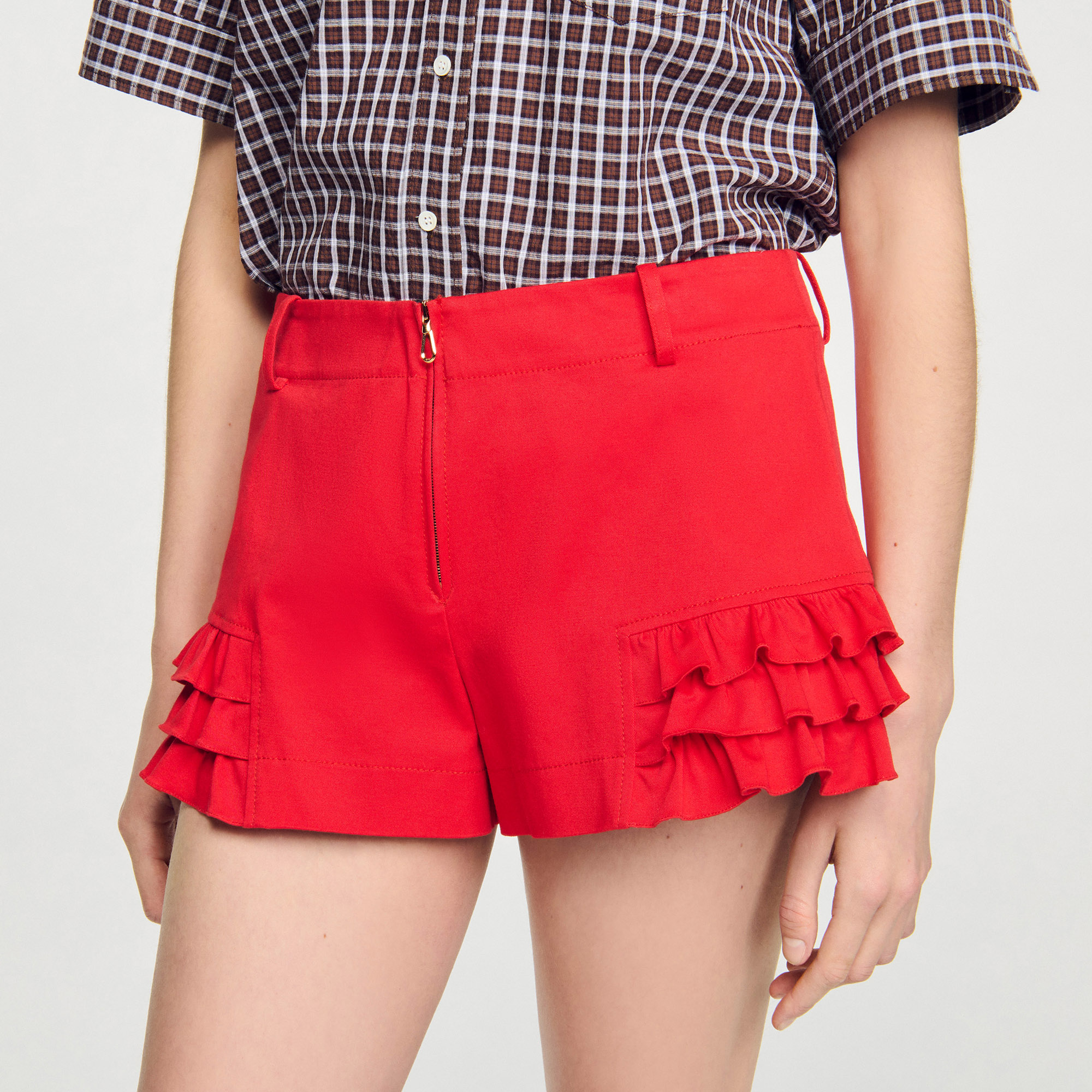 Sandro cotton Flared shorts with ruffles, featuring belt loops and a front zip fastening.