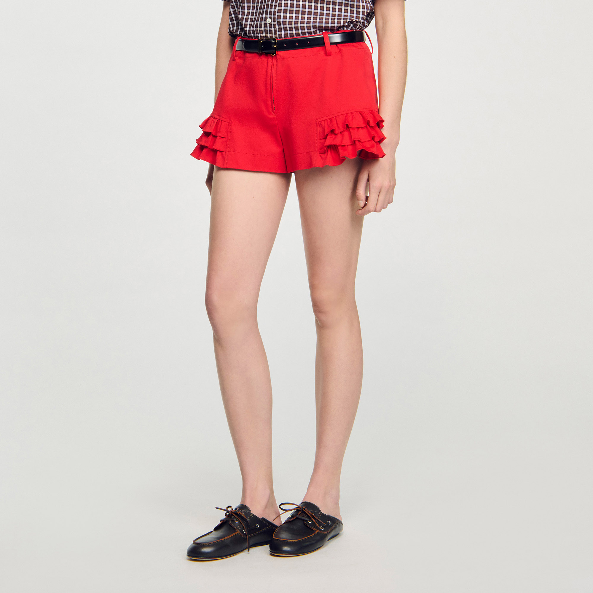 Sandro Women's ruffled shorts Belt loops Front zip fastening Mid-rise waist Designed for a flared fit.