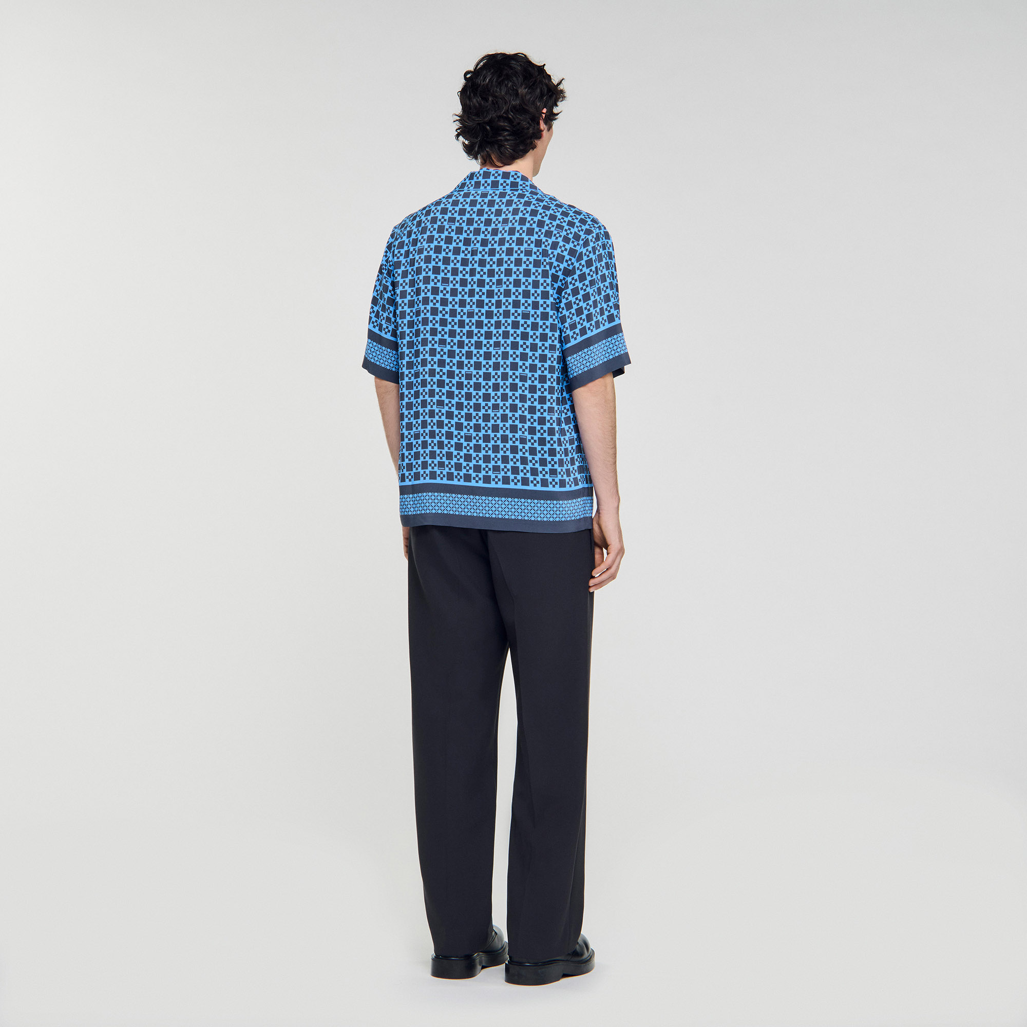 Sandro Men's loose-fit shirt Square cross motif Shark collar Button fastening Short sleeves Designed for a loose fit.