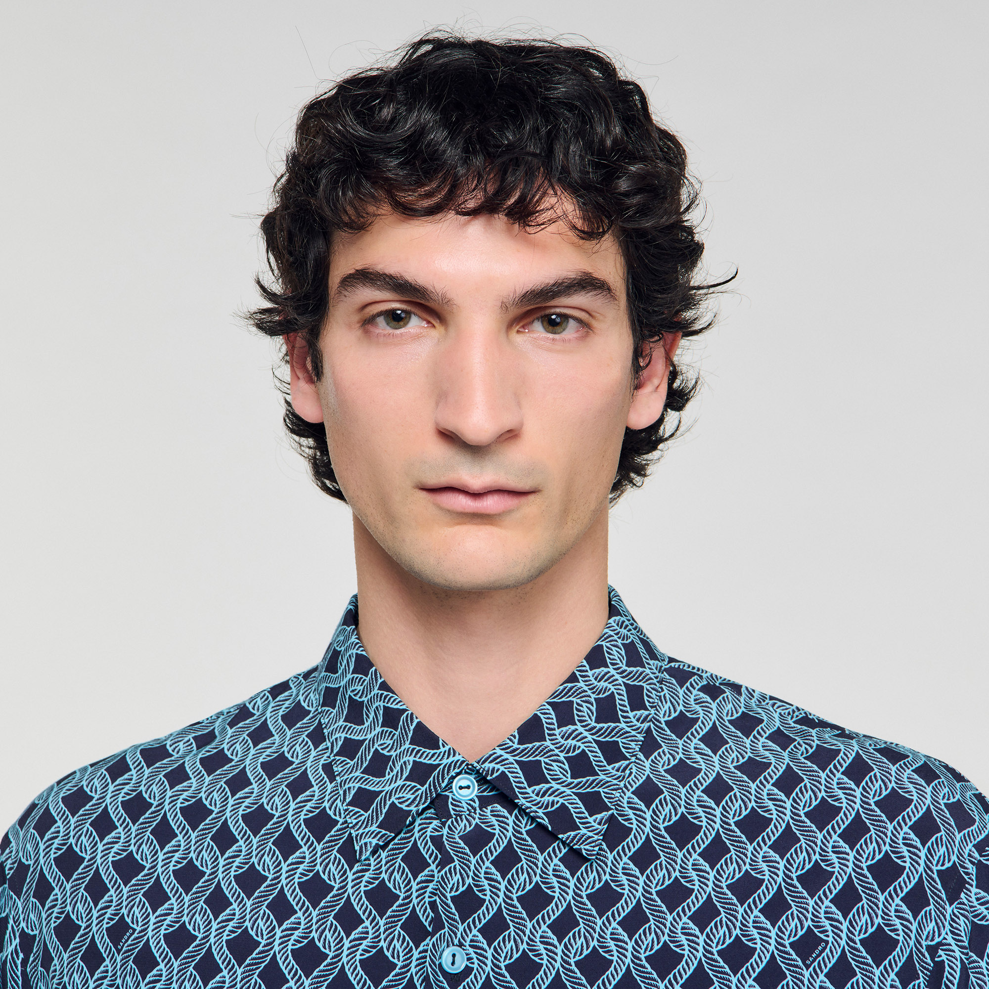 Sandro Men's printed shirt Broken collar Short sleeves Front button fastening Rope motif Designed for a loose fit.
